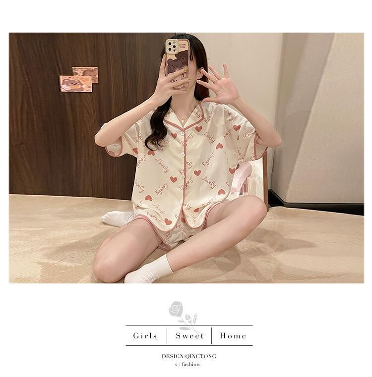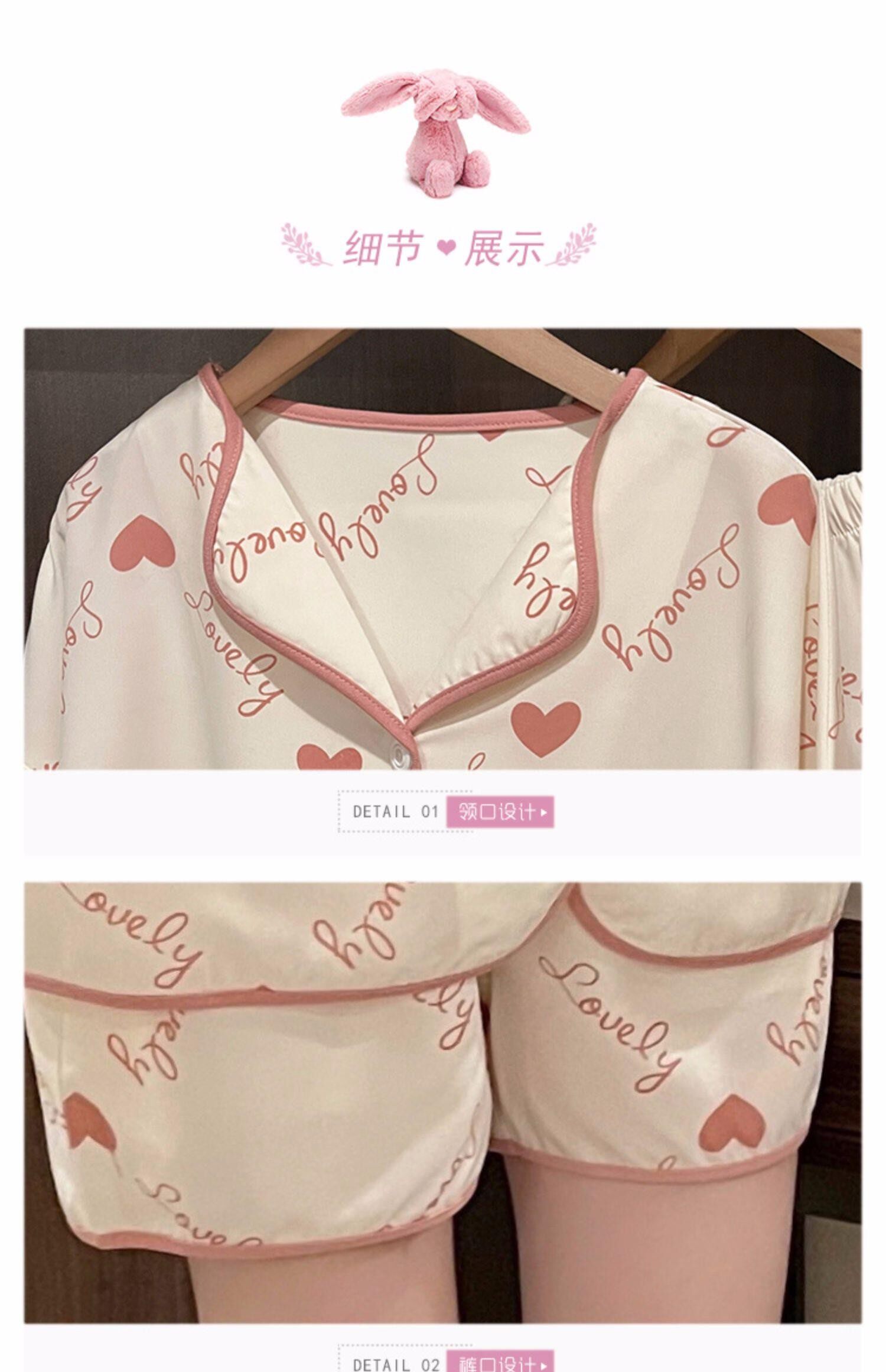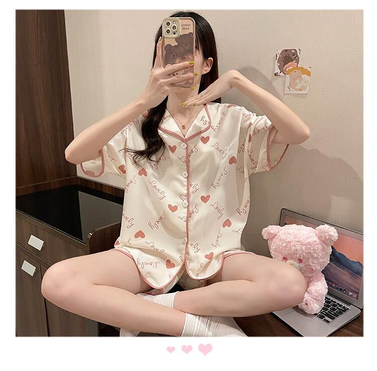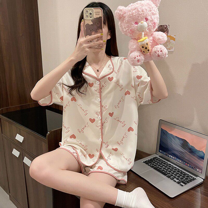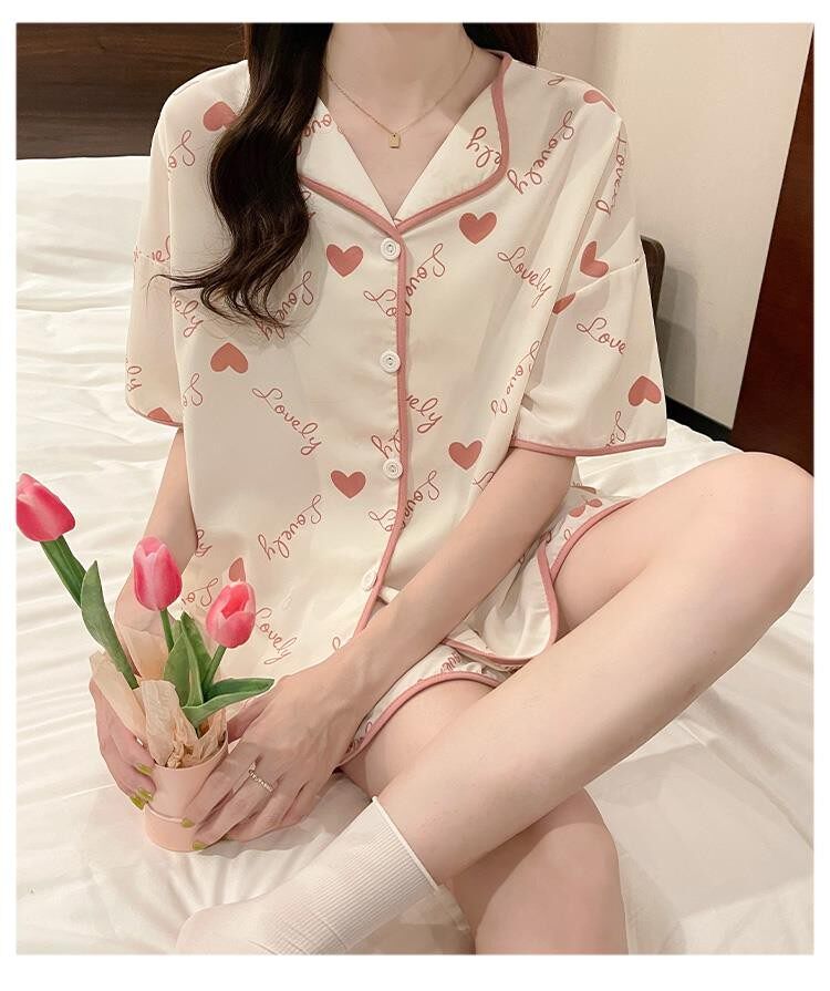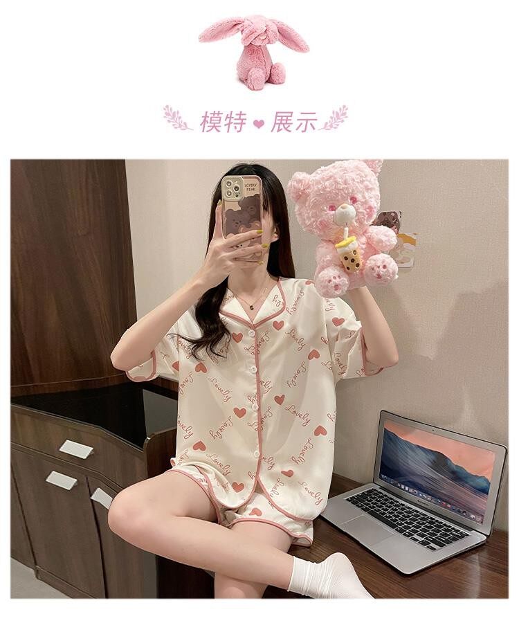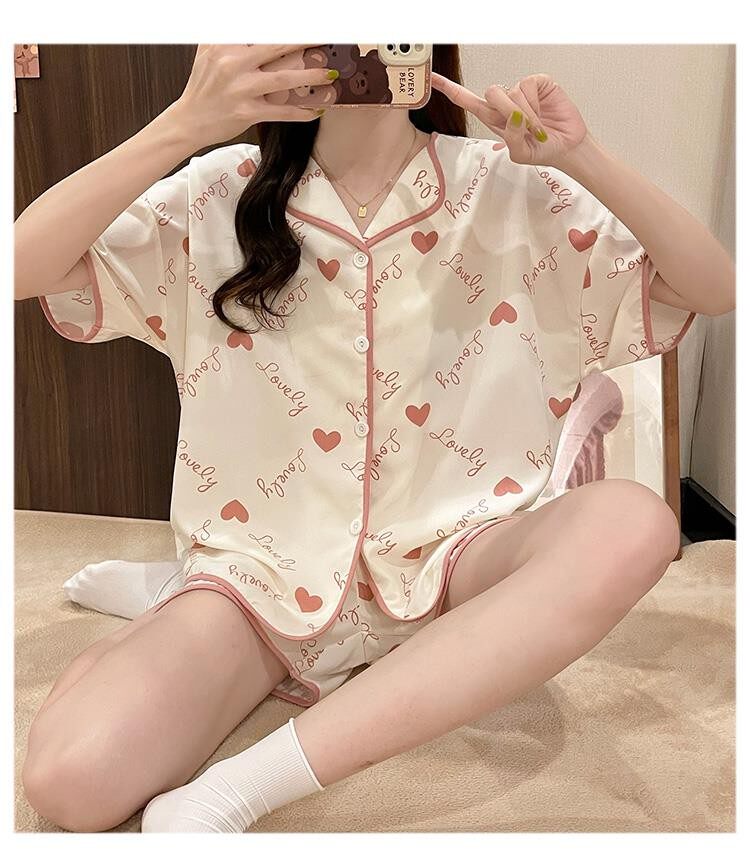 Шифоновая летняя шелковая пижама, милый осенний комплект в виде сердечка, короткий рукав, популярно в интернете