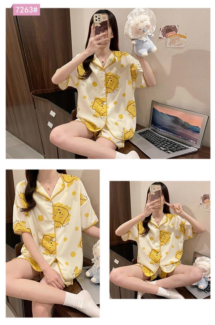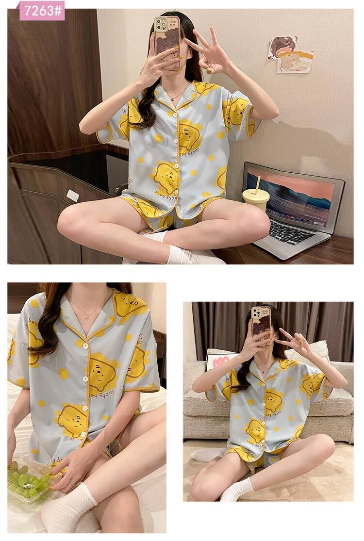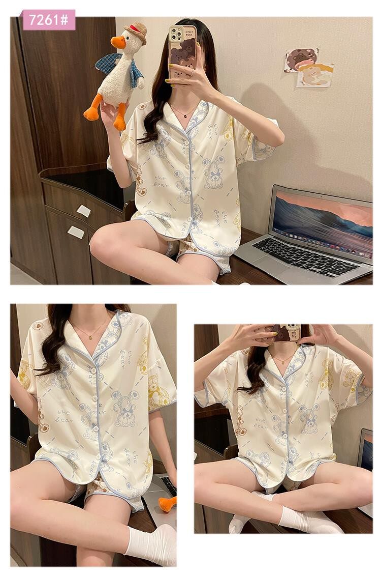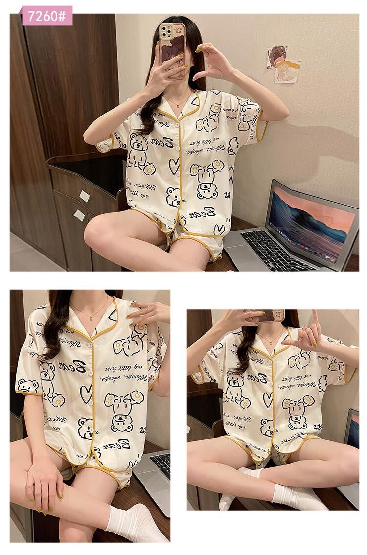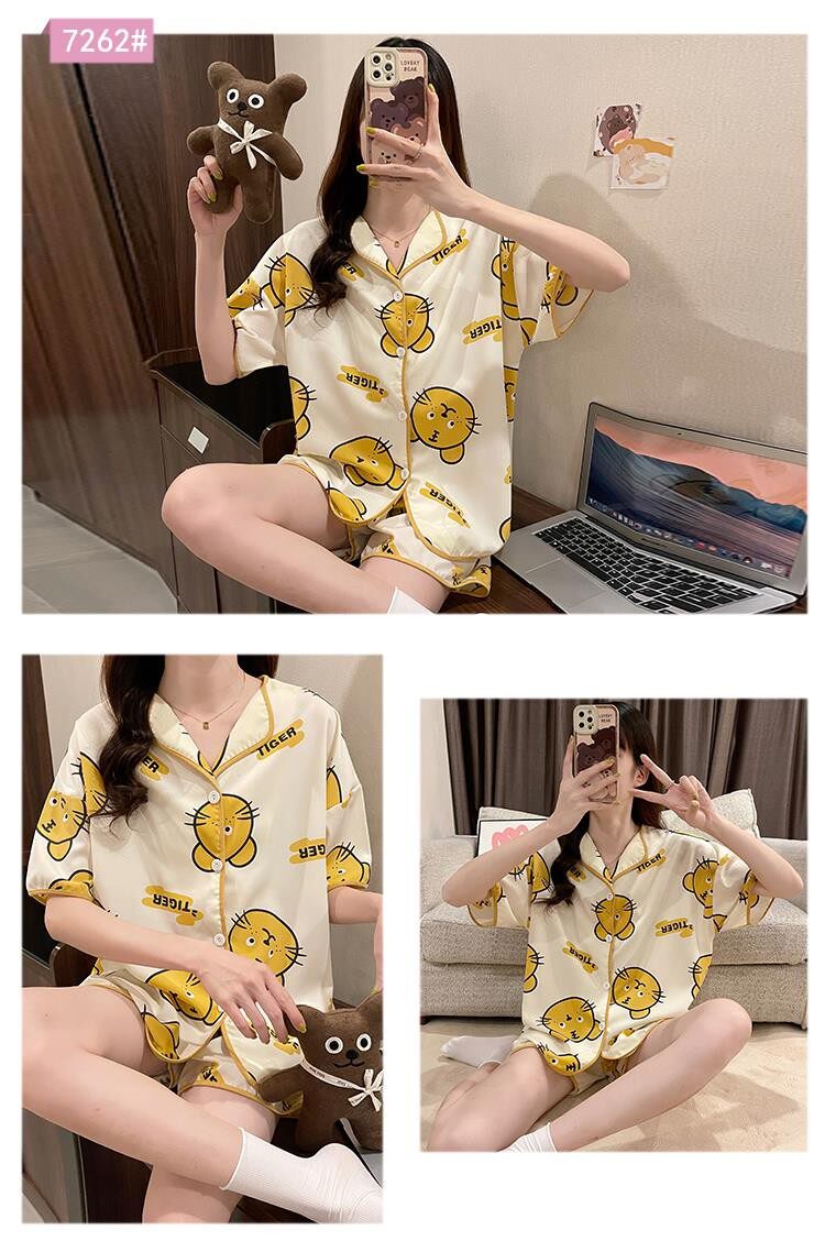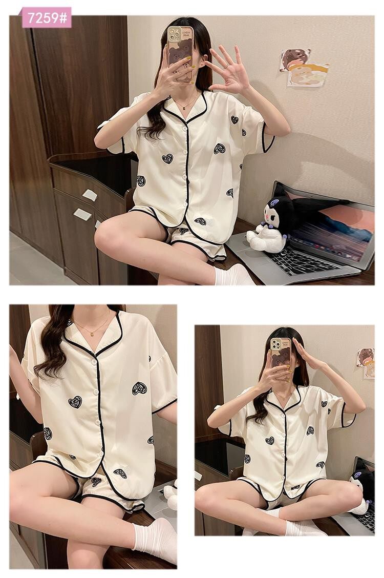 Шифоновая летняя шелковая пижама, милый осенний комплект в виде сердечка, короткий рукав, популярно в интернете