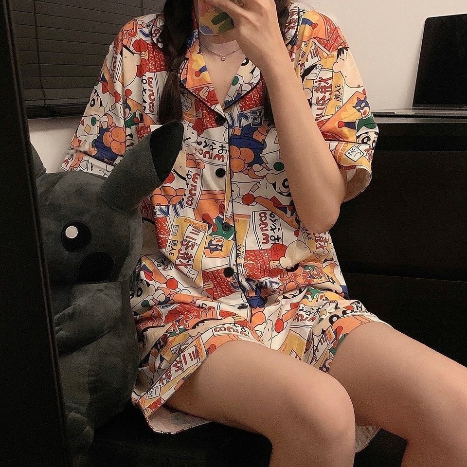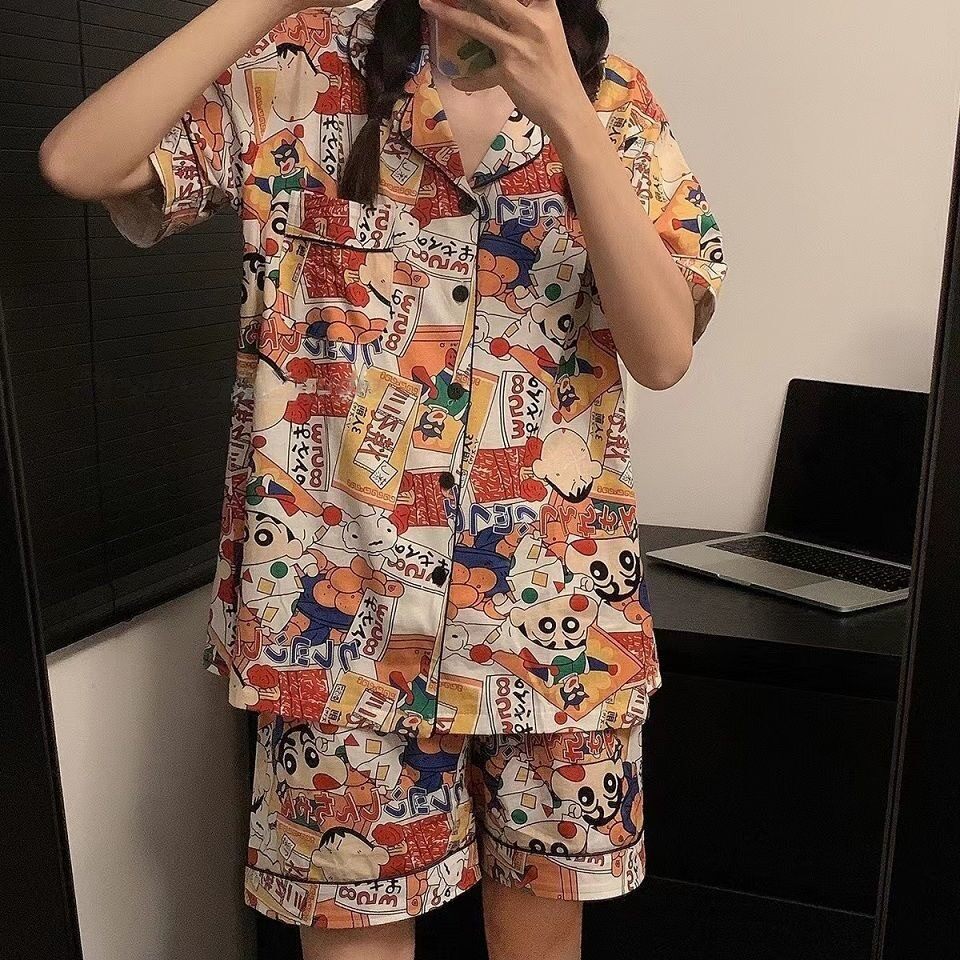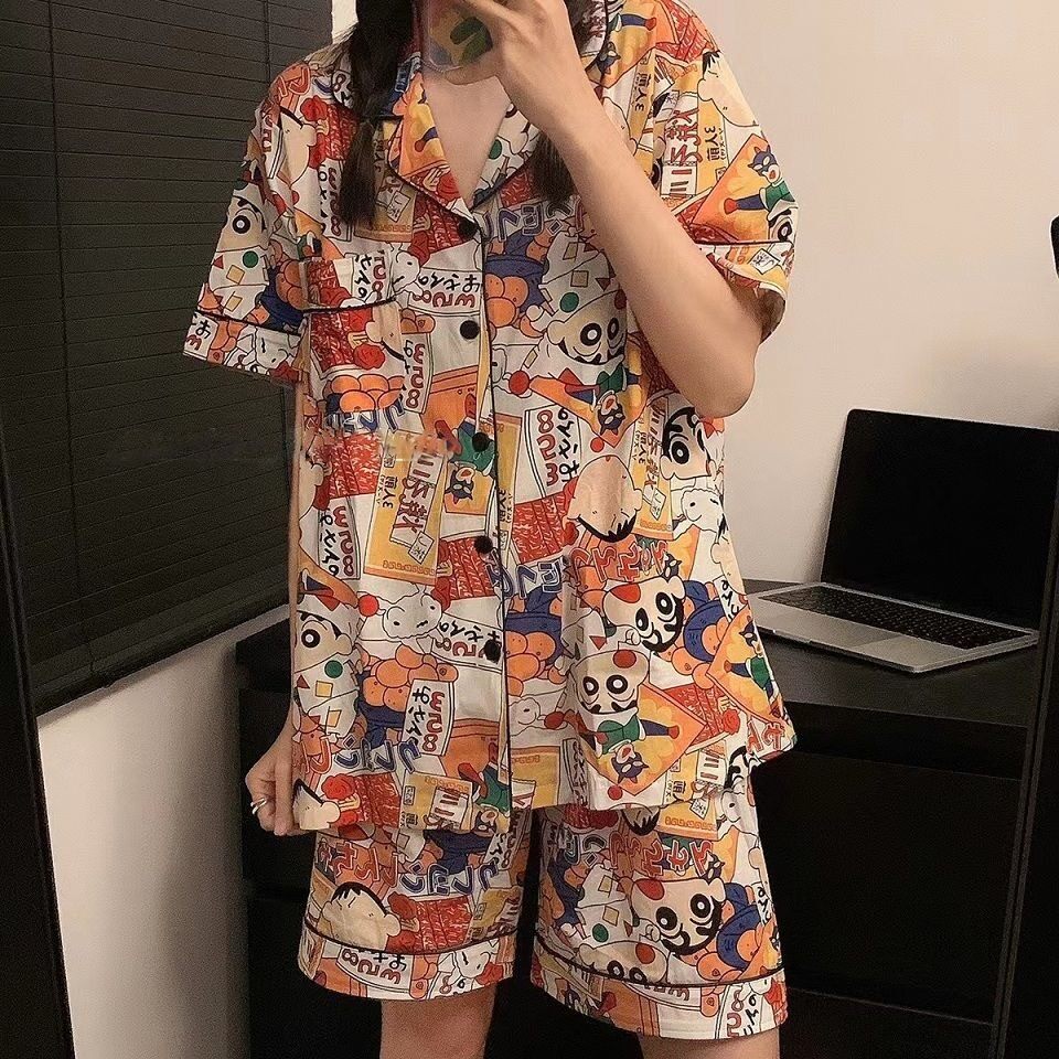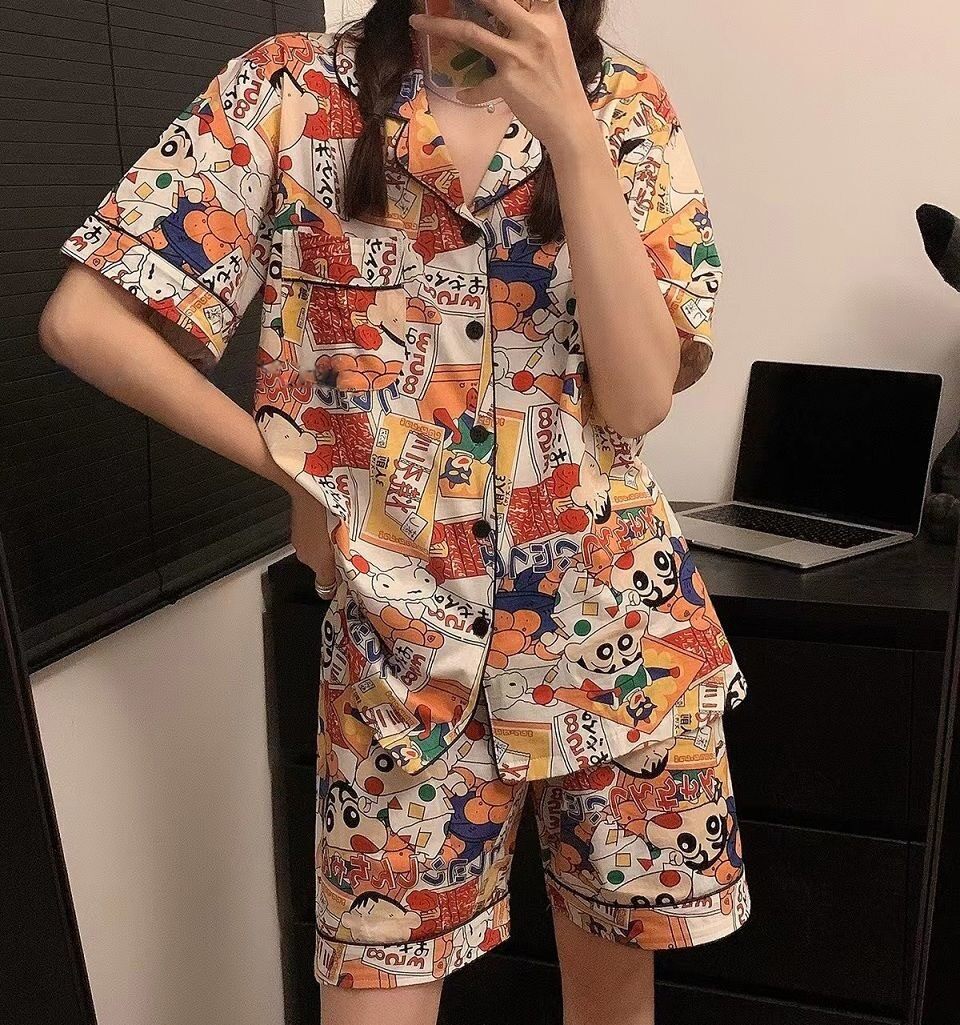 Японские мелки, мультяшная летняя пижама подходит для мужчин и женщин, хлопковый милый комплект для школьников и студентов, короткий рукав, для влюбленных