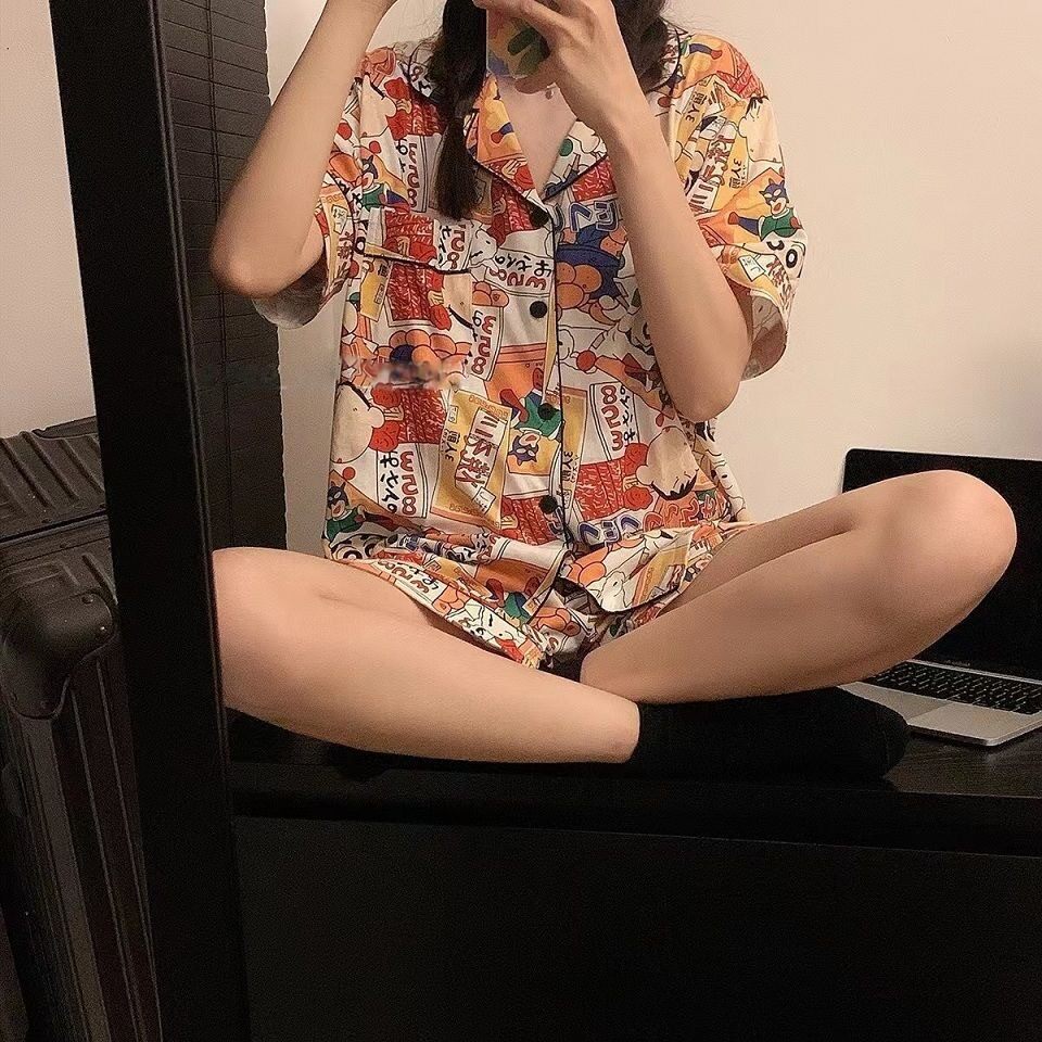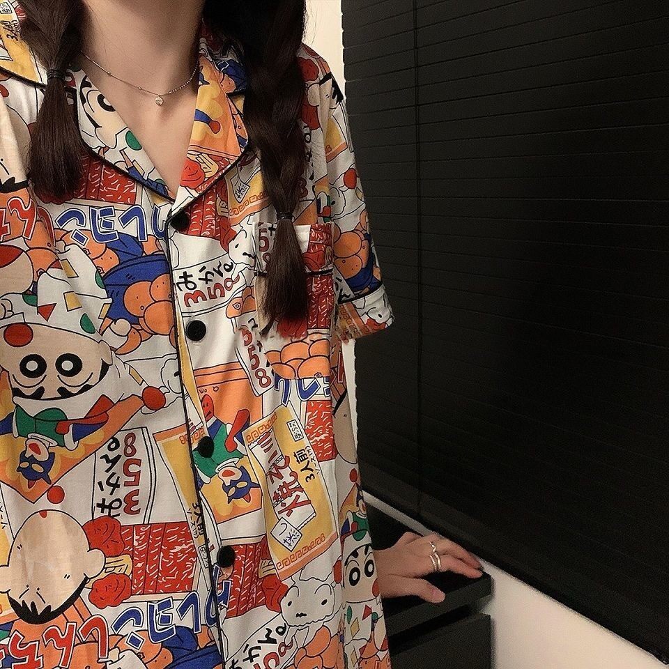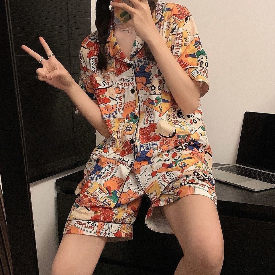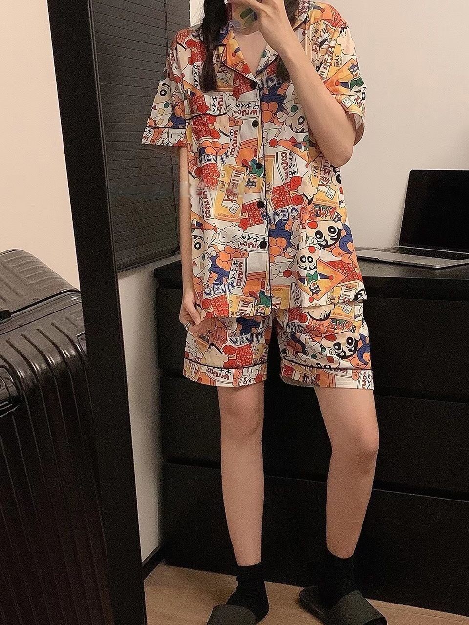 Японские мелки, мультяшная летняя пижама подходит для мужчин и женщин, хлопковый милый комплект для школьников и студентов, короткий рукав, для влюбленных