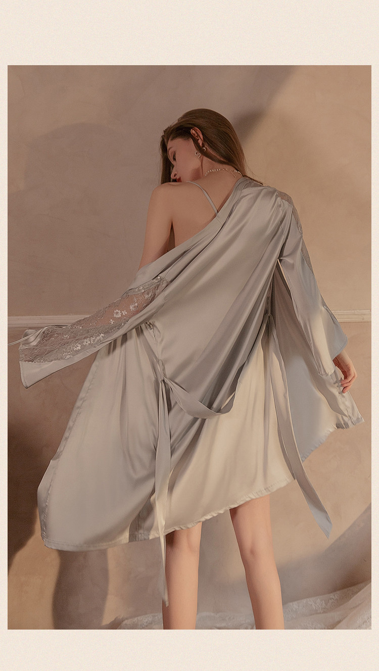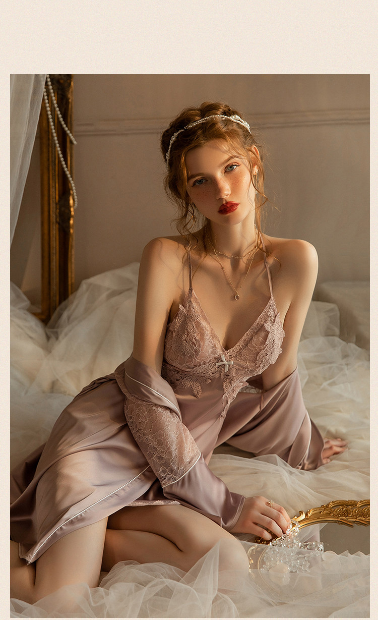 澄澈 Сексуальная осенняя пижама, летний шелковый топ с чашечками, кружевной комплект, эффект подтяжки