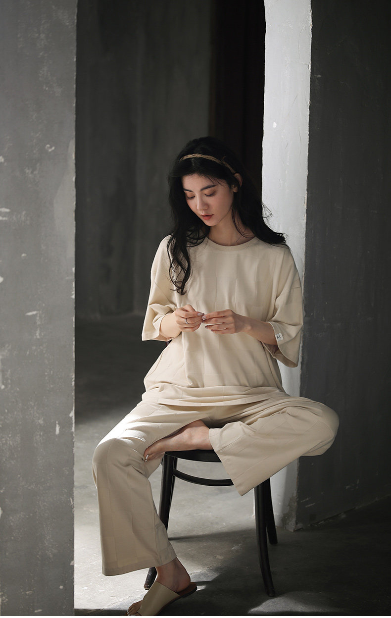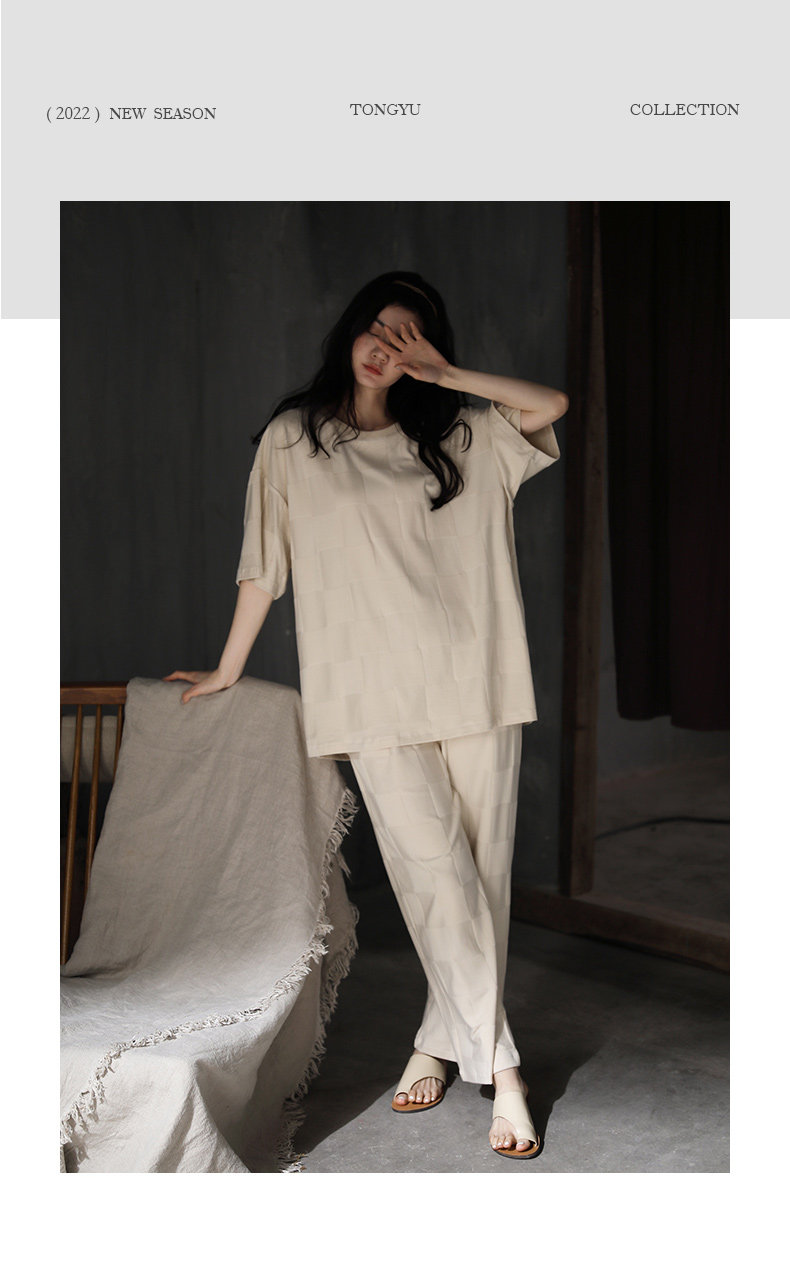 Летняя пижама, штаны, тонкий летний костюм, короткий рукав