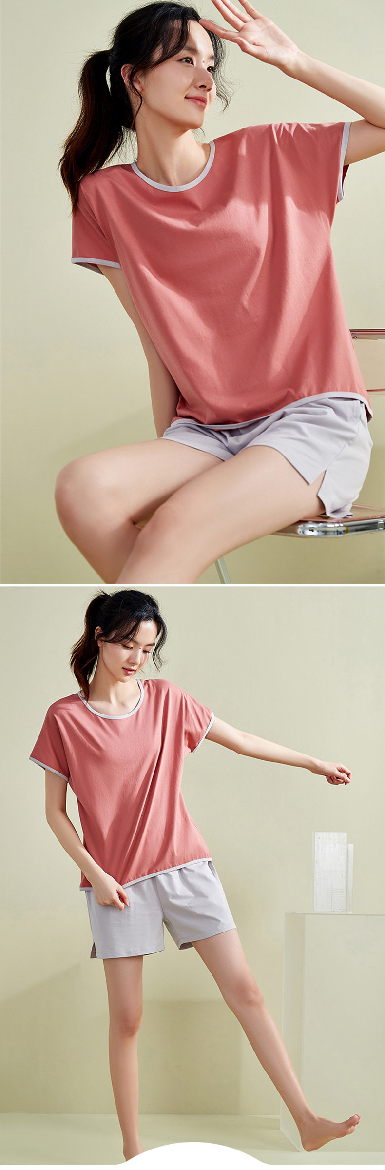 顶瓜瓜 Хлопковая пижама, нарукавники для отдыха, спортивный тонкий комплект, короткий рукав