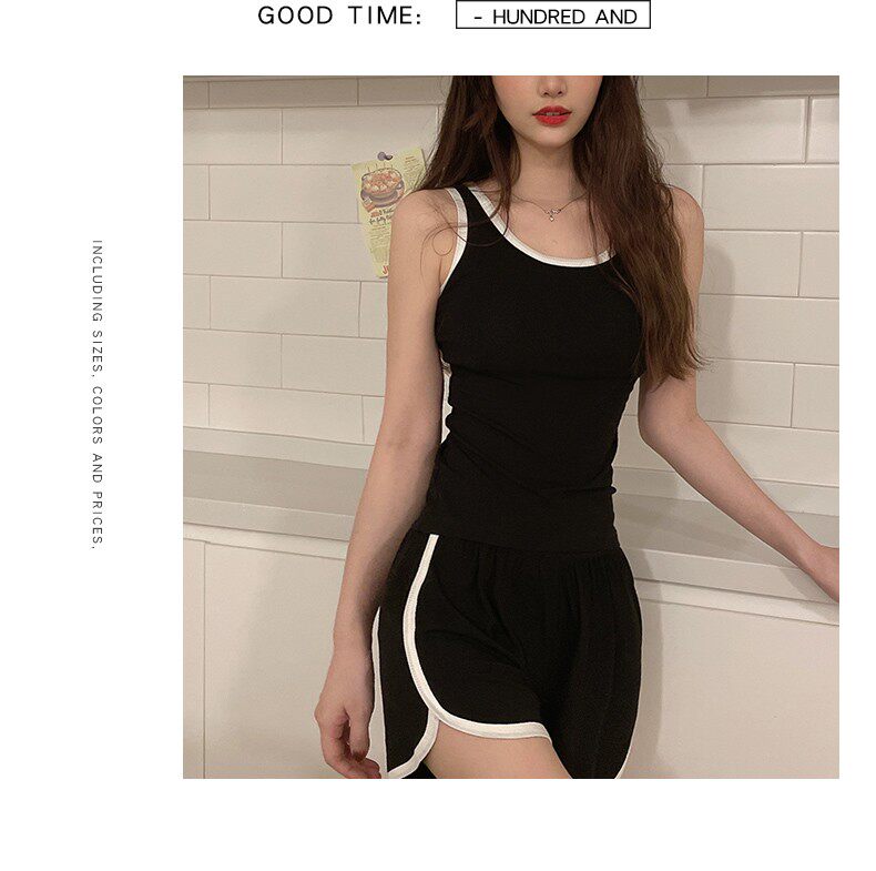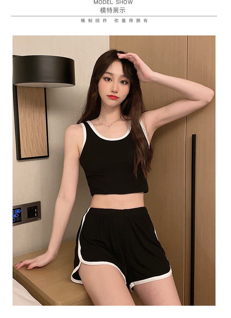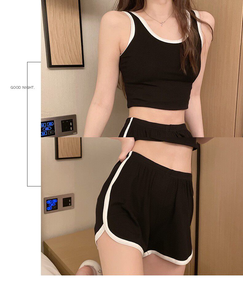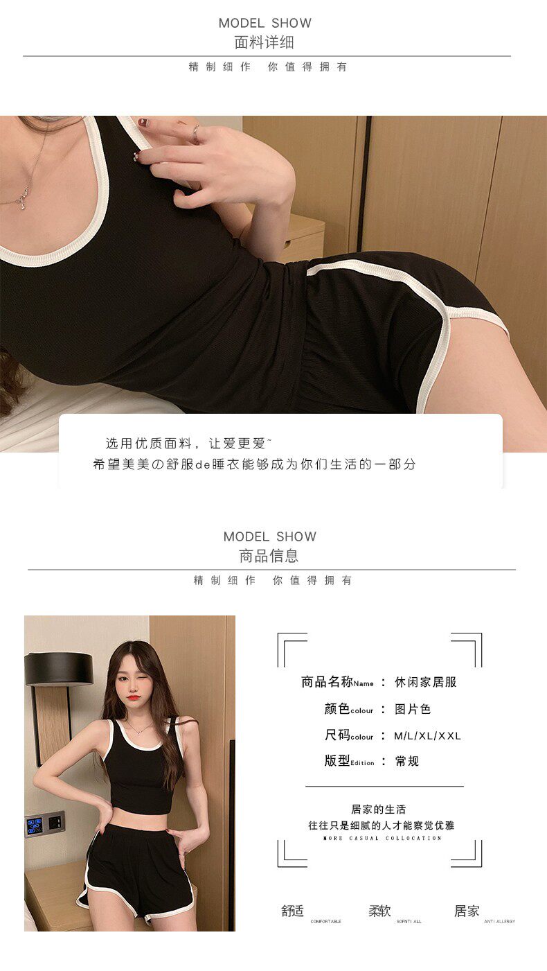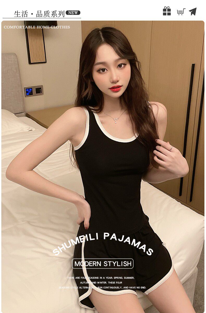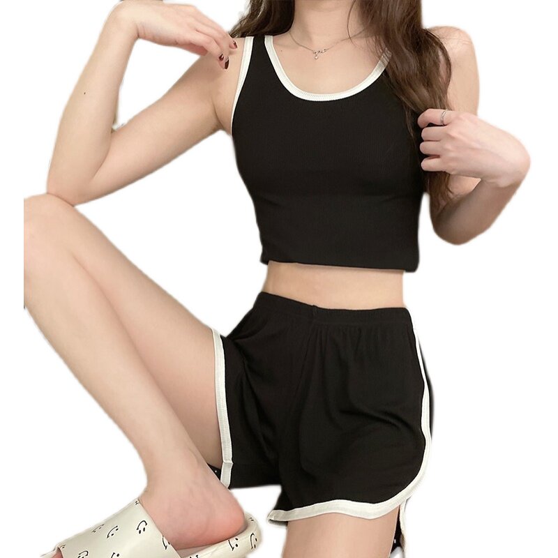 Летняя тонкая пижама, сексуальная черная майка, комплект, коллекция 2023