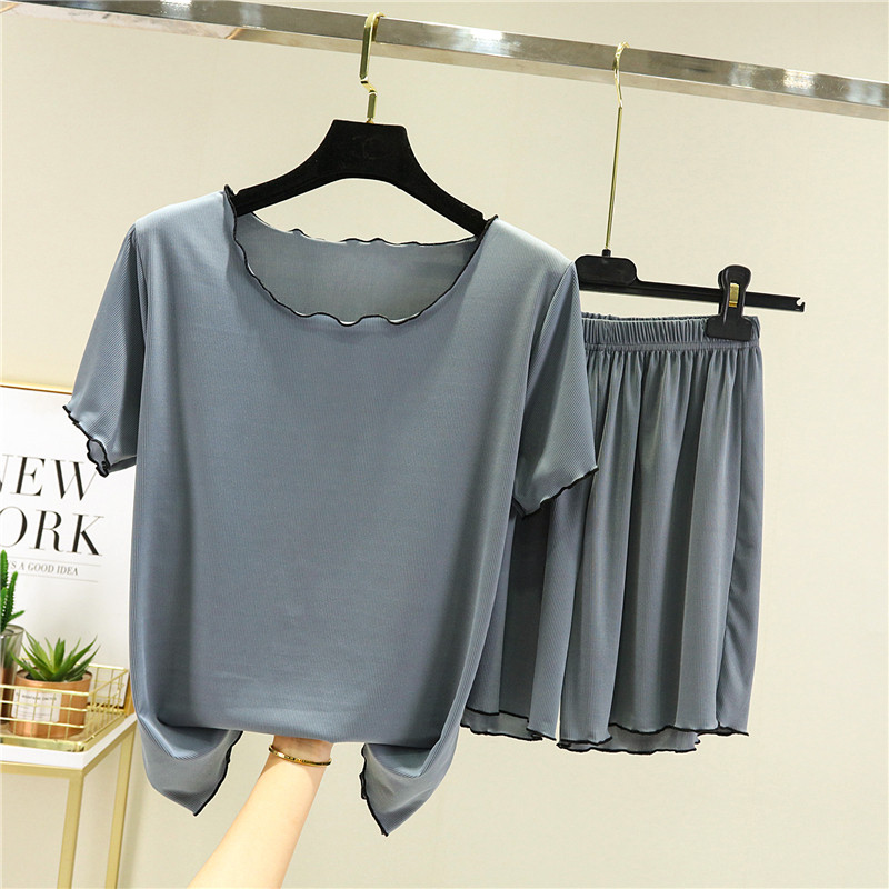 Шелковая летняя пижама, нарукавники, комплект, 2024 года, большой размер, в корейском стиле, короткий рукав