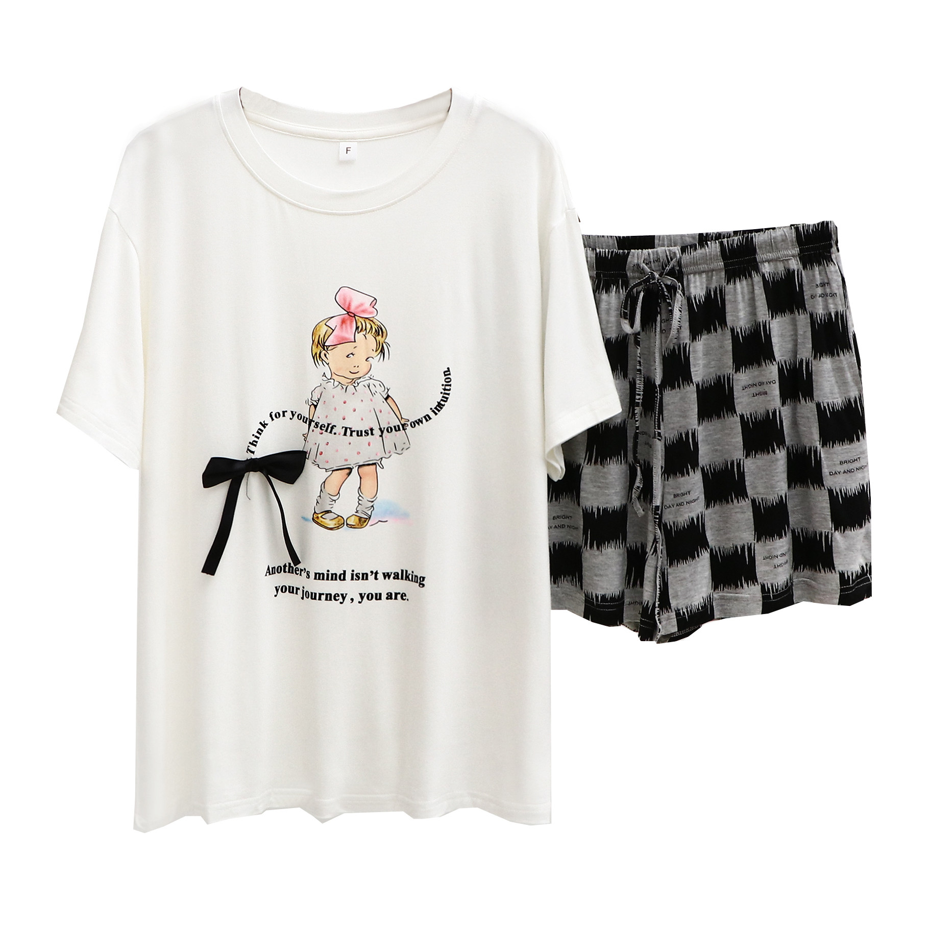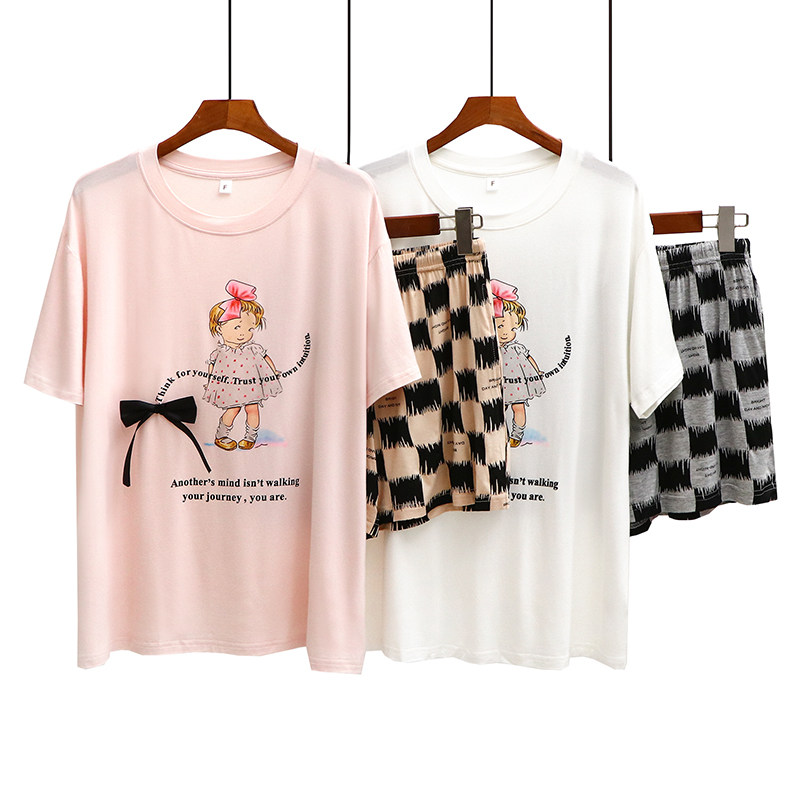 Летняя пижама, шорты, тонкие штаны, мультяшный комплект, короткий рукав, свободный крой