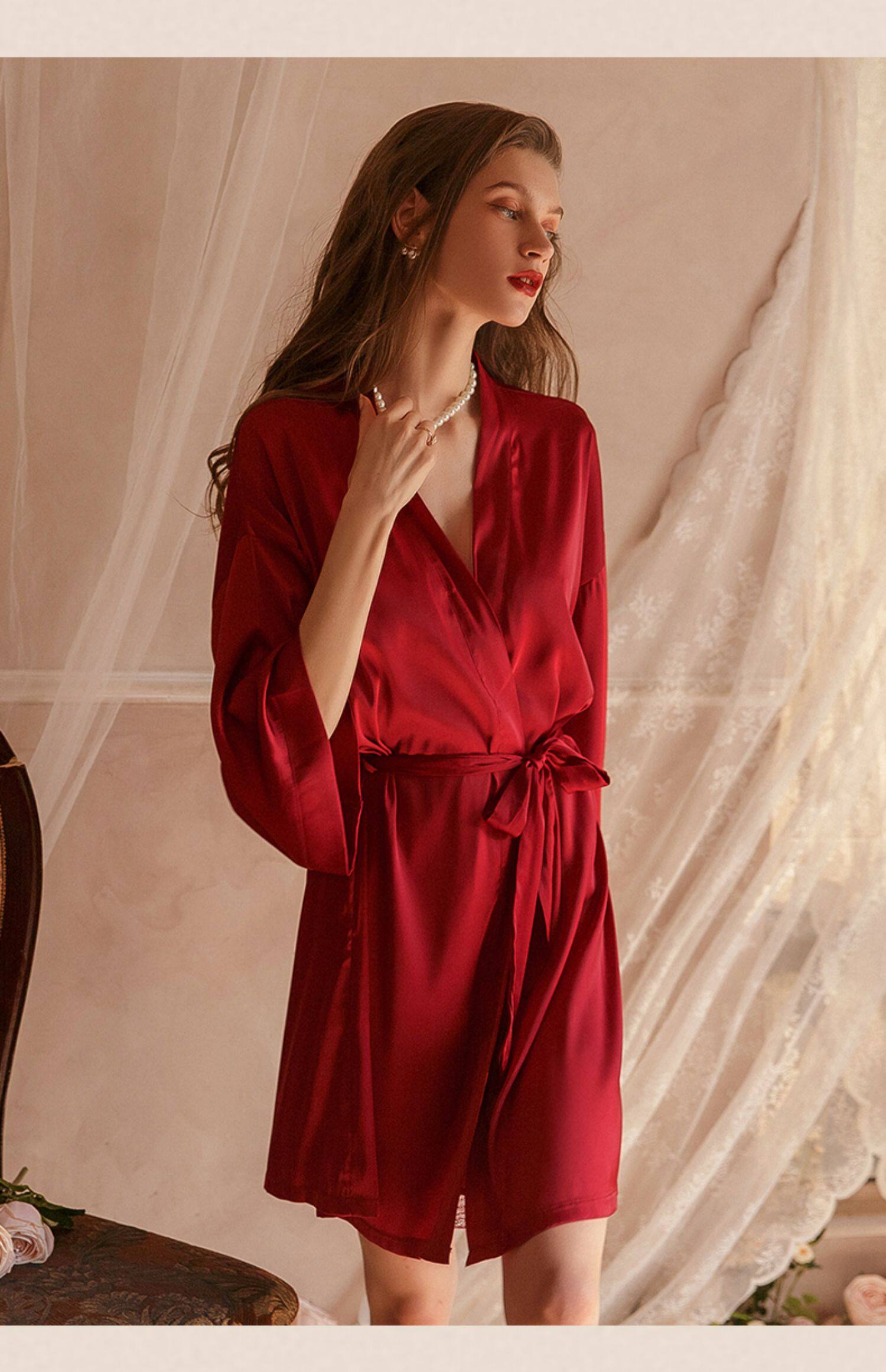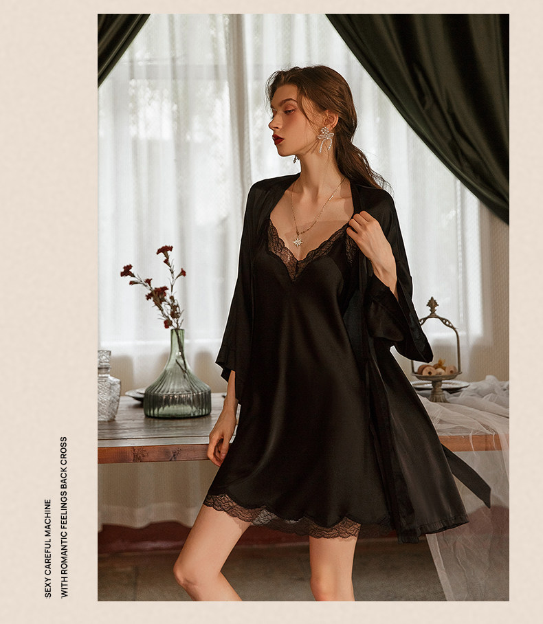 Шелковая сексуальная летняя тонкая пижама, банный халат, комплект, эффект подтяжки, изысканный стиль