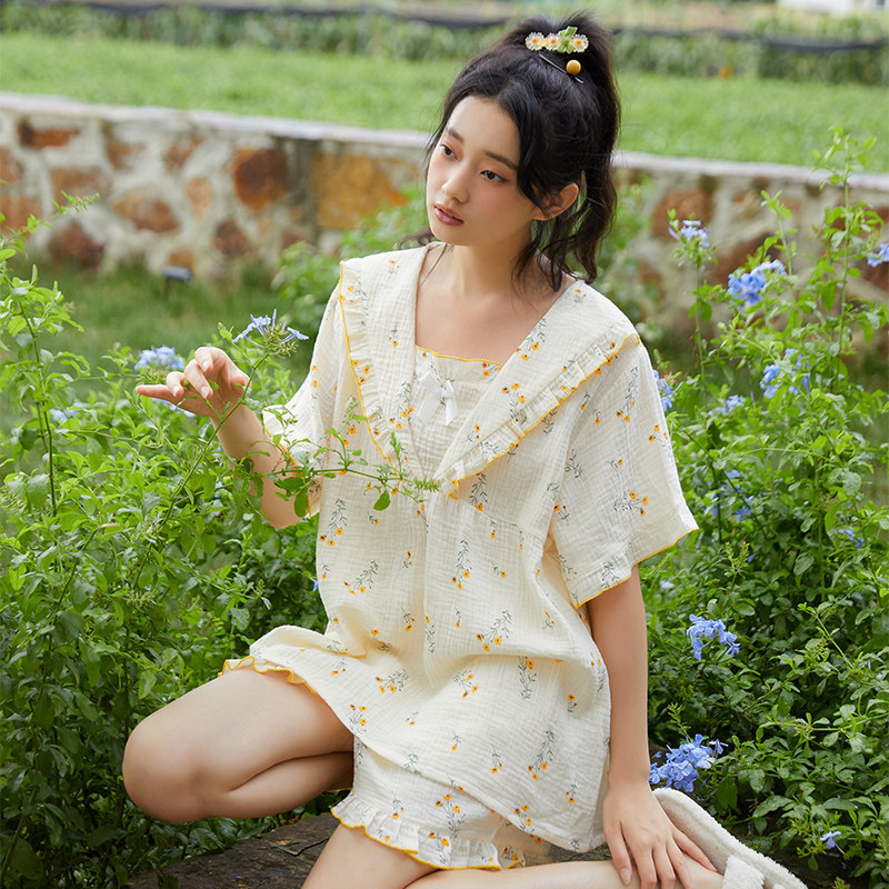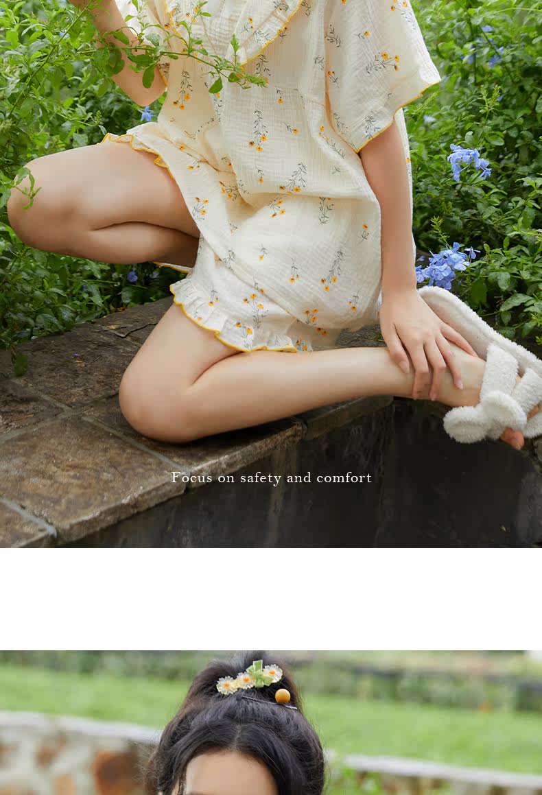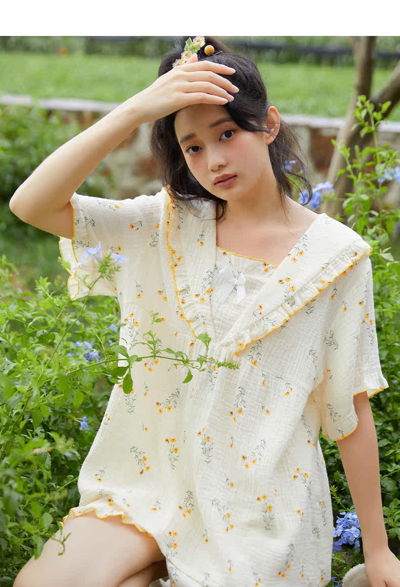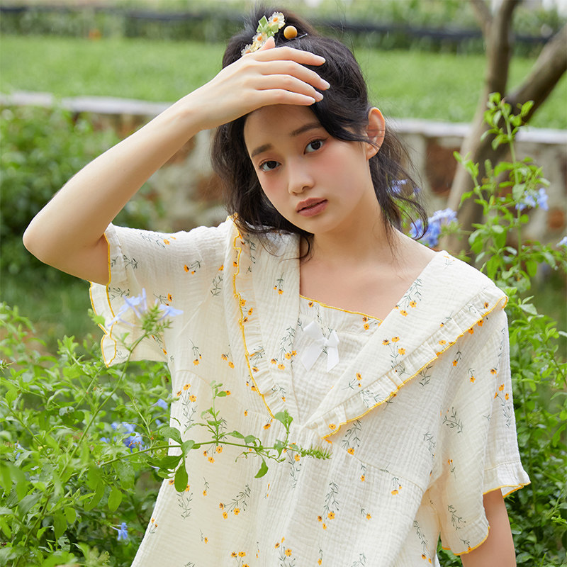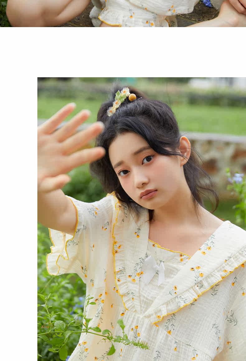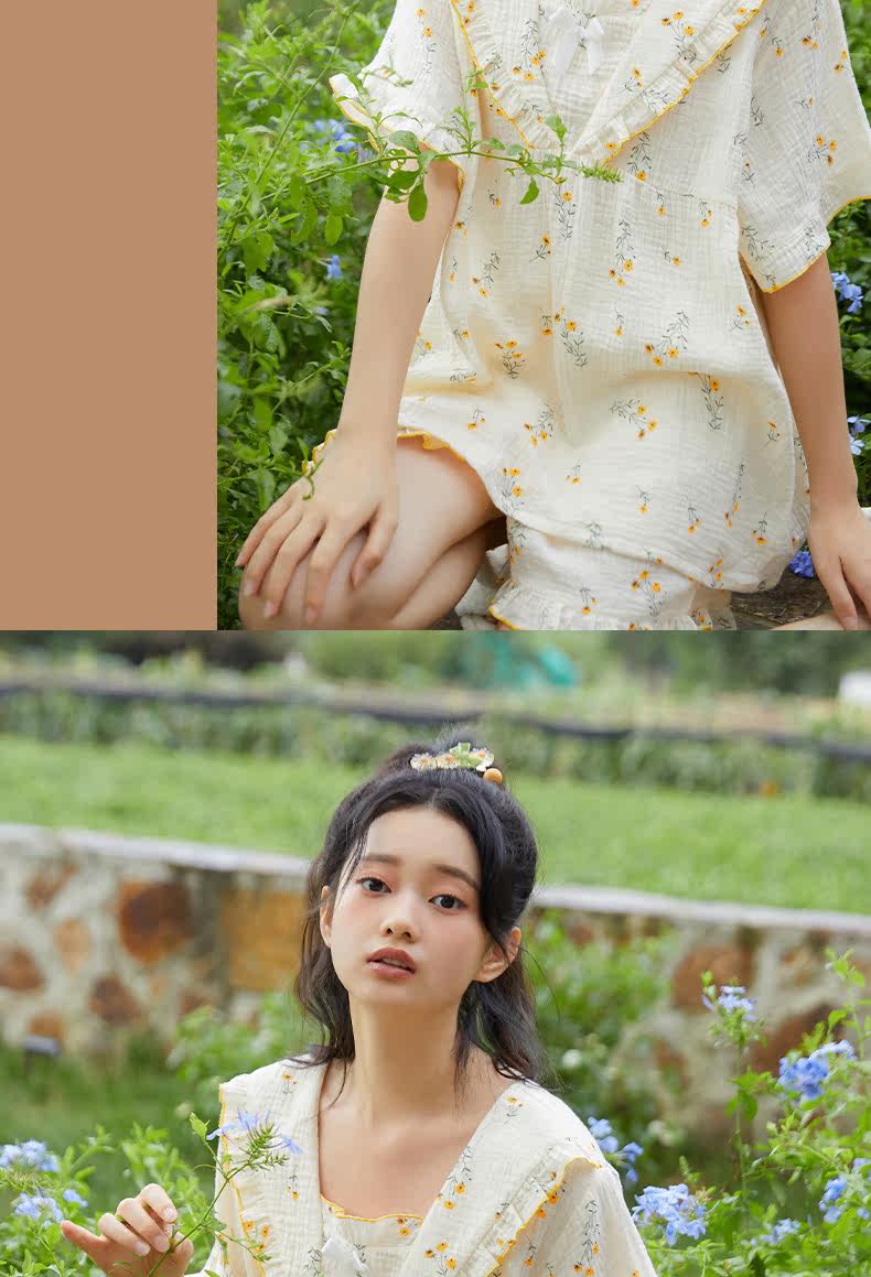 Летняя тонкая пижама для раннего возраста, хлопковый тонкий милый комплект, цветочный принт