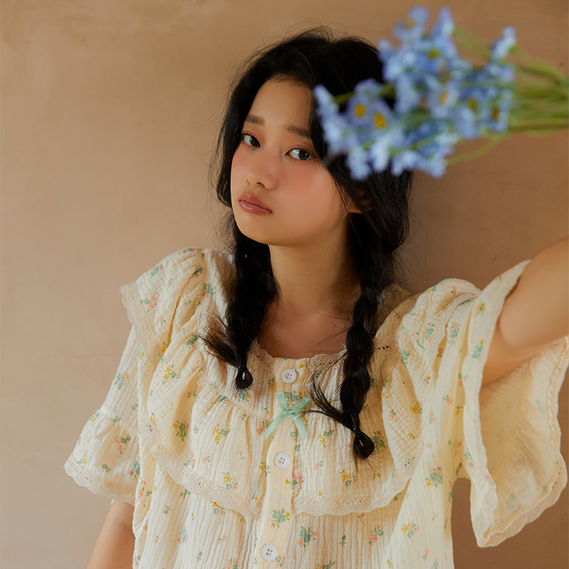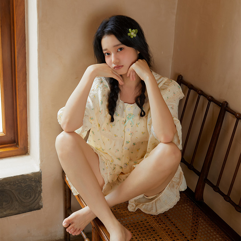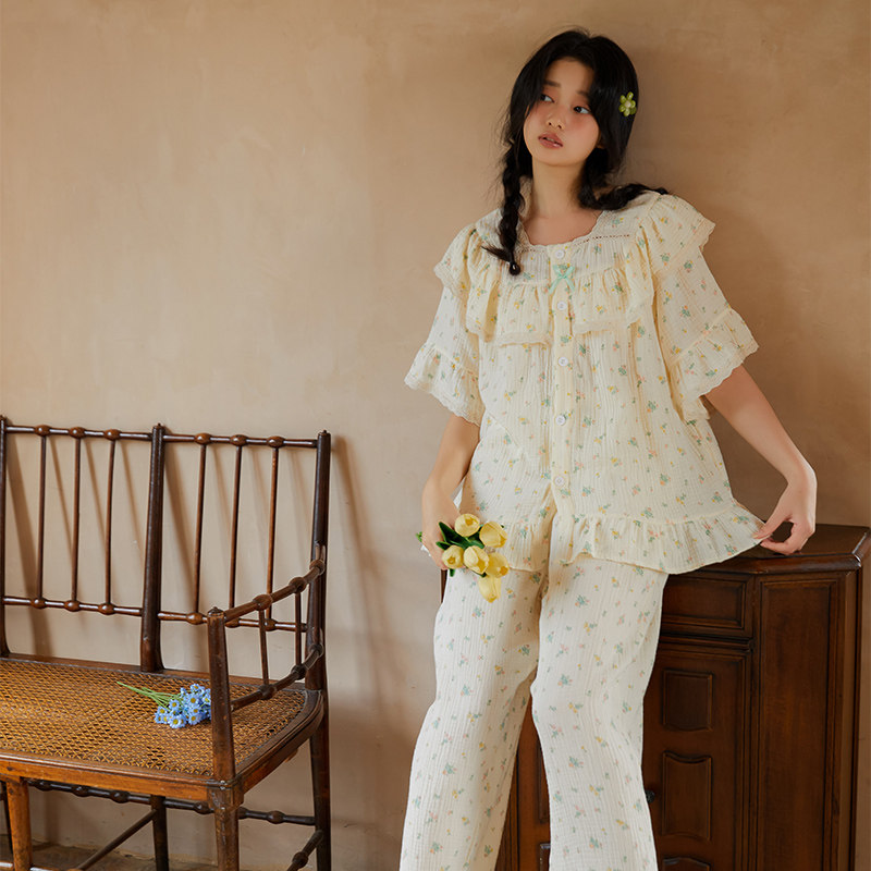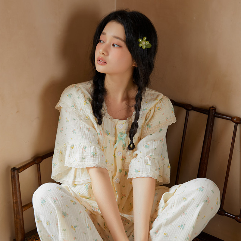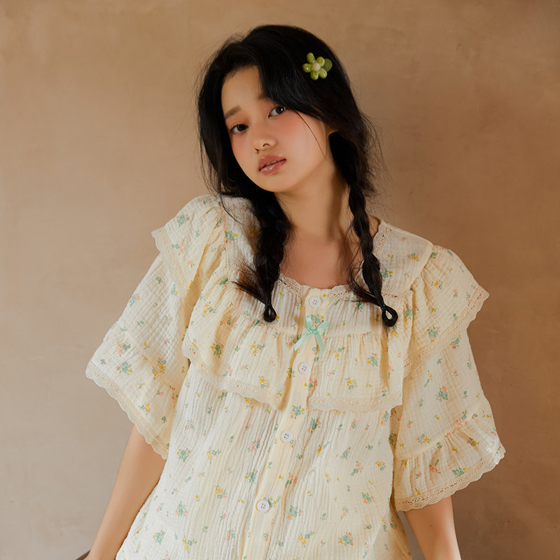 Милая летняя хлопковая пижама для принцессы, тонкий комплект, короткий рукав