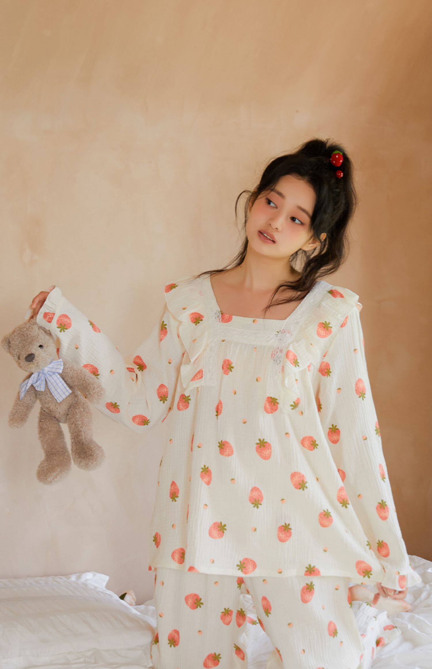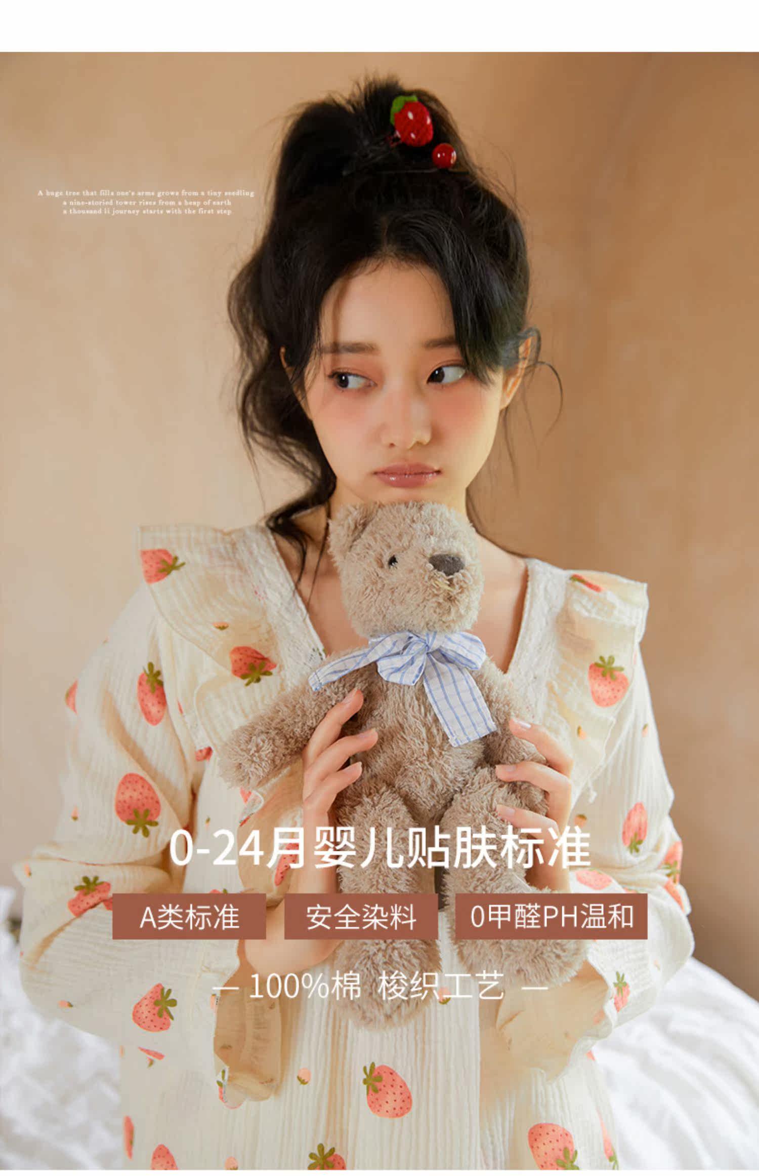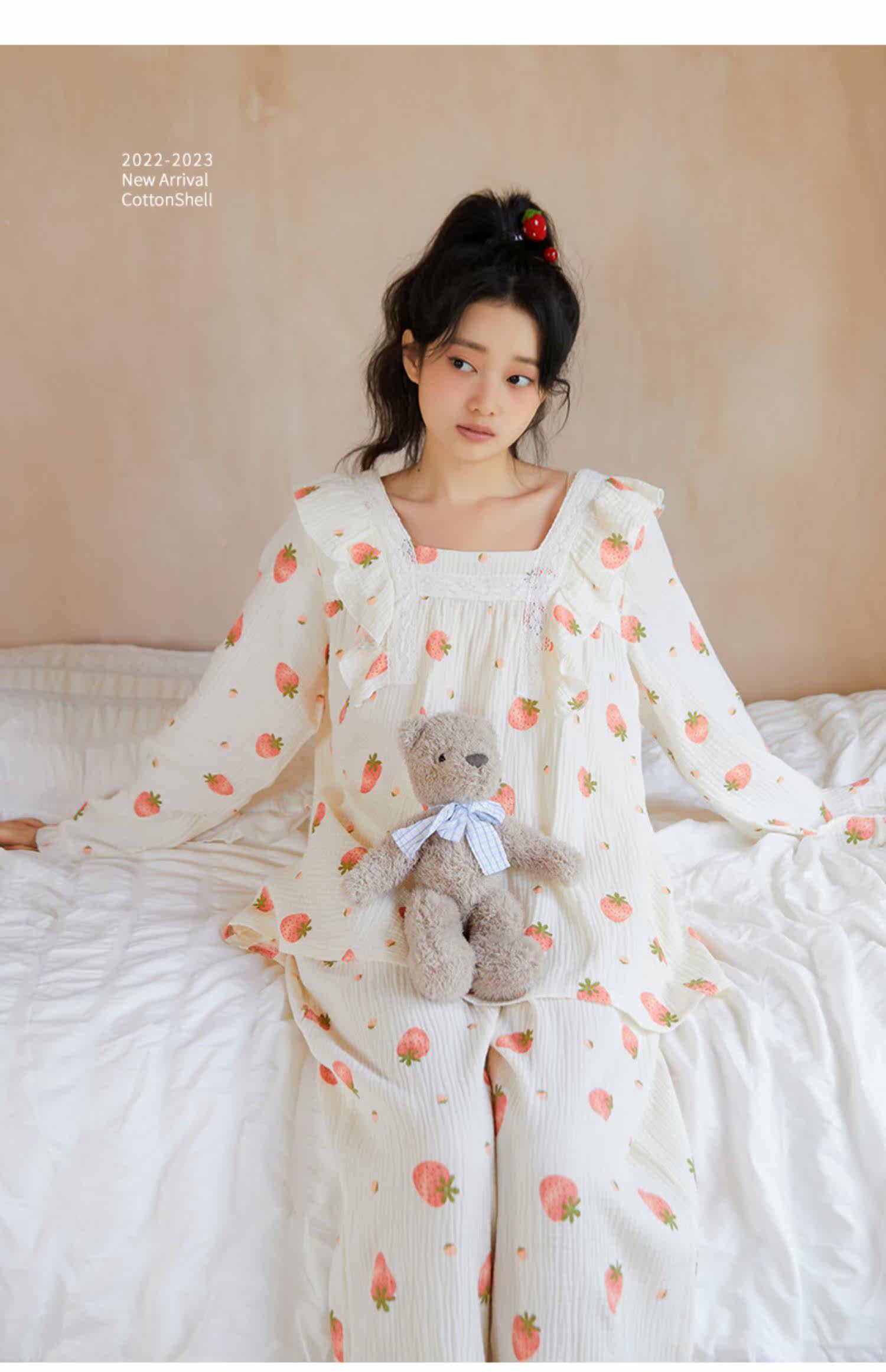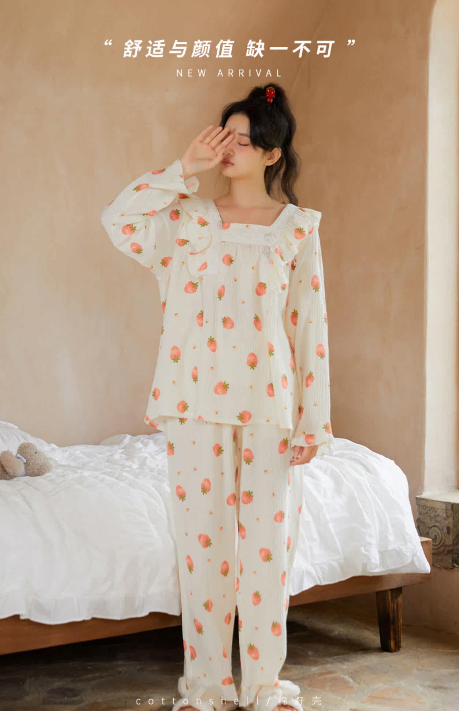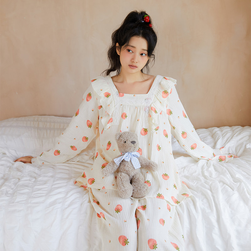 Осенняя клубника, пижама, хлопковый милый лонгслив, квадратный вырез