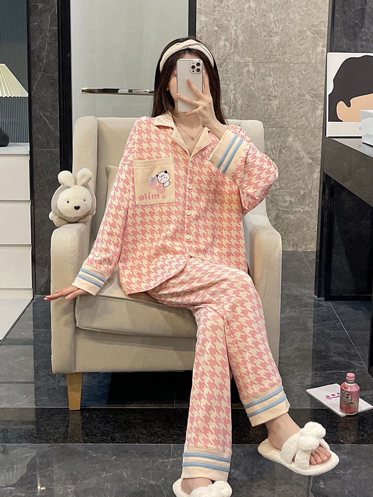 Осенняя демисезонная пижама, хлопковый зимний милый лонгслив, комплект для школьников, большой размер, популярно в интернете