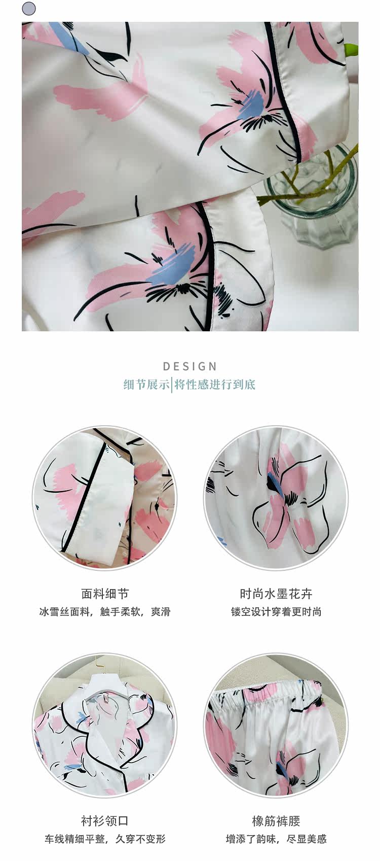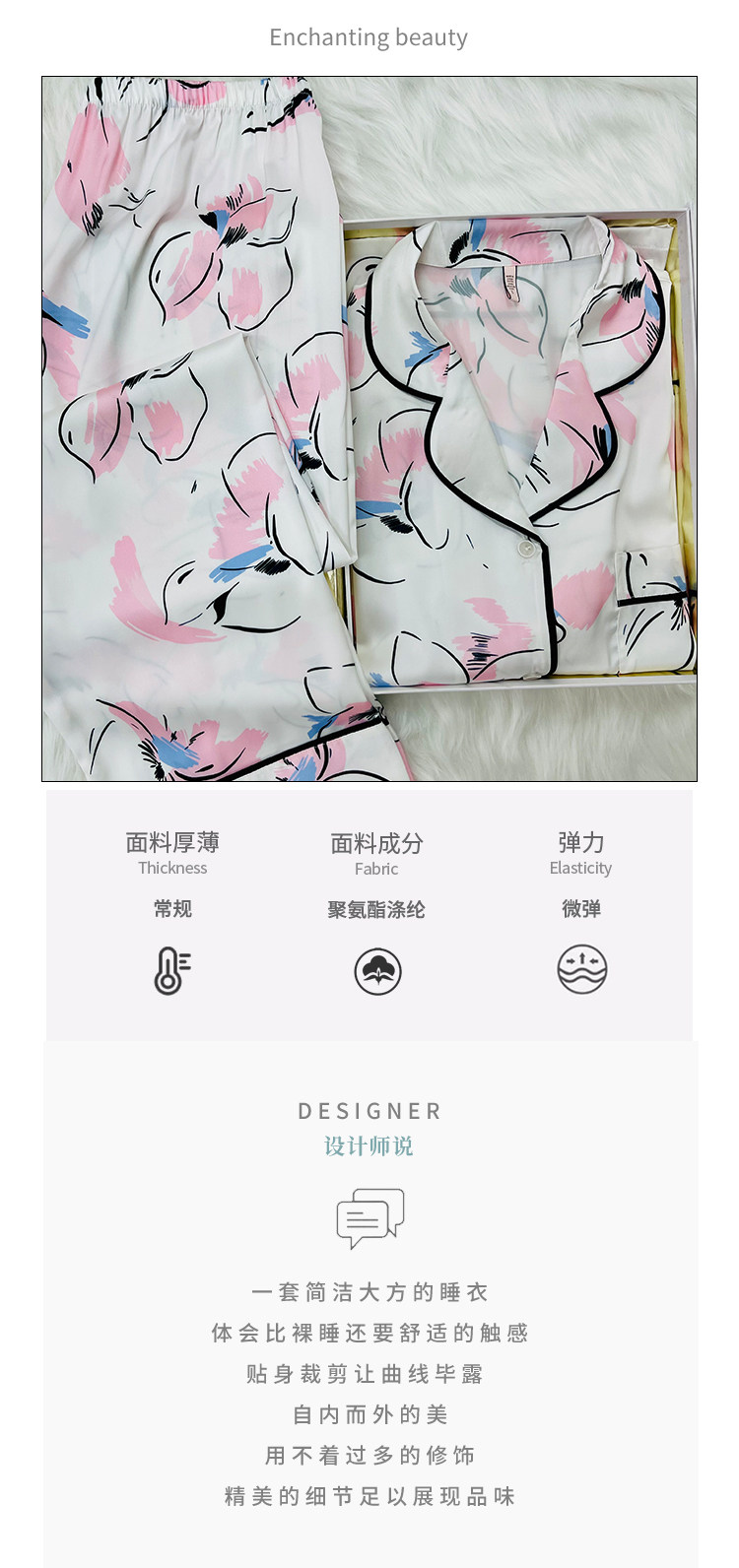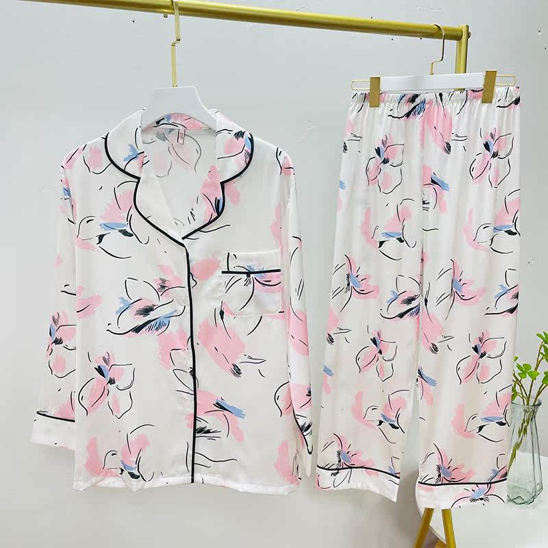 Весенняя летняя пижама, шелковый лонгслив, нарукавники, комплект, коллекция 2022, изысканный стиль