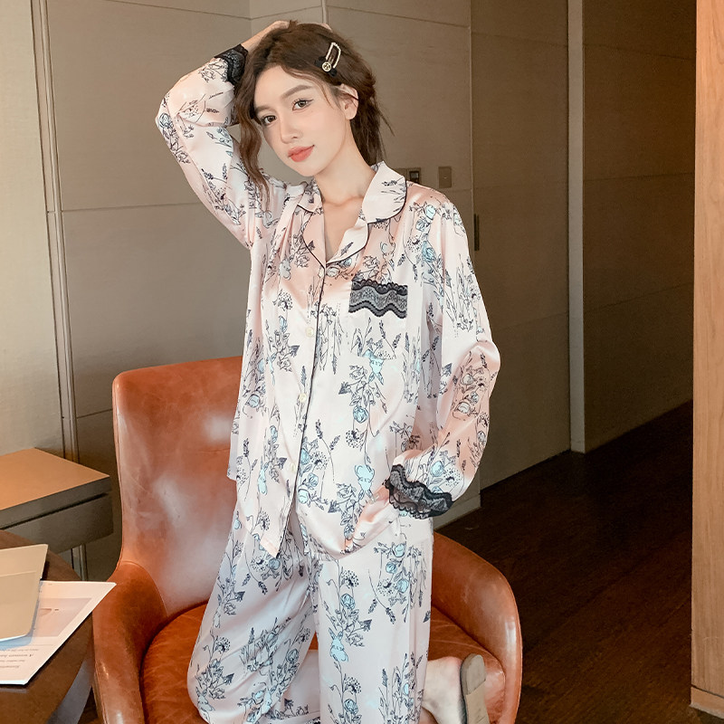 Осенняя пижама, шелковый кролик, лонгслив, нарукавники, кружевной милый комплект, коллекция 2022, кружевное платье