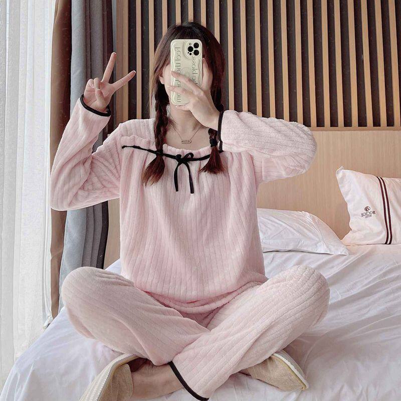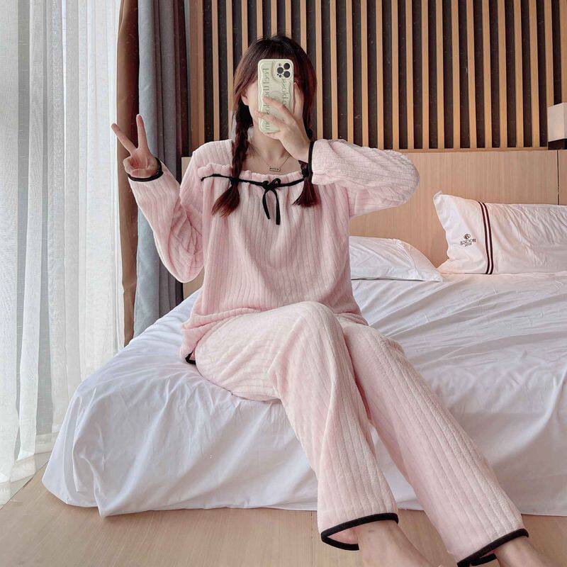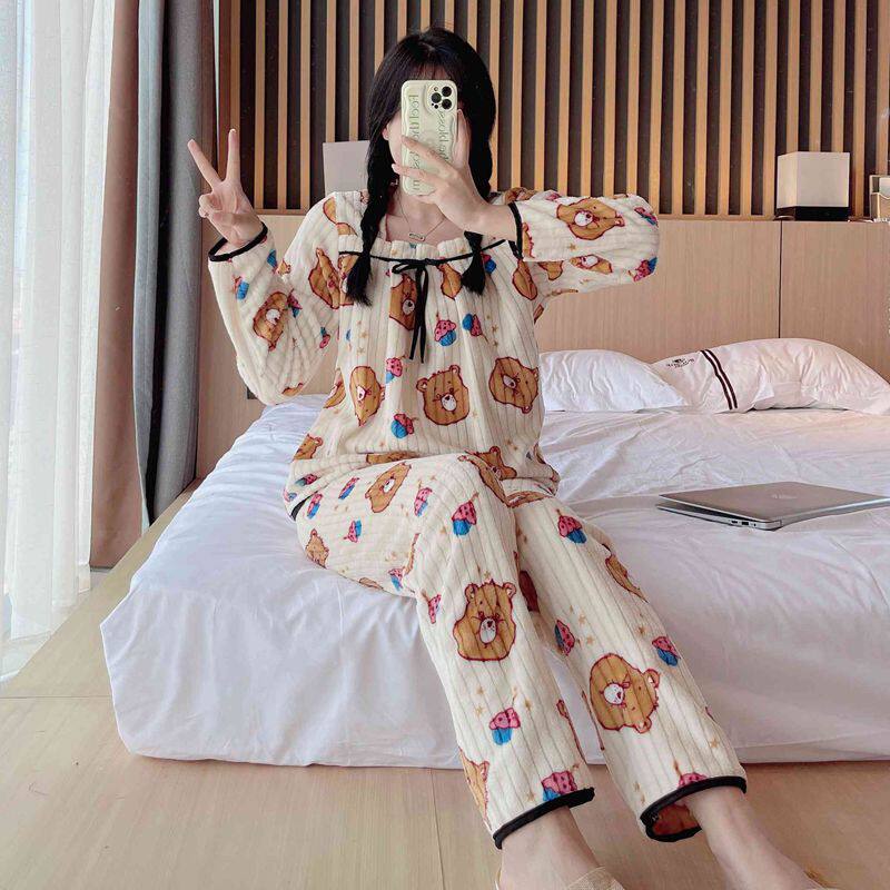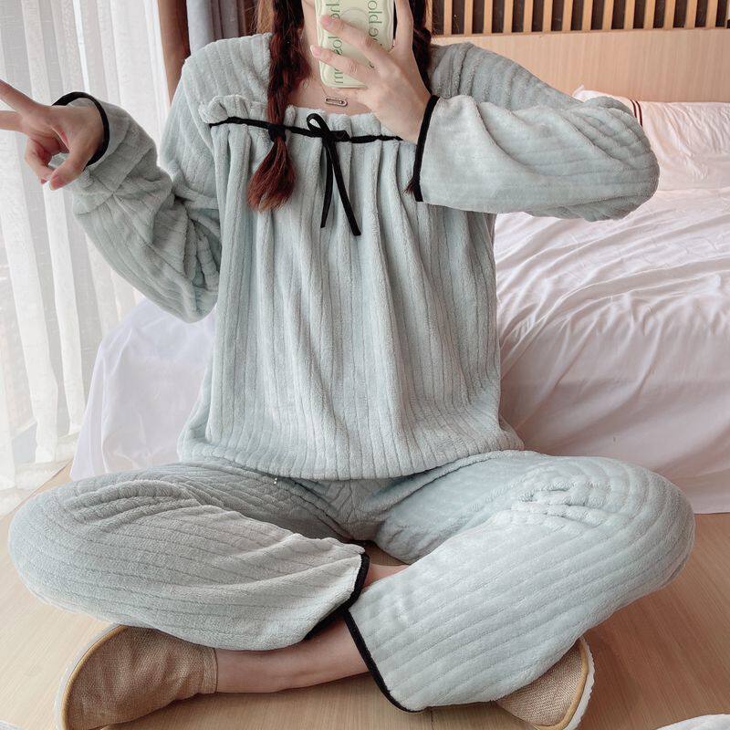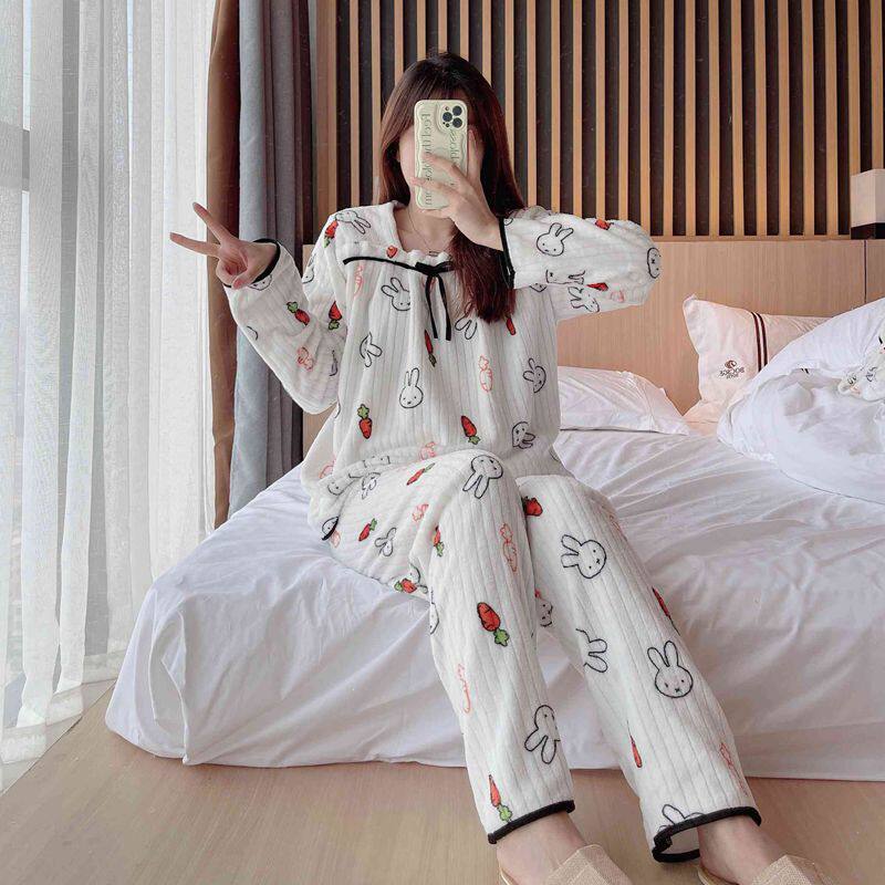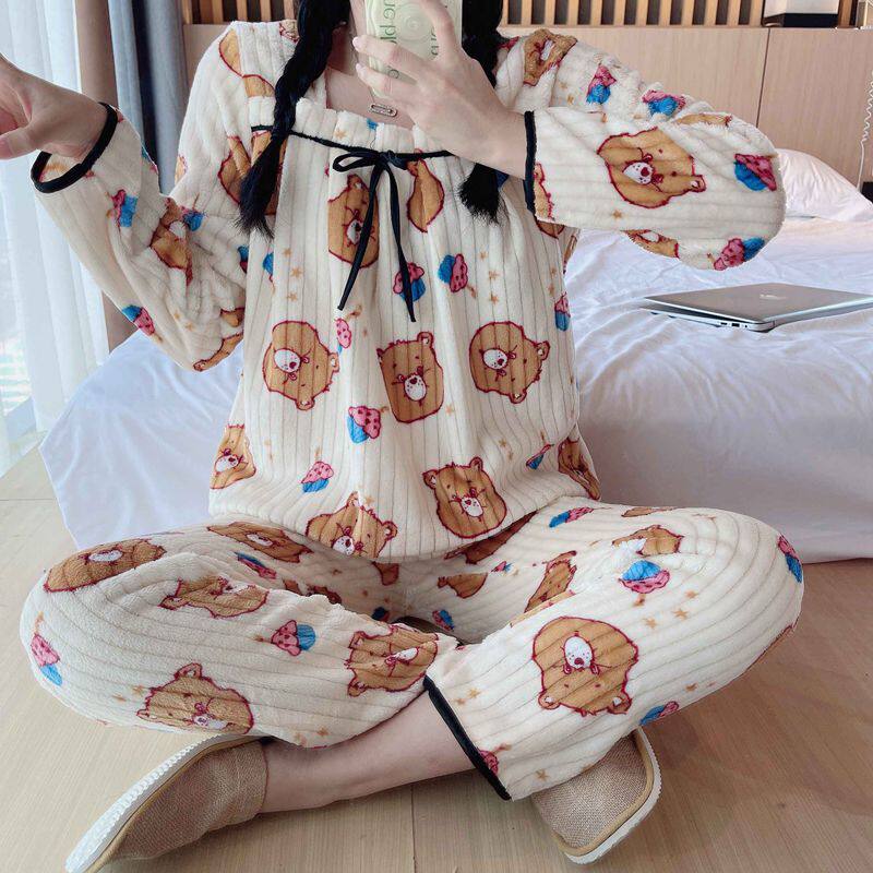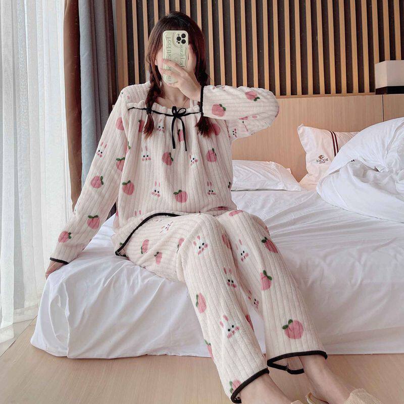 Фланелевая утепленная пижама, демисезонный коралловый бархатный удерживающий тепло комплект, коллекция 2022
