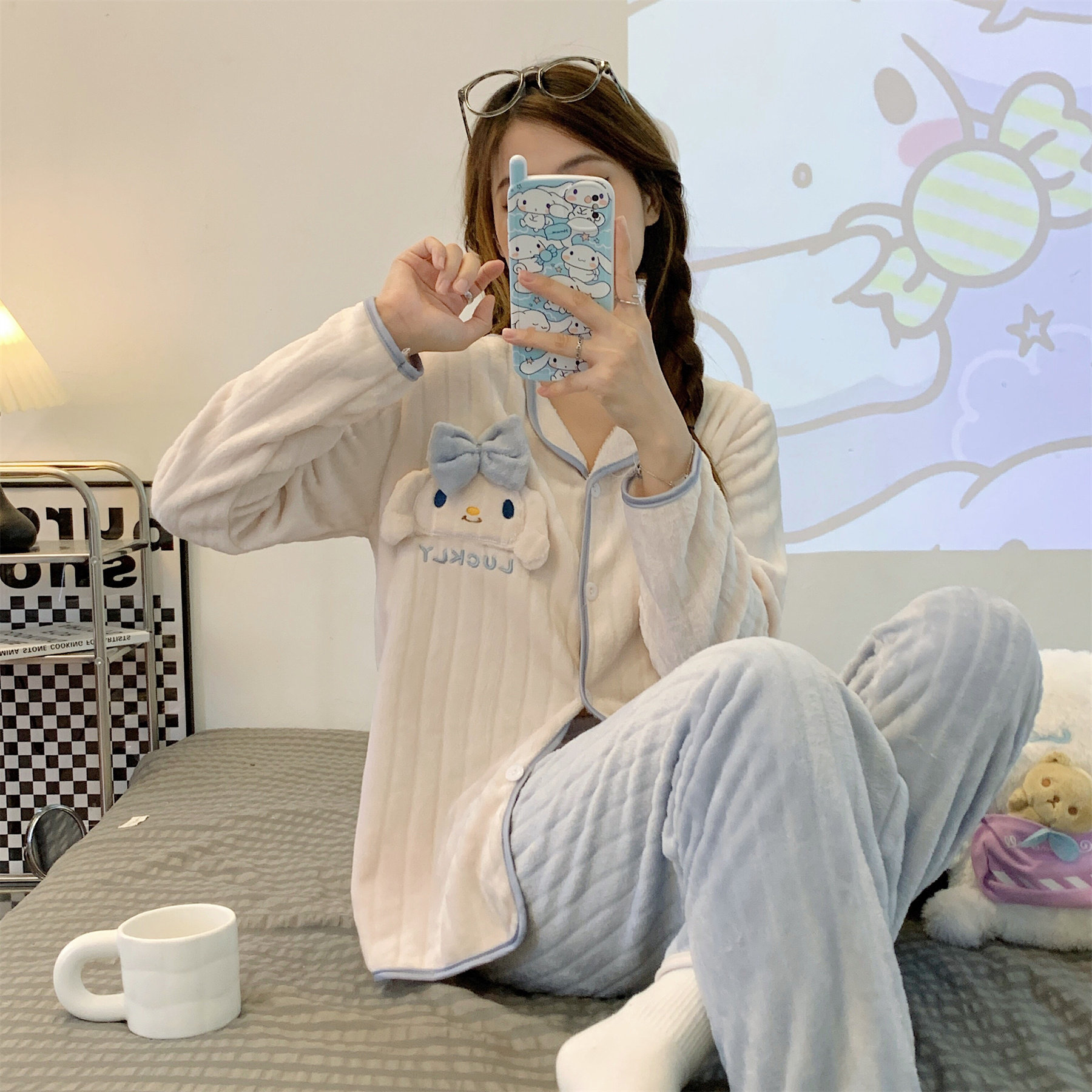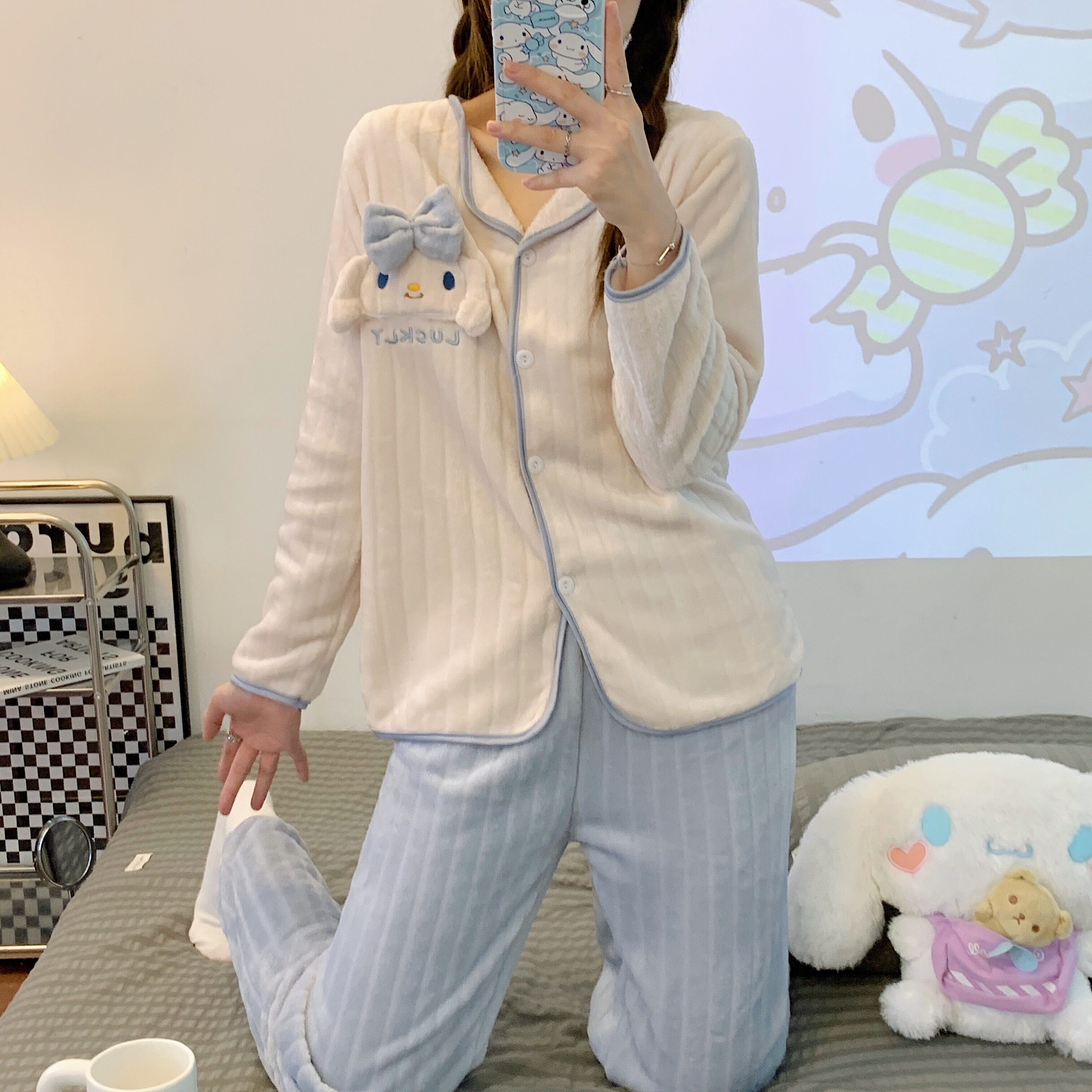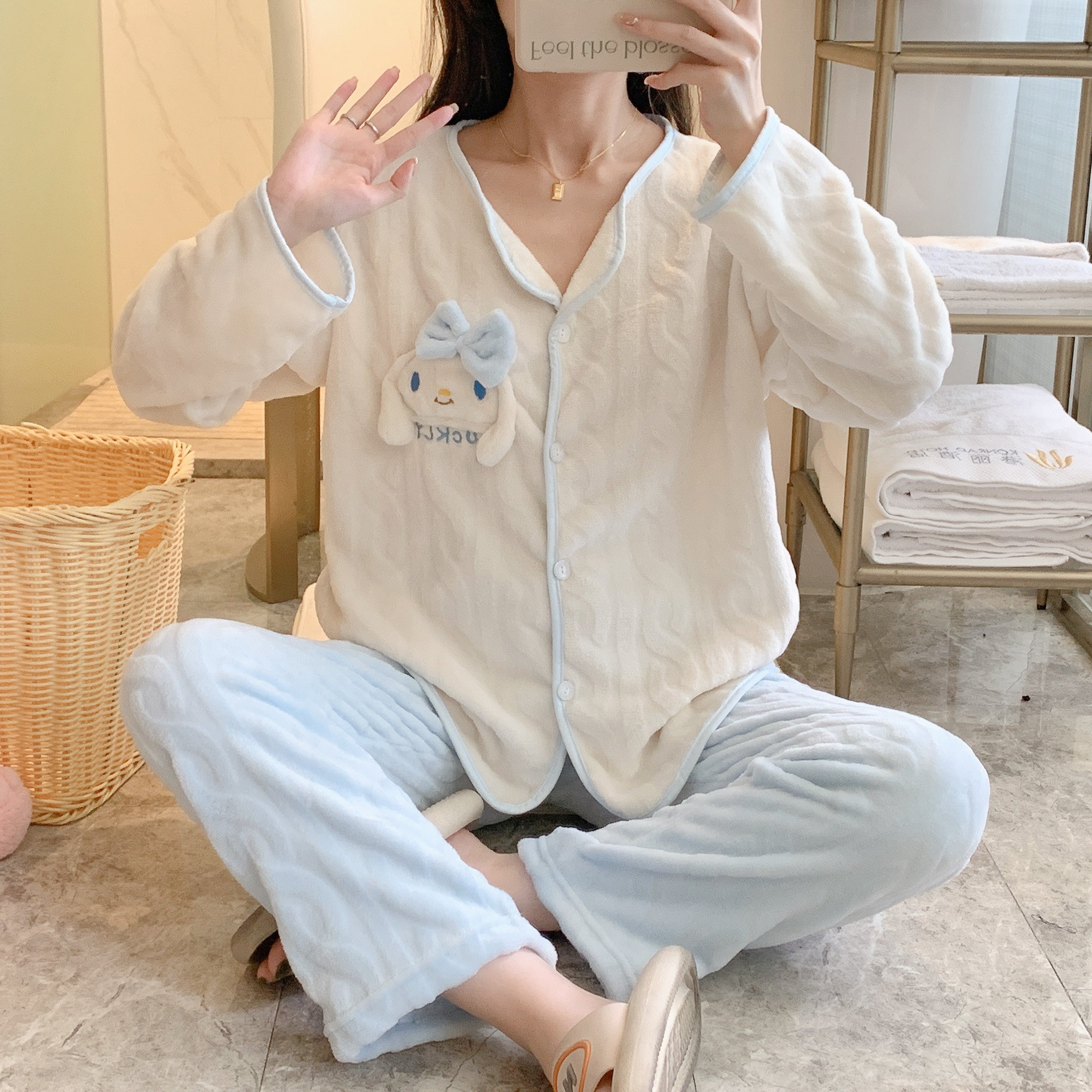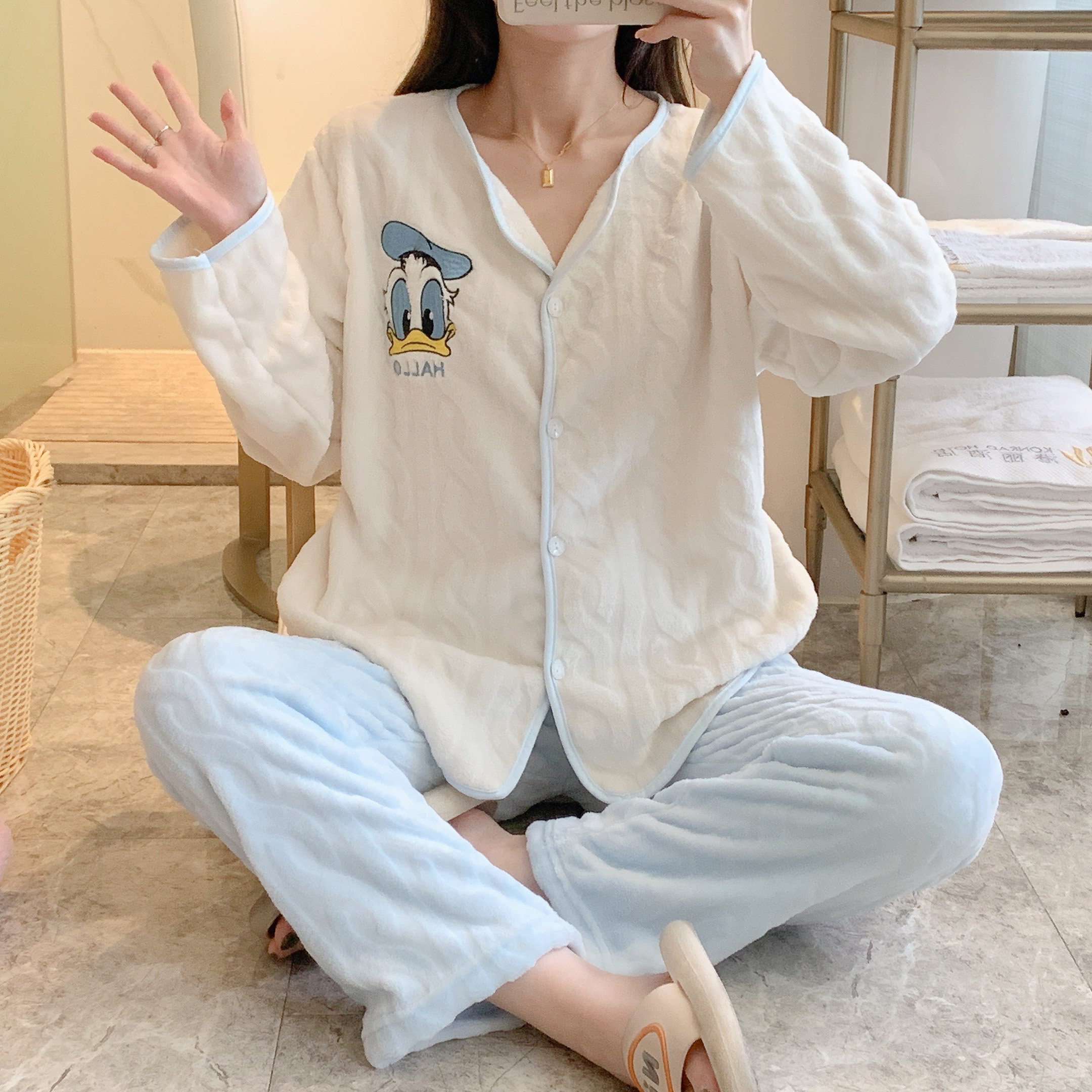 Зимняя фланелевая утепленная демисезонная пижама, коралловый бархатный милый комплект, популярно в интернете
