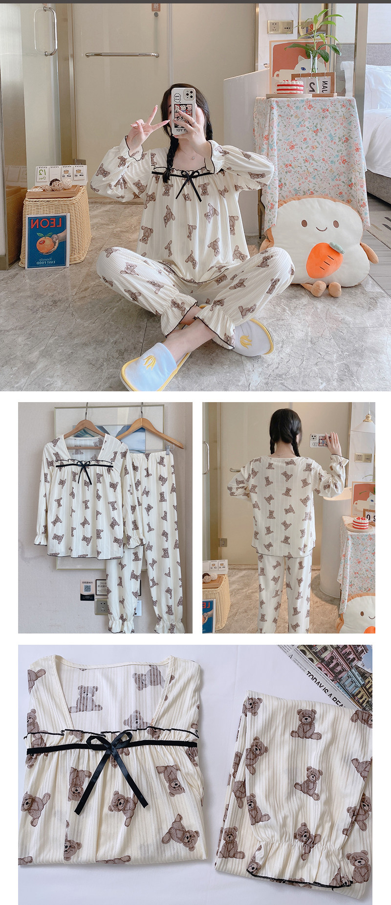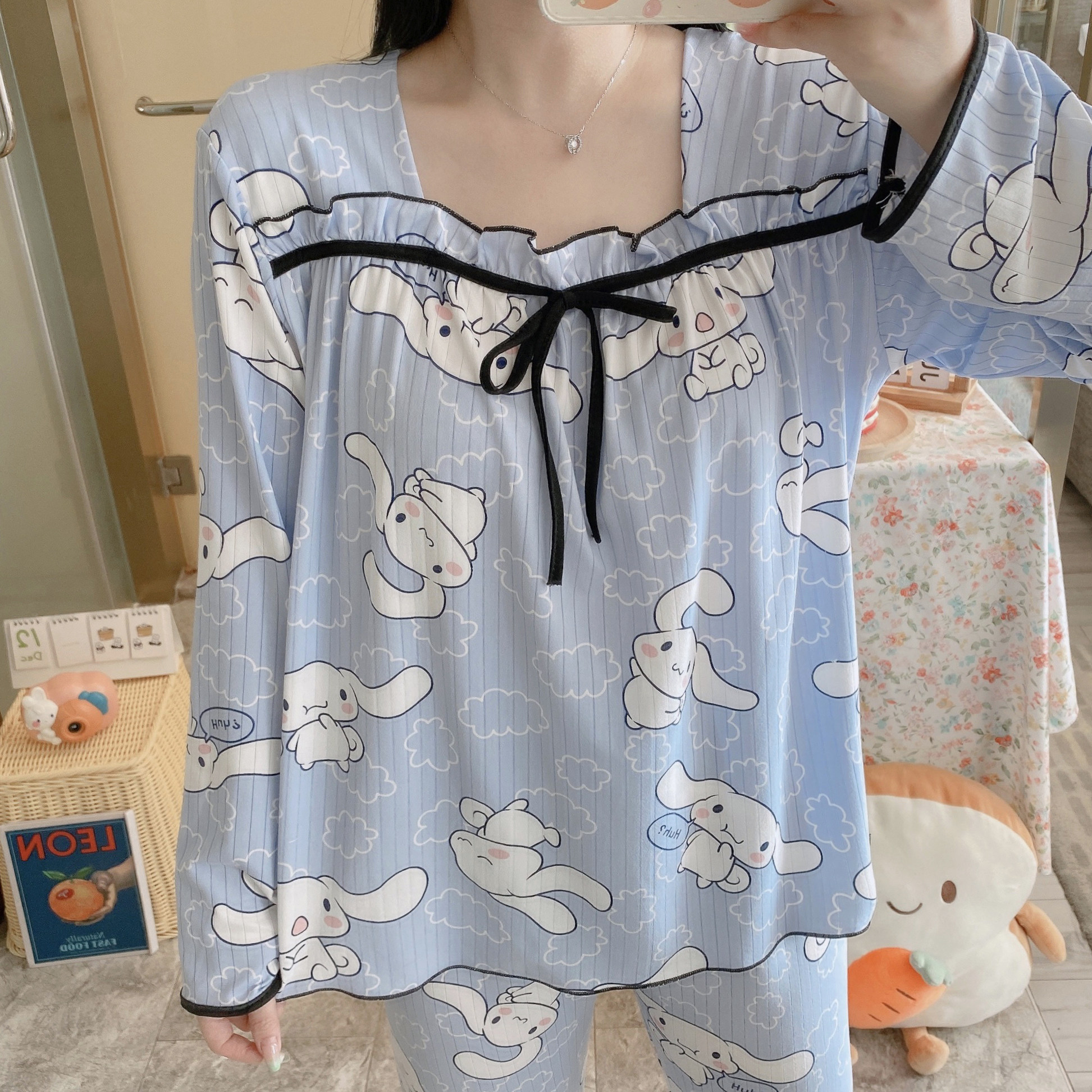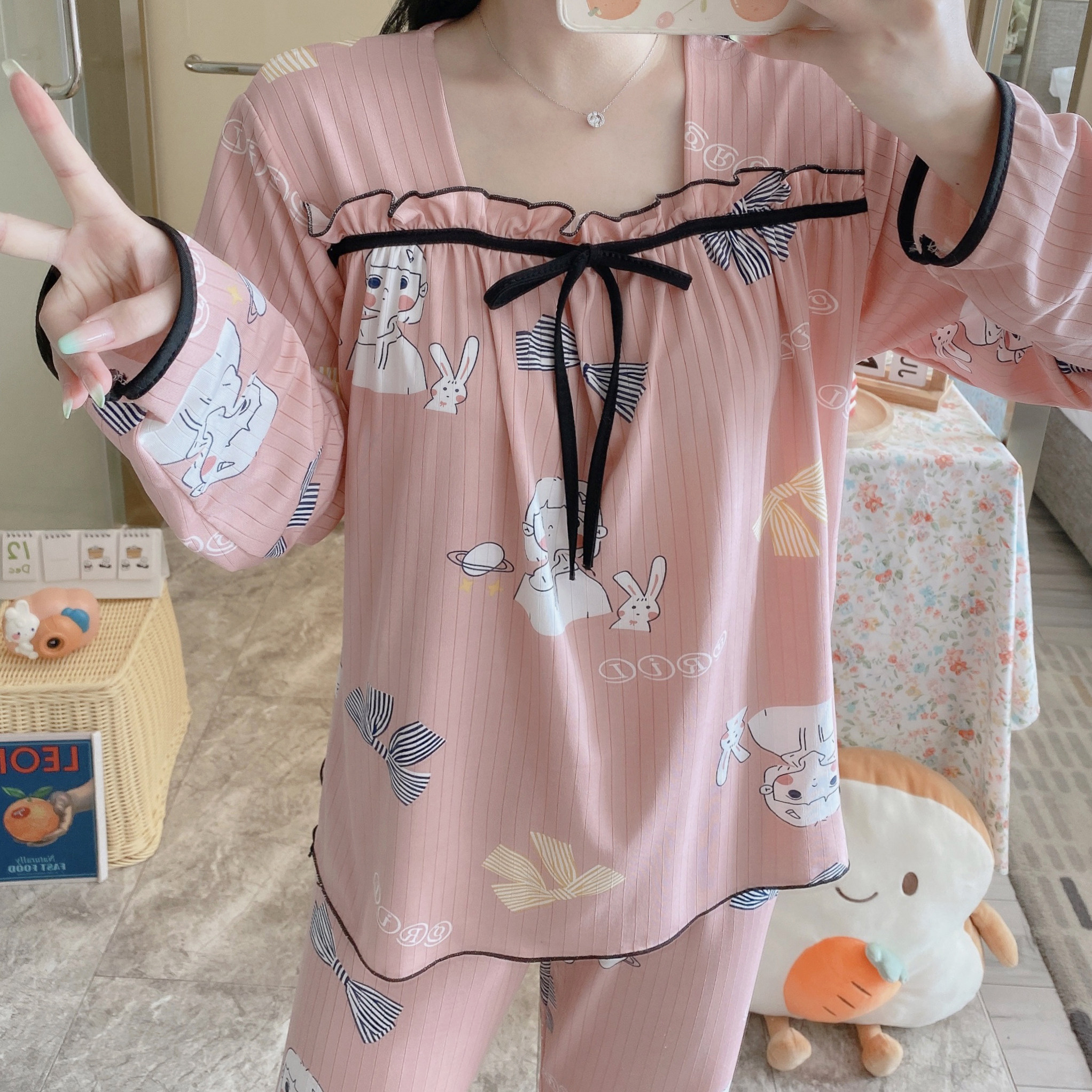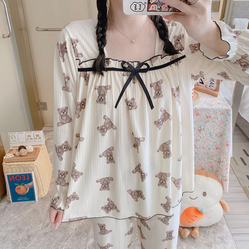 Осенняя пижама, хлопковый осенний лонгслив, мультяшный милый комплект, коллекция 2022