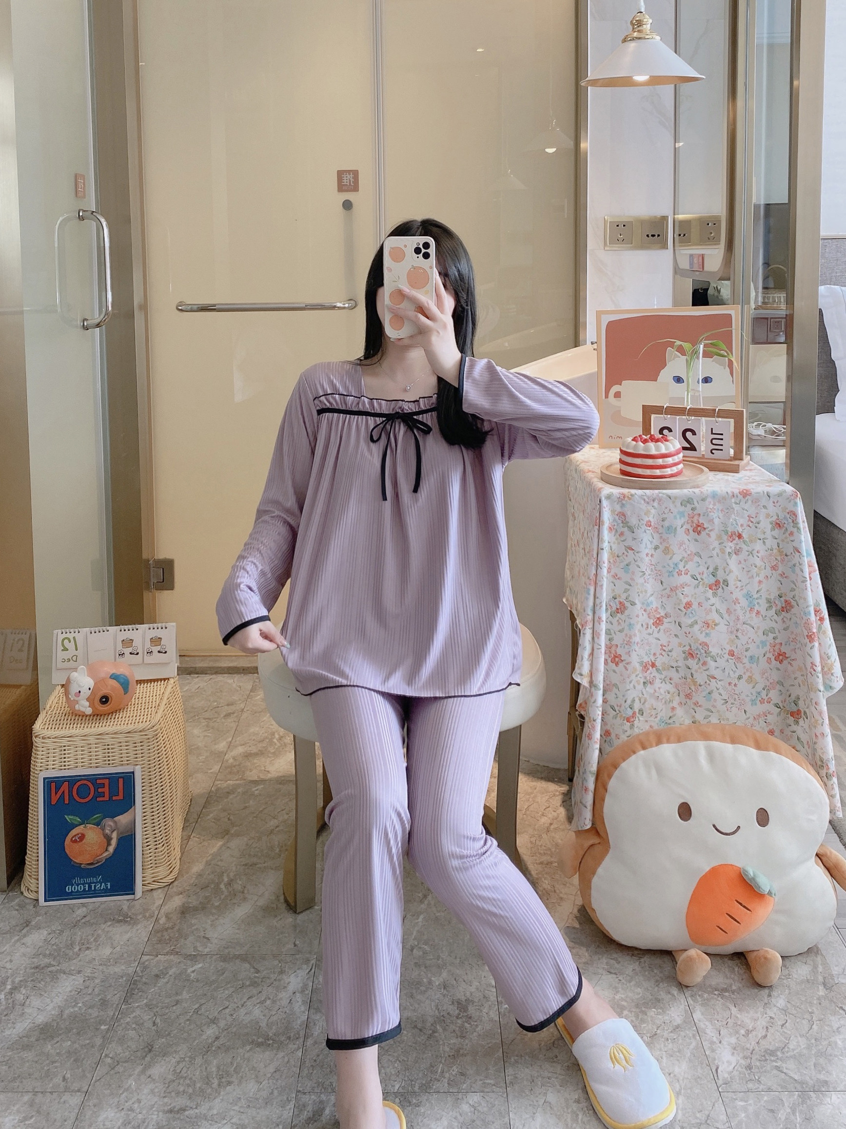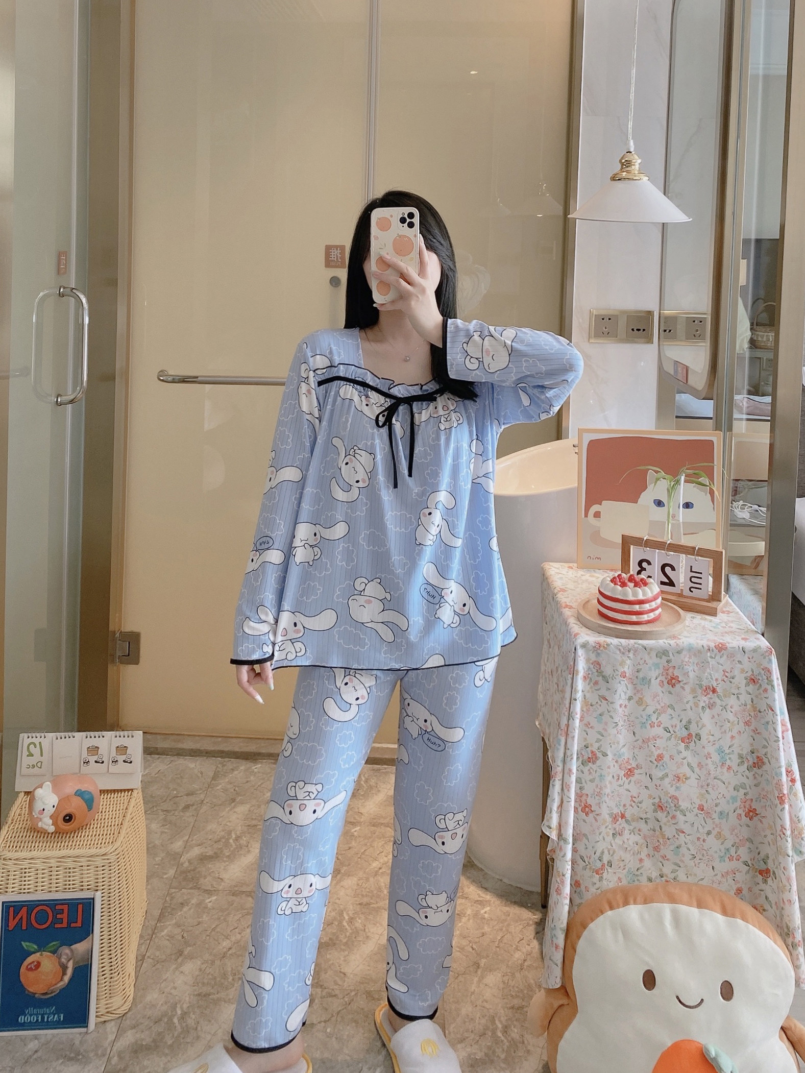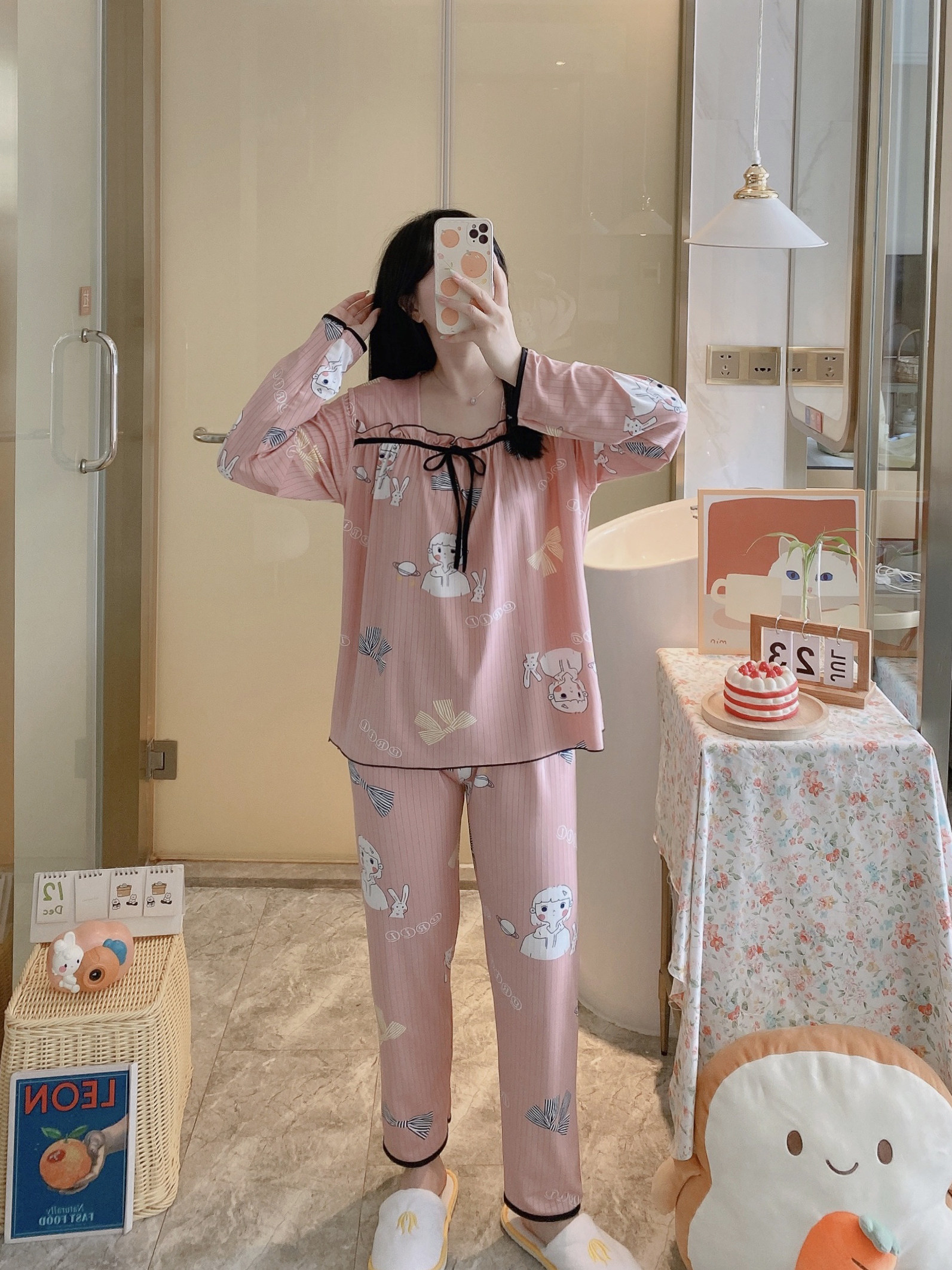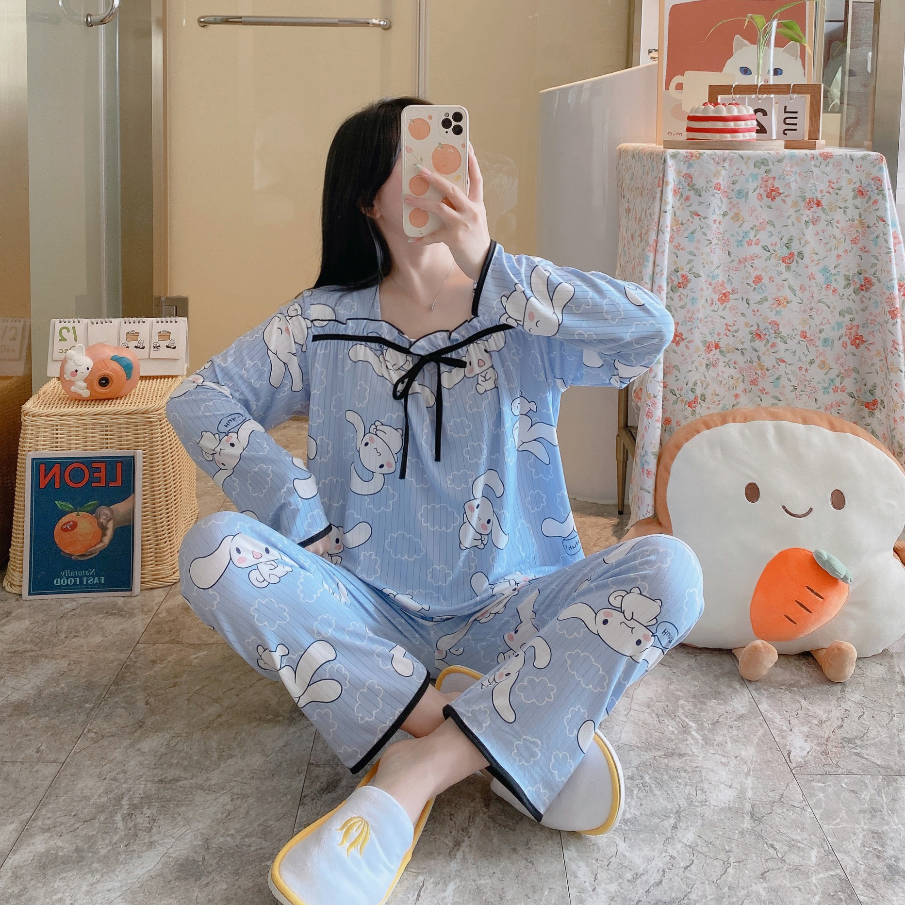 Осенняя пижама, хлопковый осенний лонгслив, мультяшный милый комплект, коллекция 2022