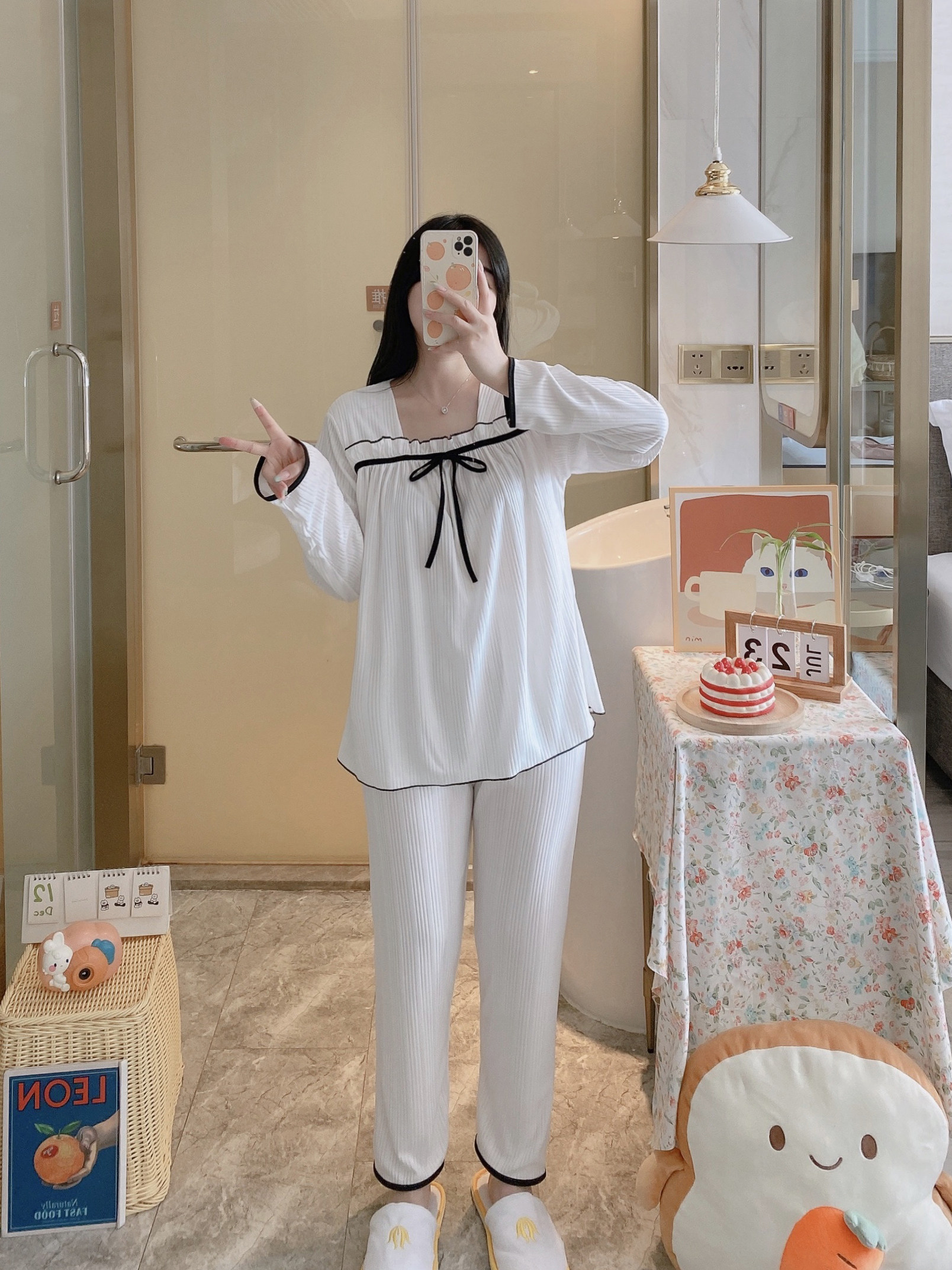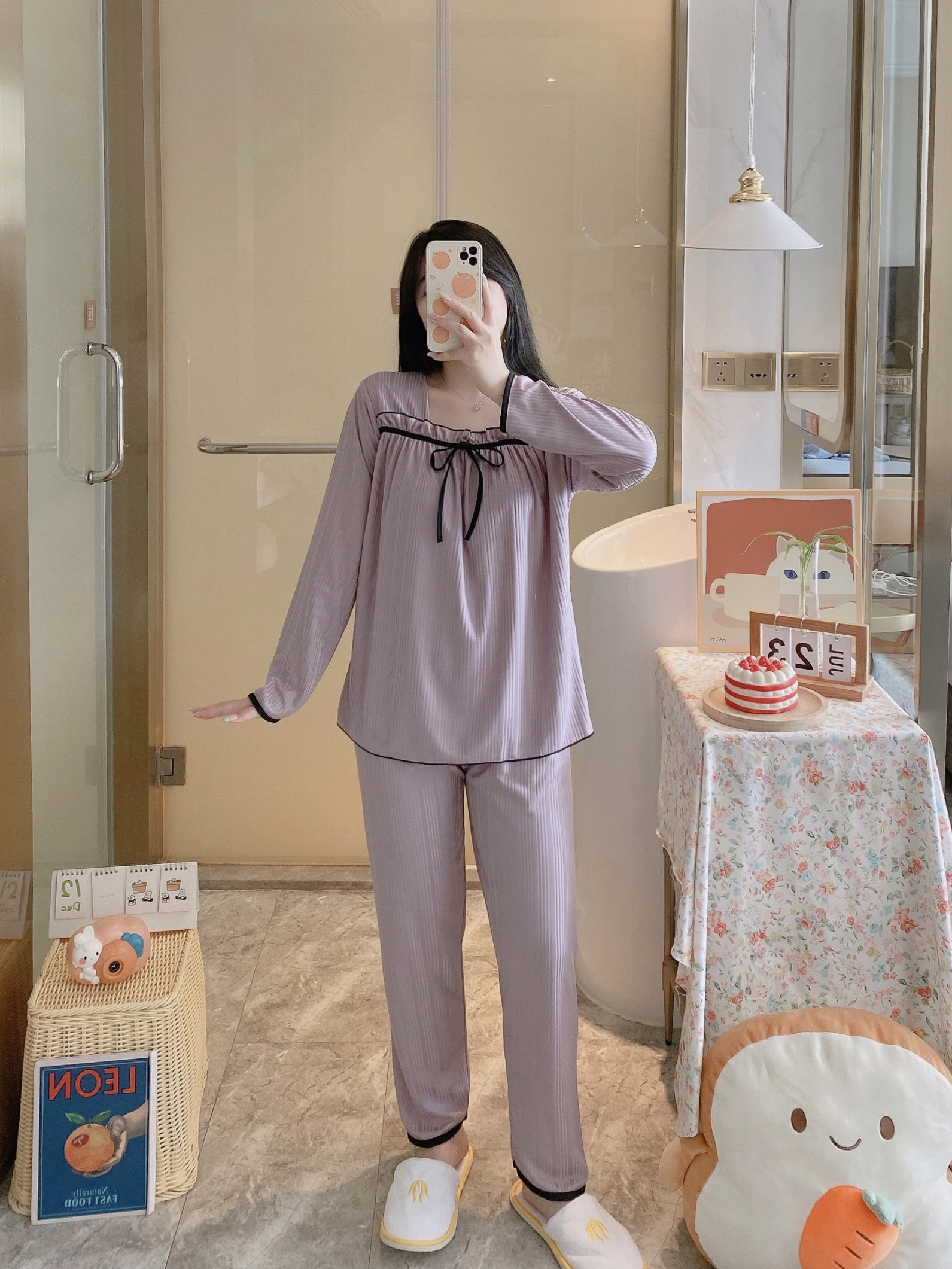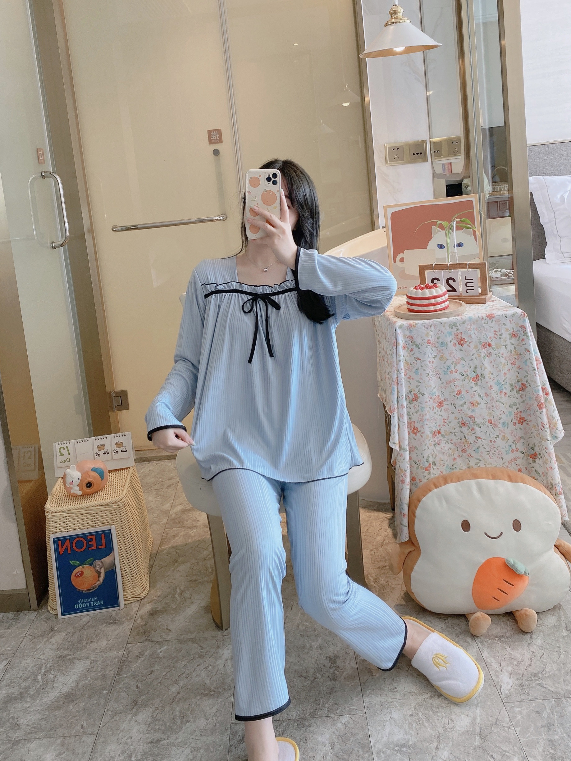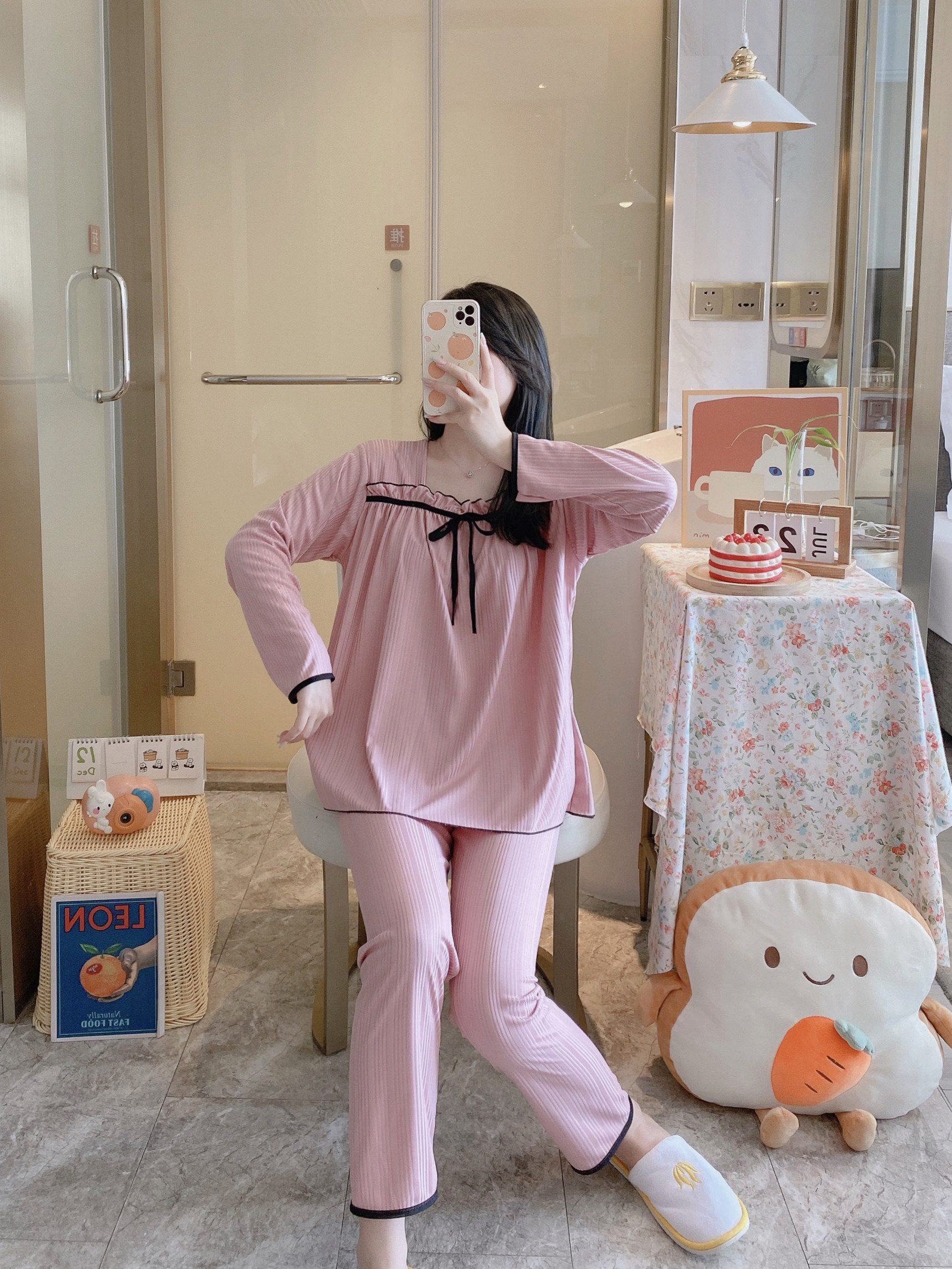 Осенняя пижама, хлопковый осенний лонгслив, мультяшный милый комплект, коллекция 2022