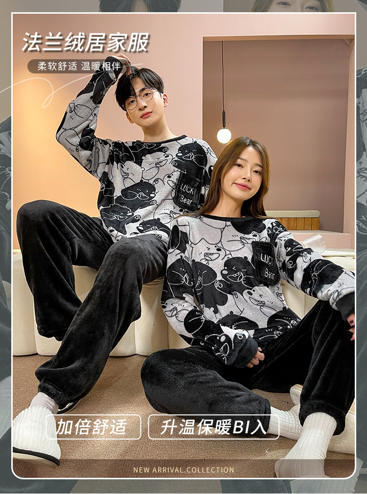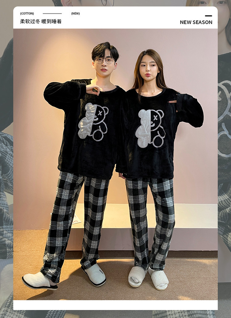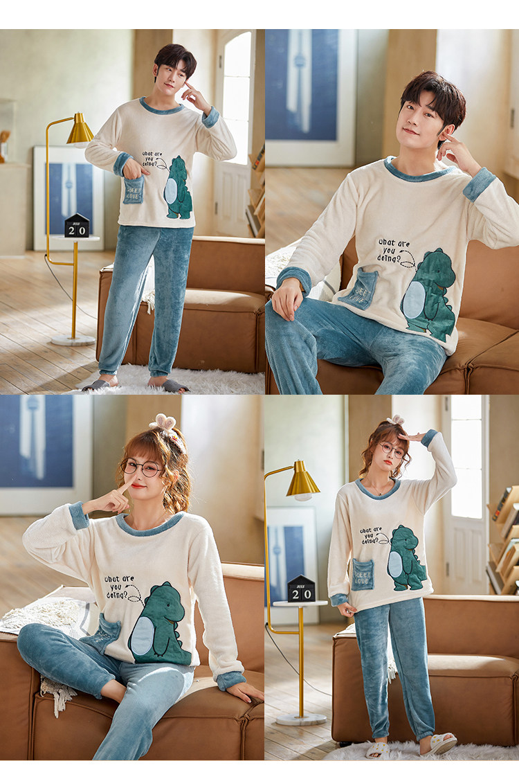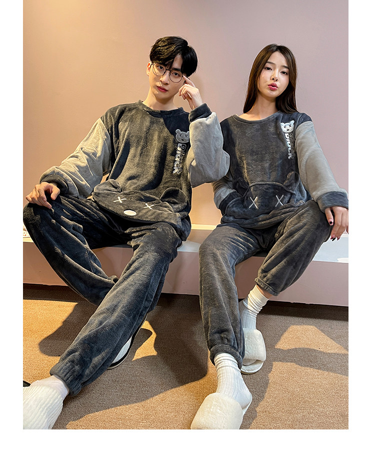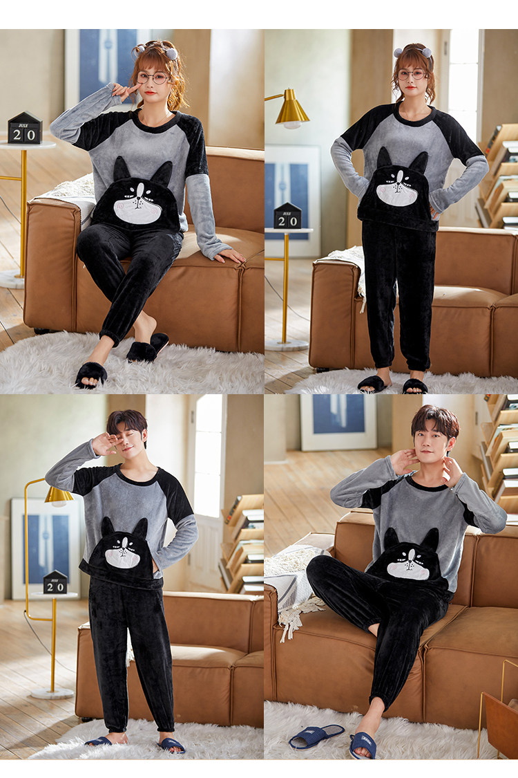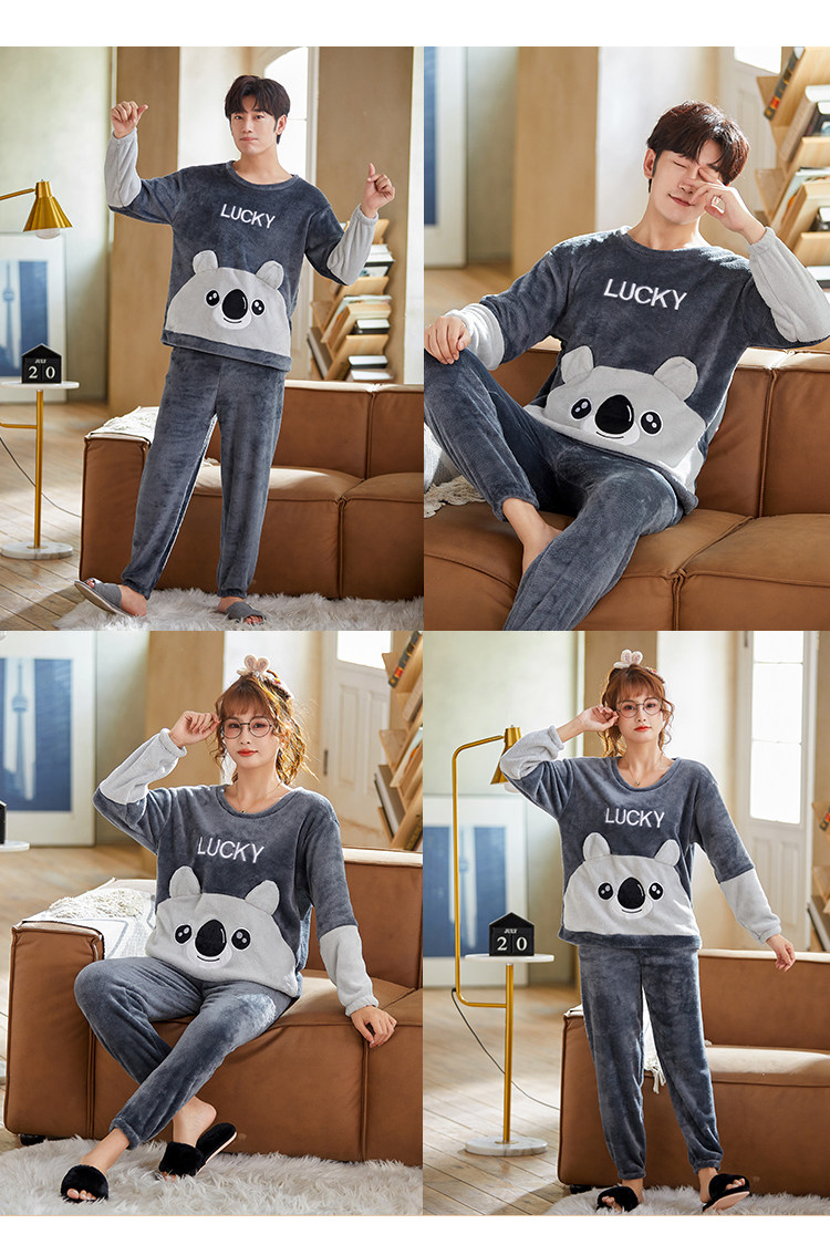 Мужская демисезонная фланелевая мультяшная пижама, коралловый бархатный комплект, для влюбленных