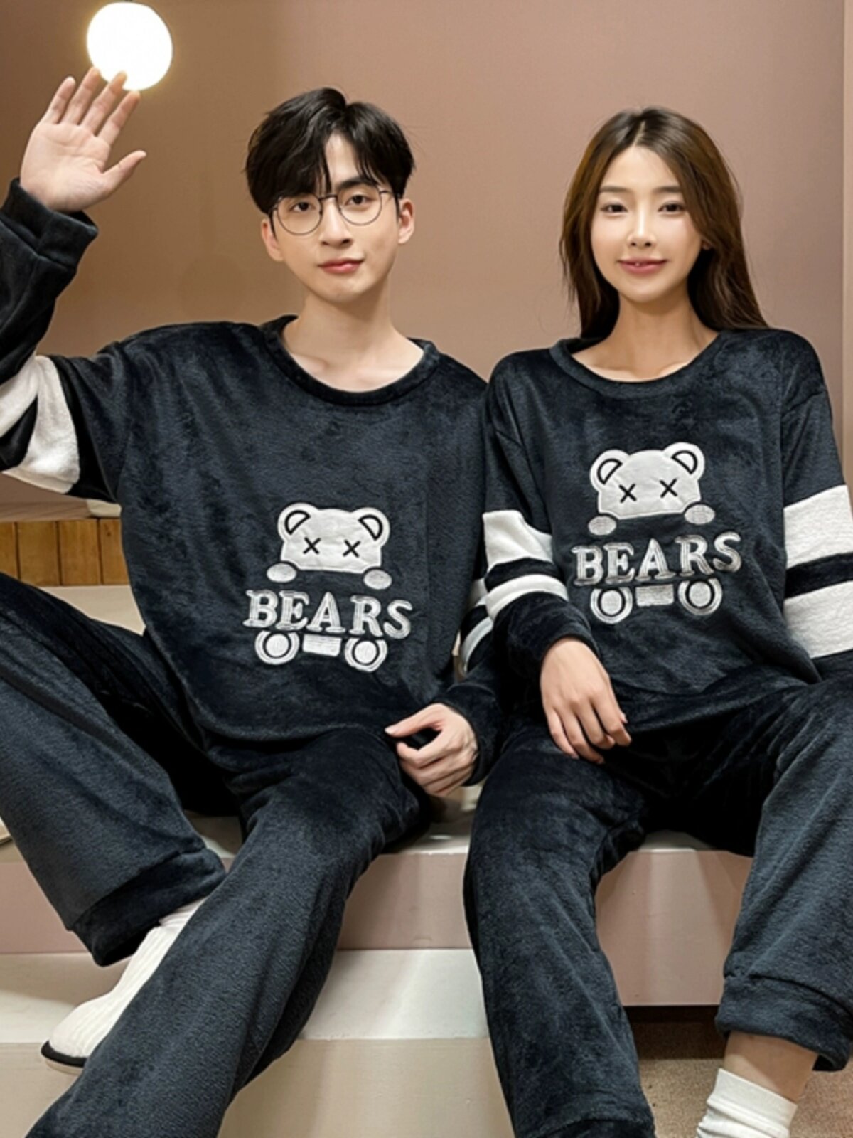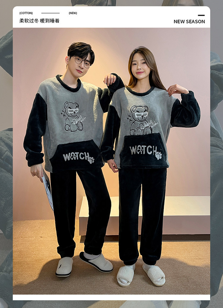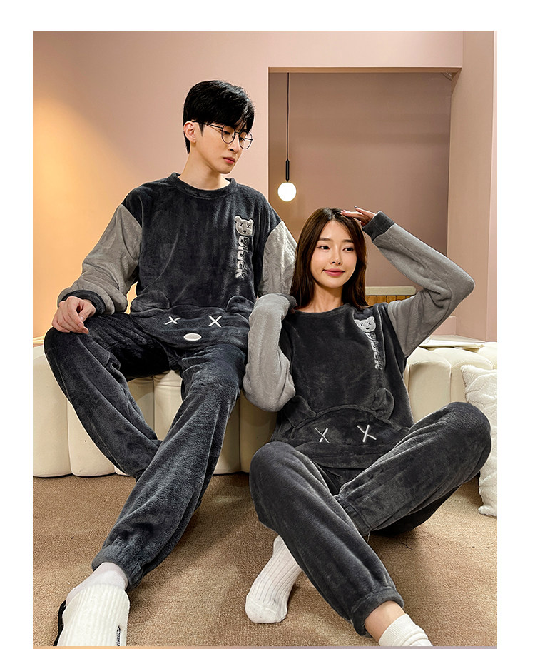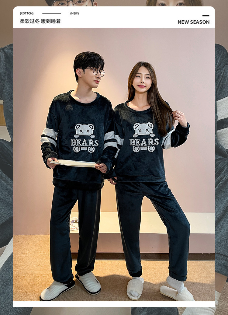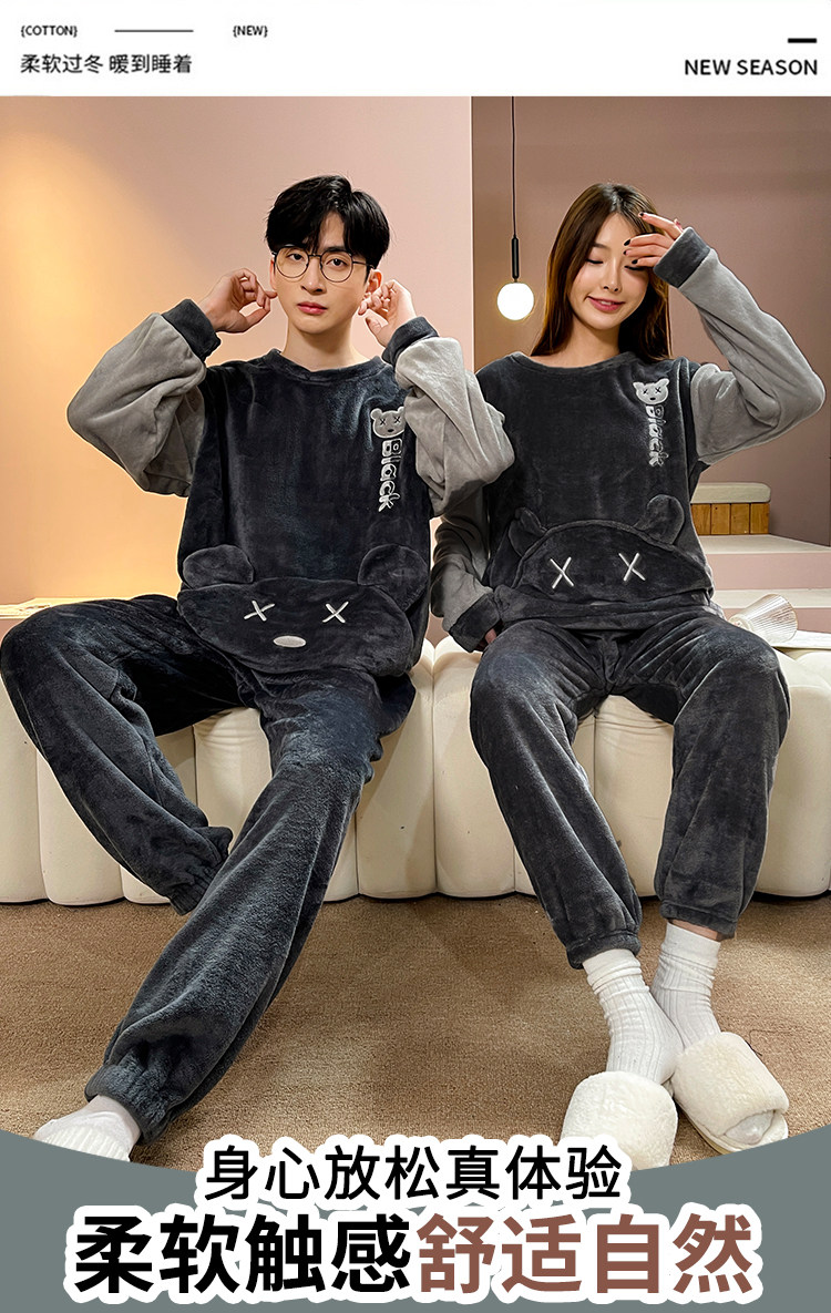 Мужская демисезонная фланелевая мультяшная пижама, коралловый бархатный комплект, для влюбленных