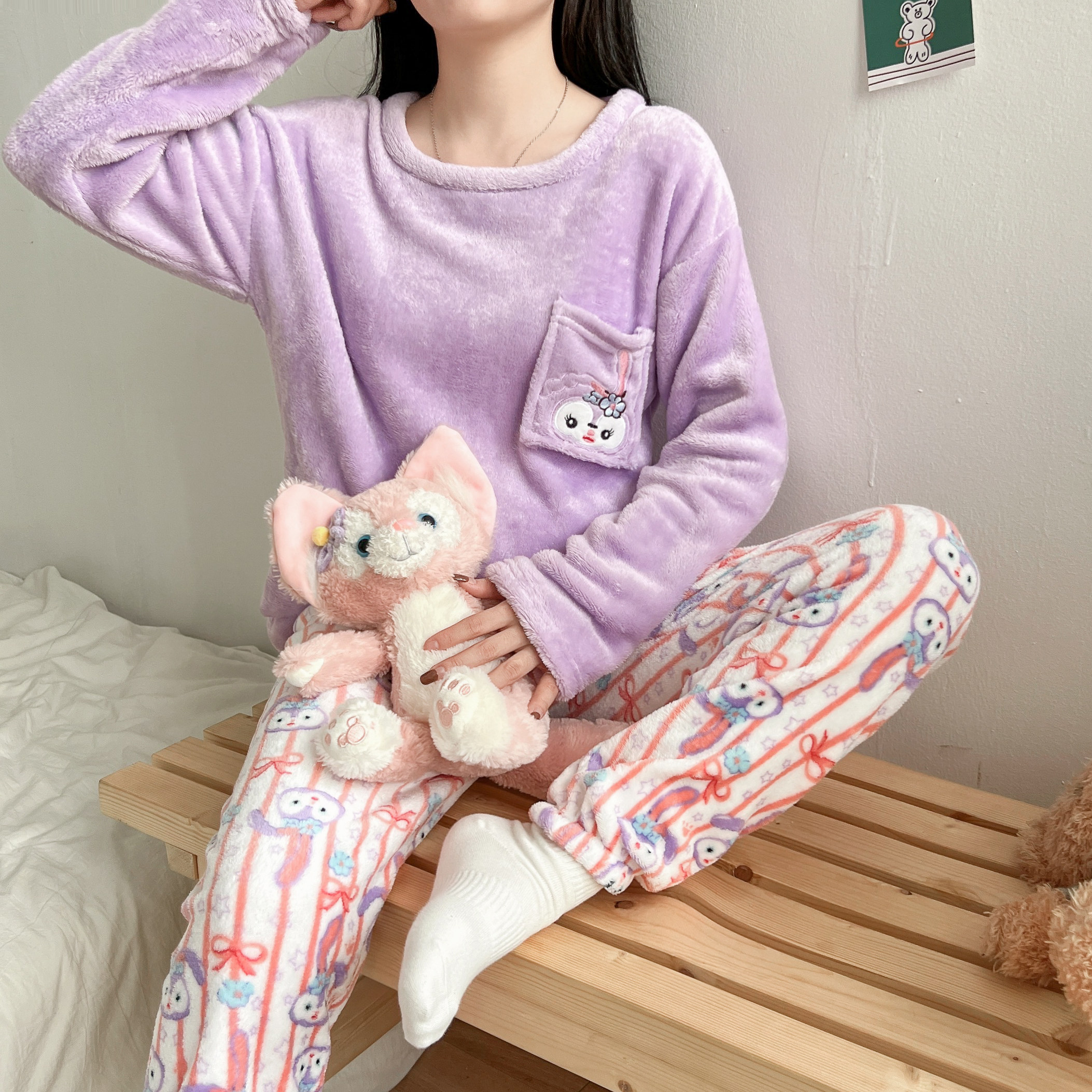 Мультяшная зимняя фланелевая пижама, коралловый бархатный демисезонный комплект, коллекция 2022, популярно в интернете