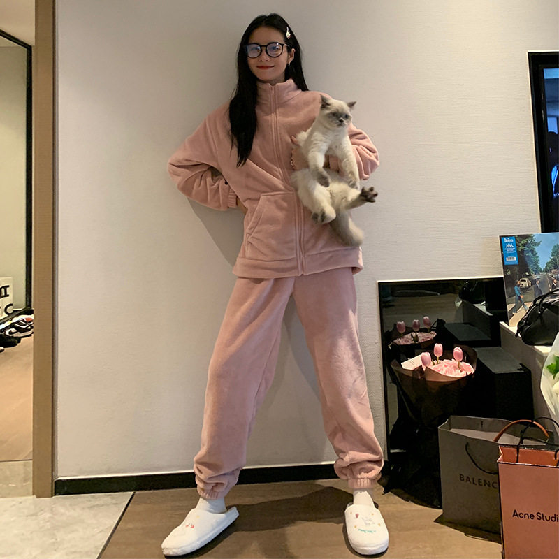 Коралловый бархатный комплект, демисезонная пижама, толстовка, кардиган, в корейском стиле, для влюбленных