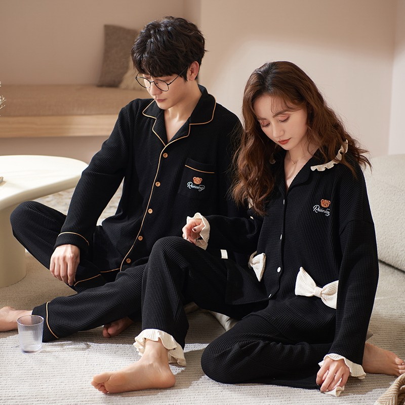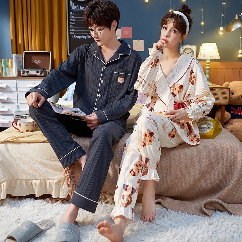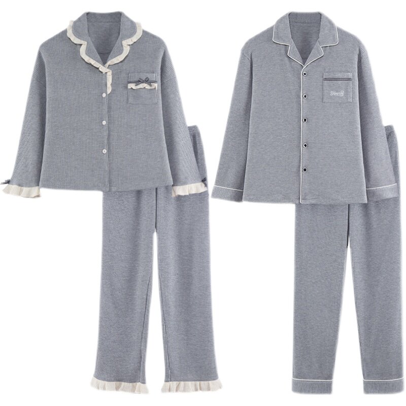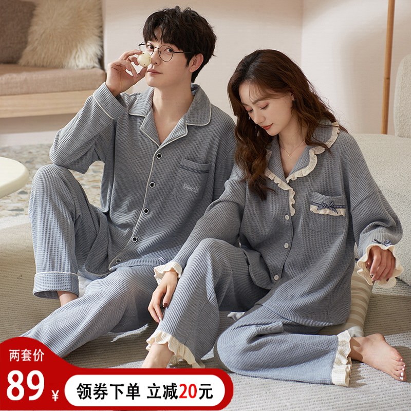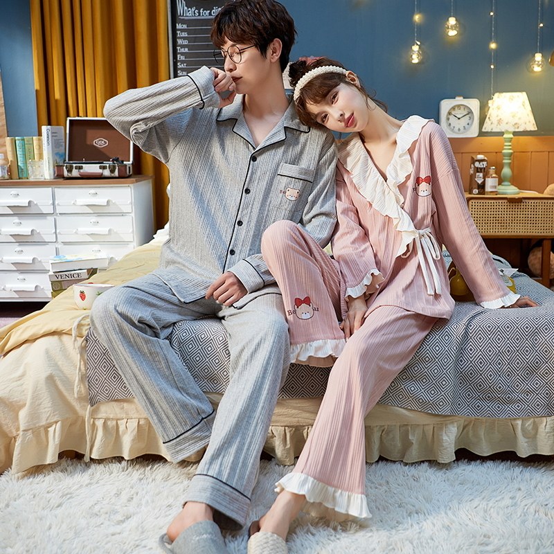 Демисезонная пижама, хлопковый лонгслив для отдыха, осенний комплект, для влюбленных, оверсайз