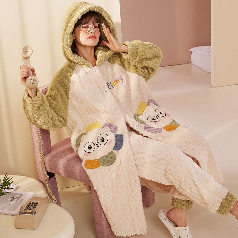 Зимний банный халат, утепленная пижама, коралловый бархатный фланелевый комплект