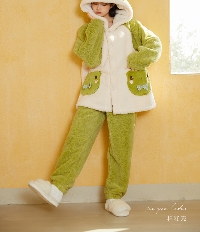 Милая коралловая бархатная пижама, зимний флисовый удерживающий тепло комплект, увеличенная толщина