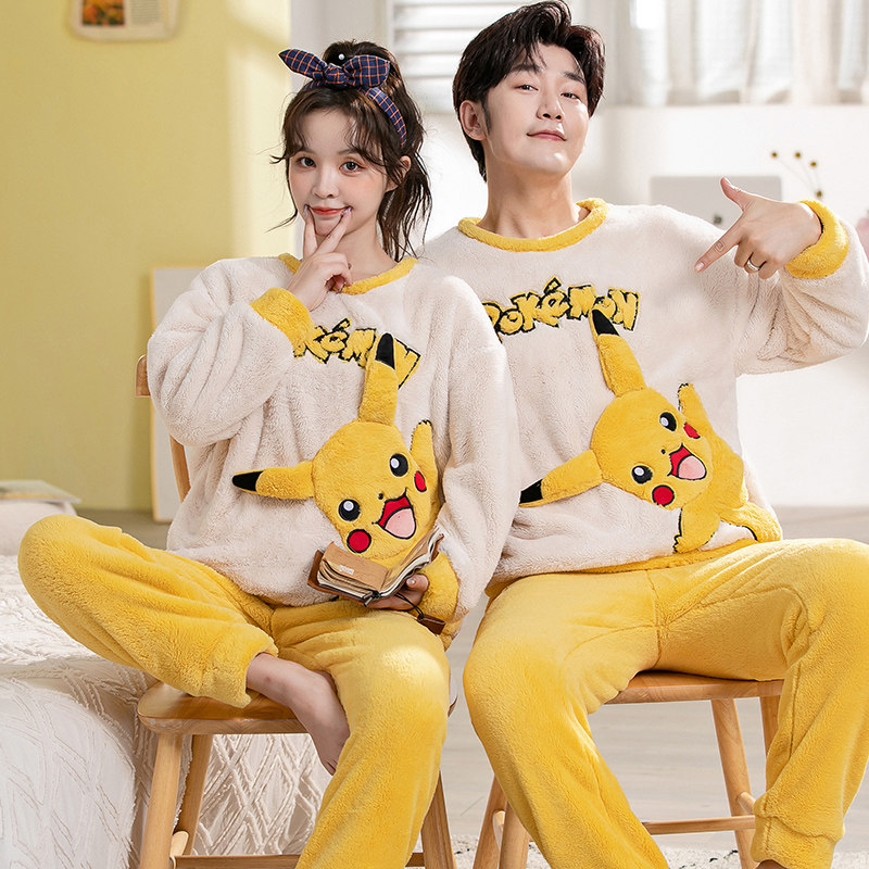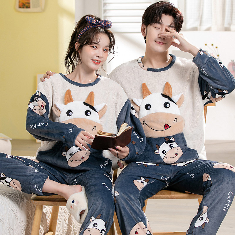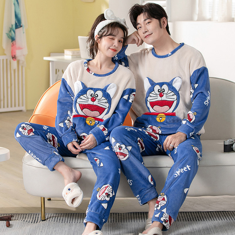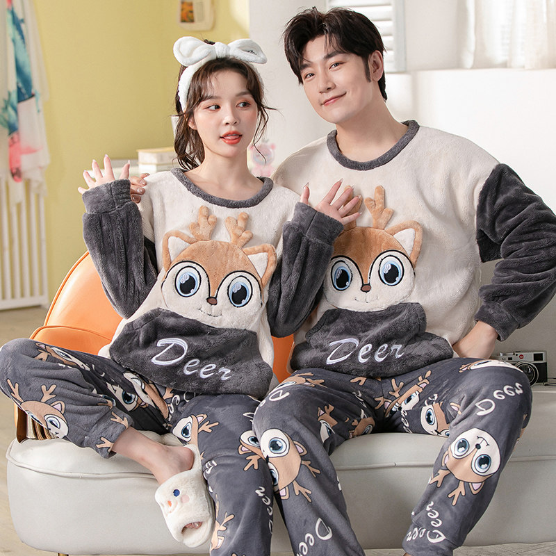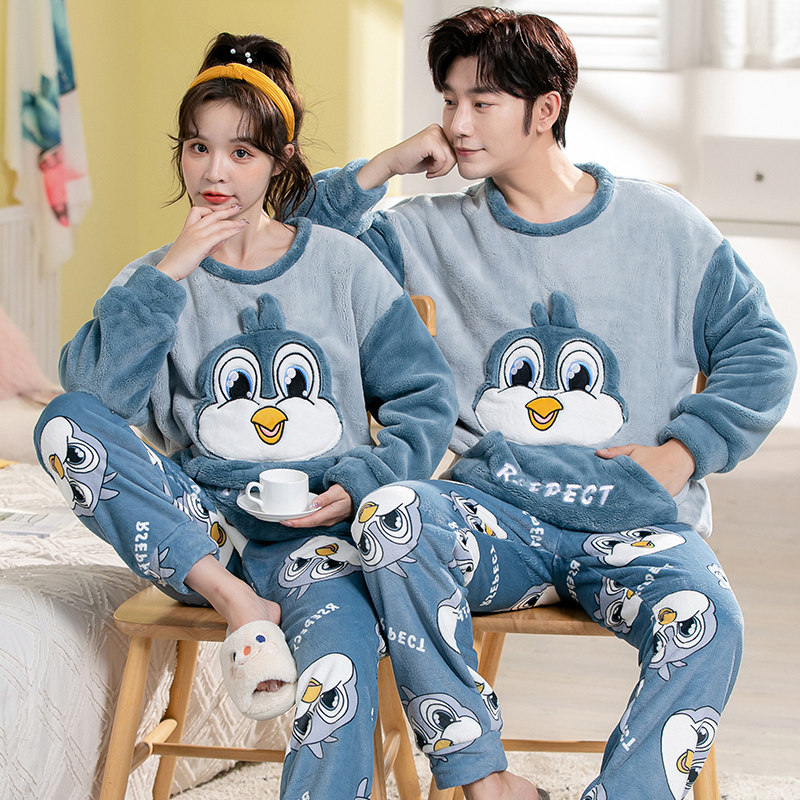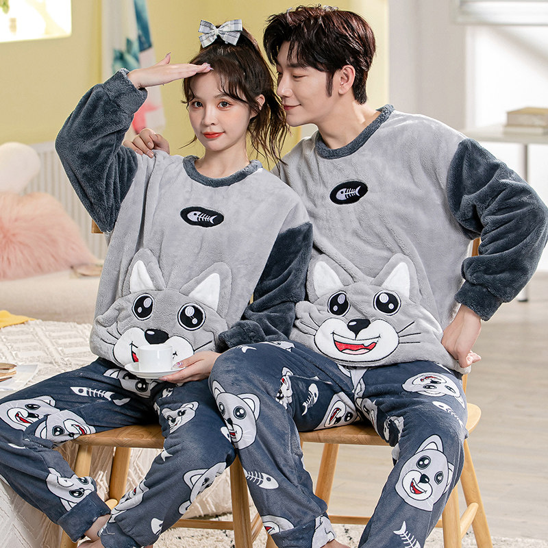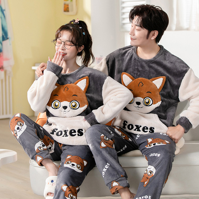 Демисезонная пижама, фланелевое бархатное утепленное термобелье, мультяшный коралловый бархатный комплект, для влюбленных