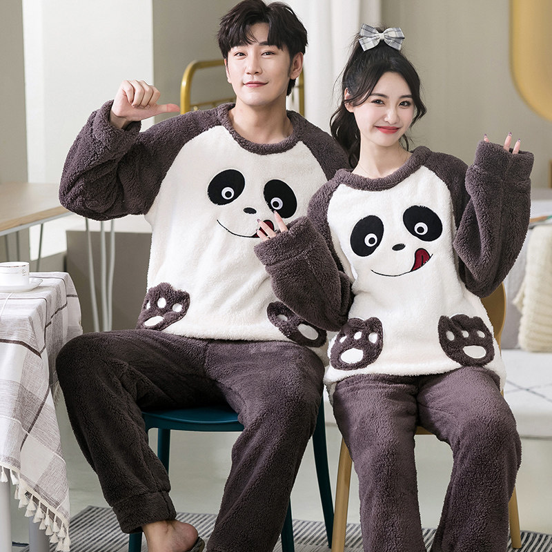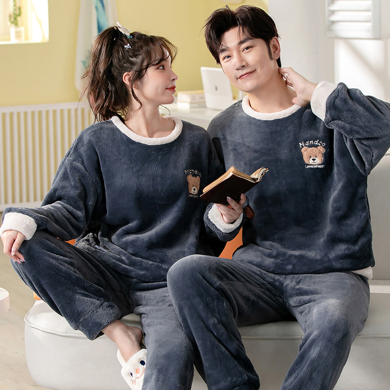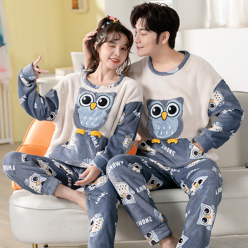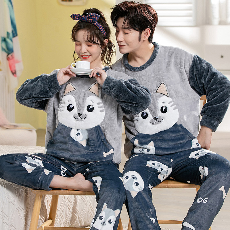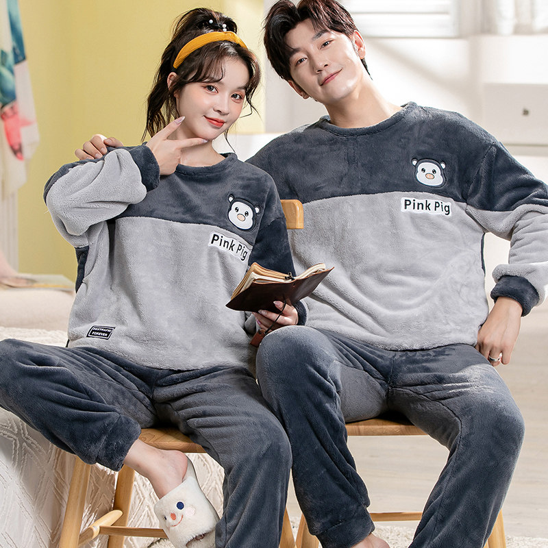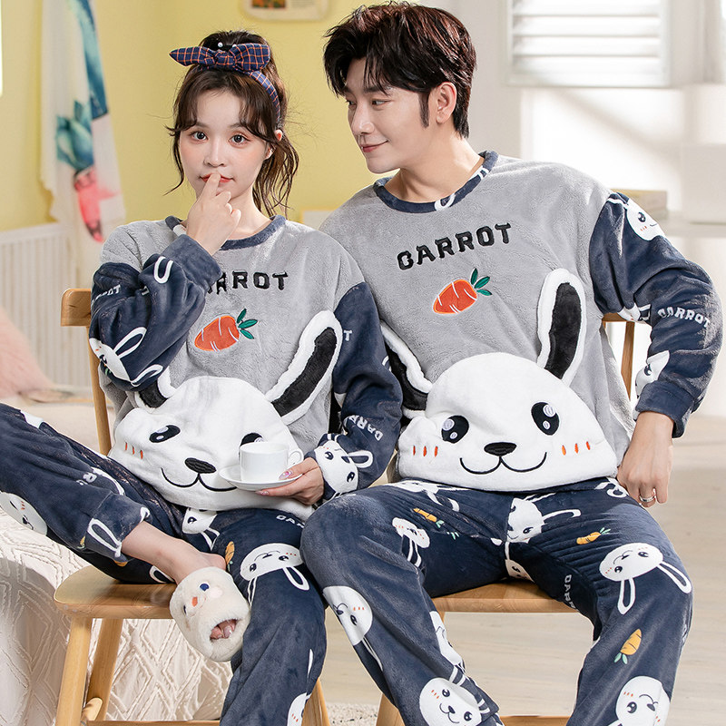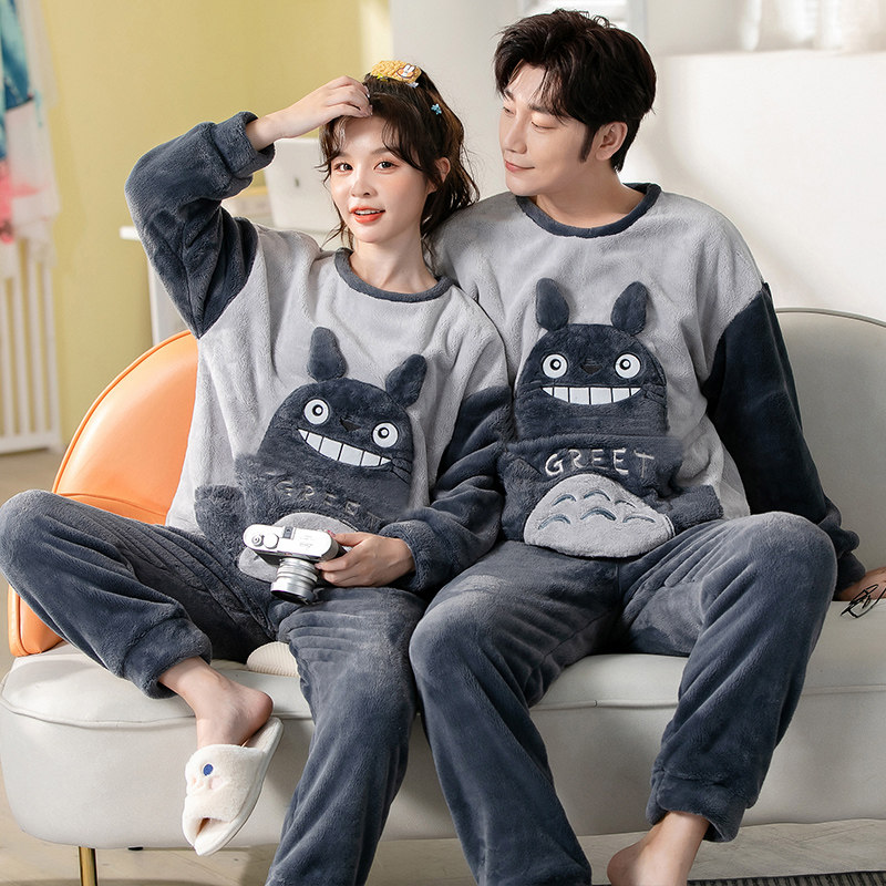 Демисезонная пижама, фланелевое бархатное утепленное термобелье, мультяшный коралловый бархатный комплект, для влюбленных