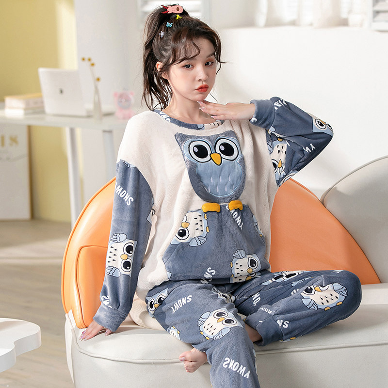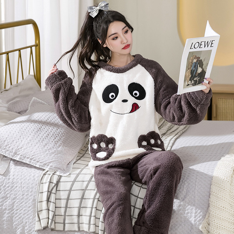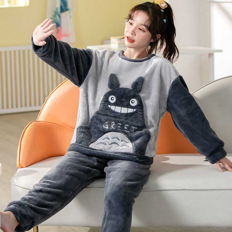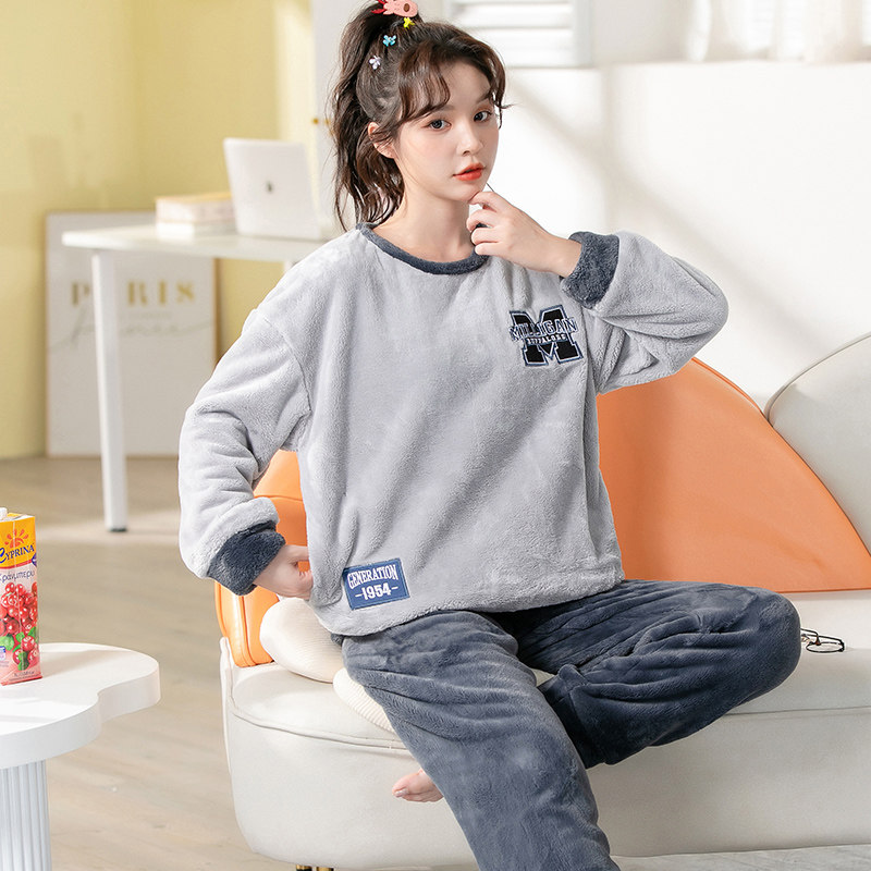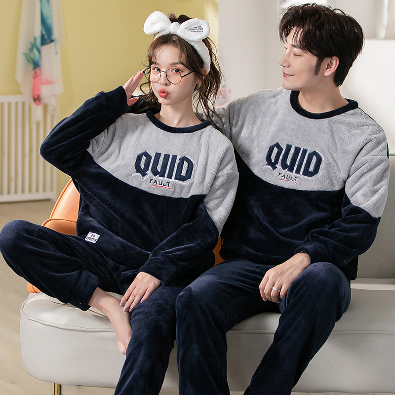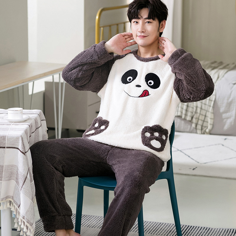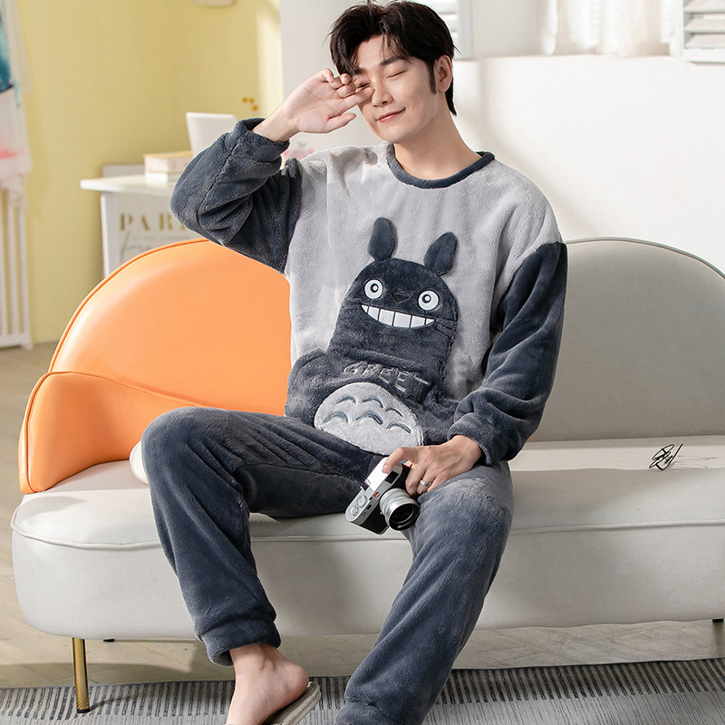 Демисезонная пижама, фланелевое бархатное утепленное термобелье, мультяшный коралловый бархатный комплект, для влюбленных