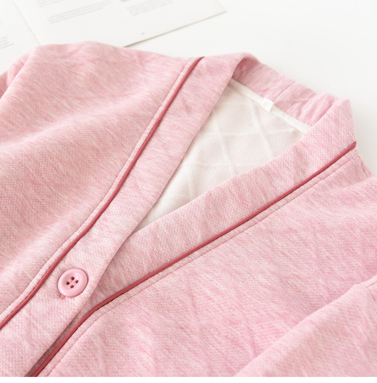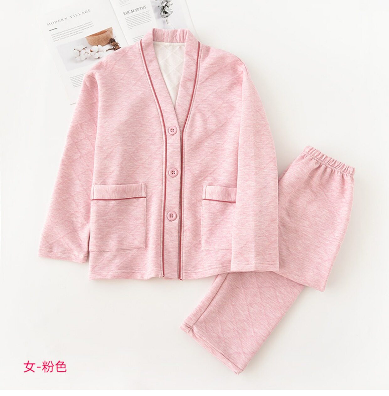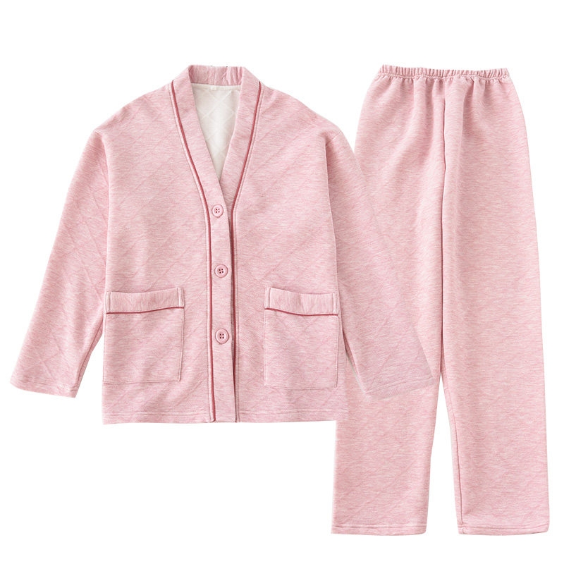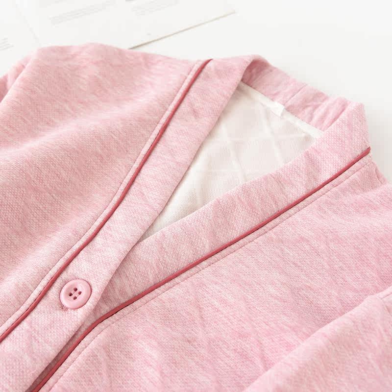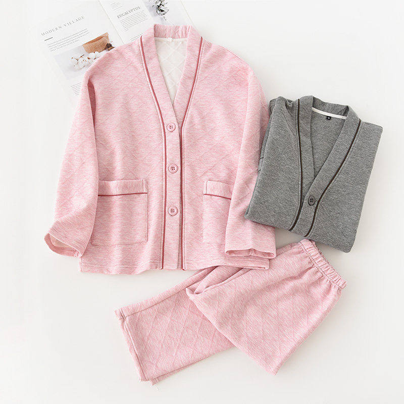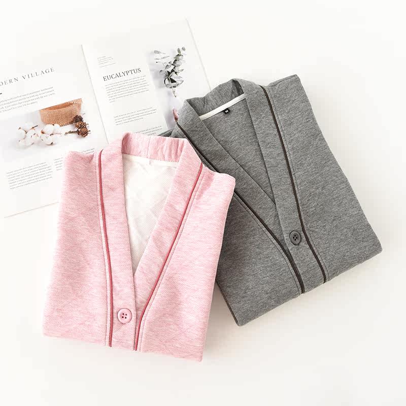 Японская демисезонная пижама, термобелье, хлопковый стеганый лонгслив подходит для мужчин и женщин, комплект, простой и элегантный дизайн, V-образный вырез, для влюбленных