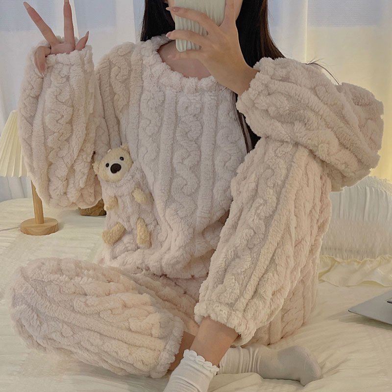 Коралловая бархатная зимняя флисовая удерживающая тепло милая пижама, демисезонный бархатный комплект для школьников и студентов, увеличенная толщина