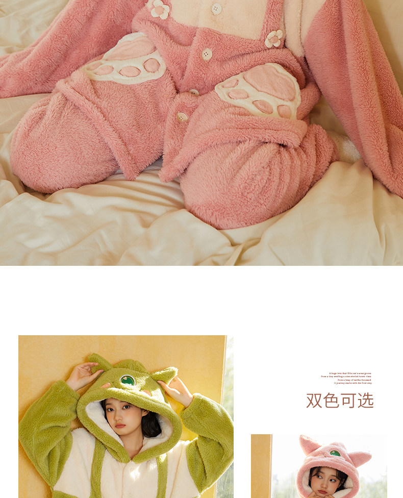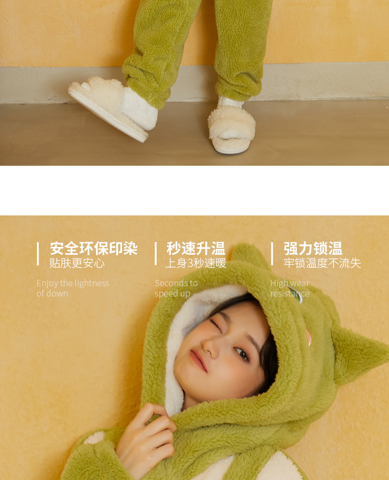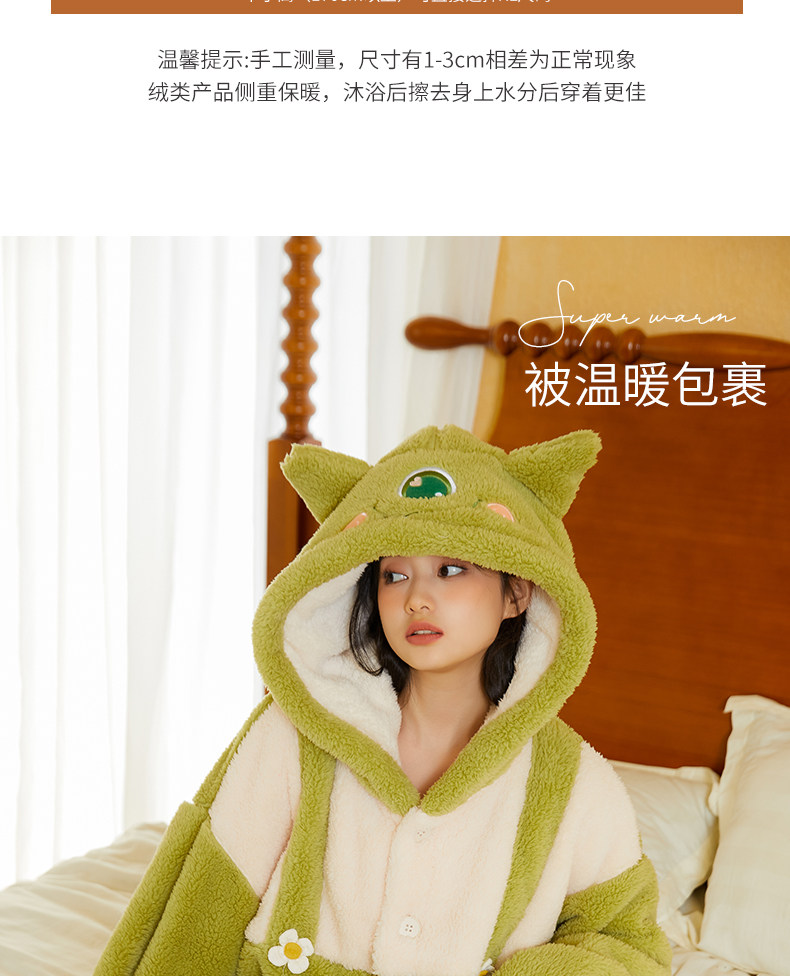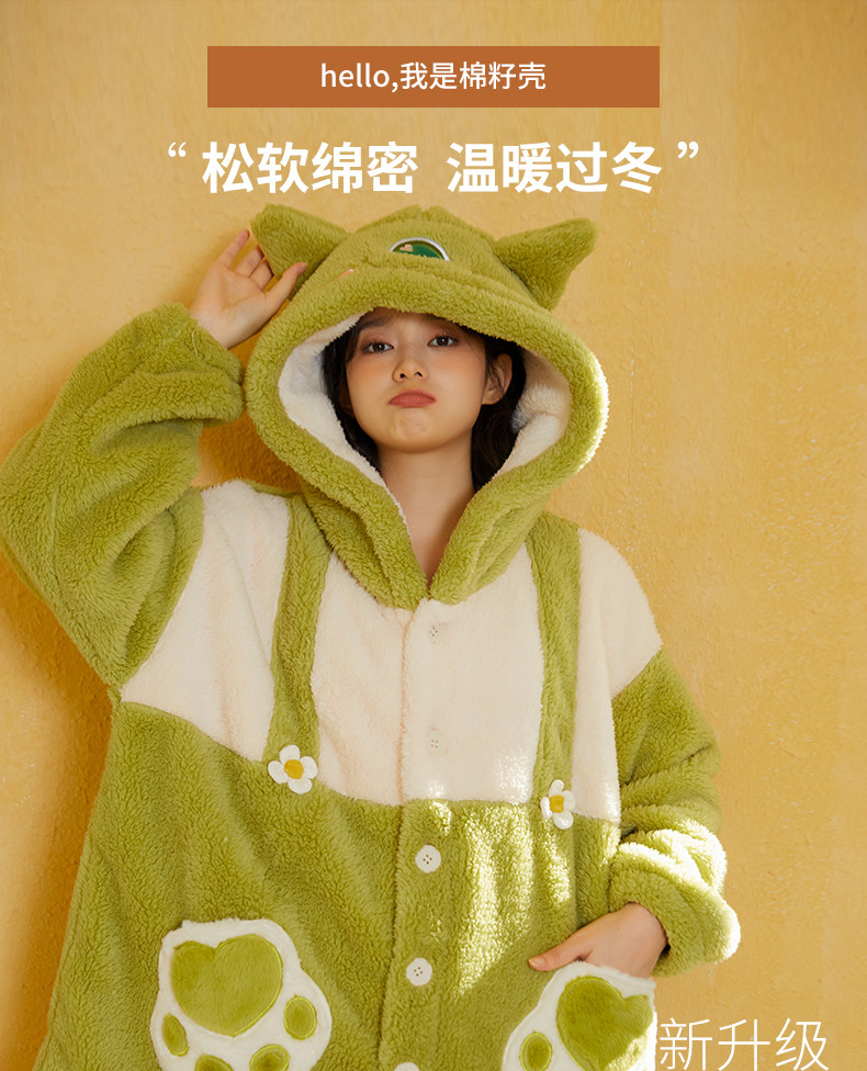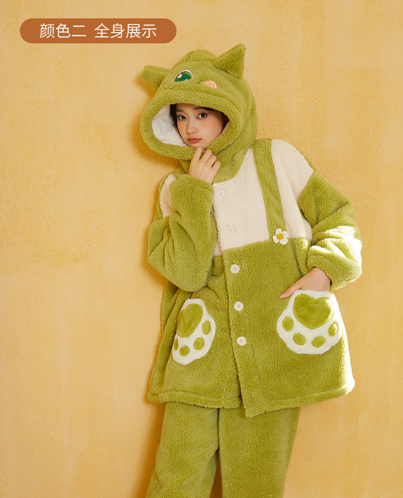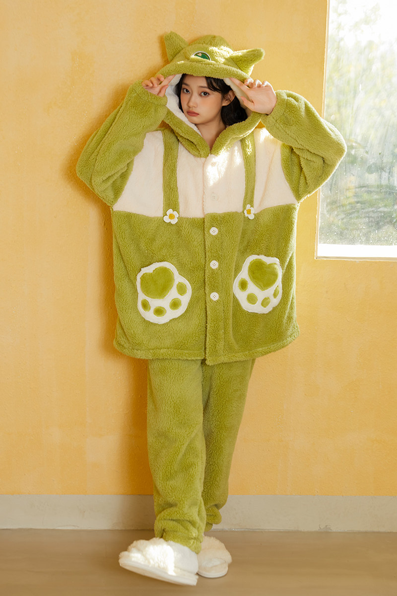 Утепленный удерживающий тепло милый коралловый монстр, бархатная пижама, зеленый мультяшный лонгслив, плюшевый комплект