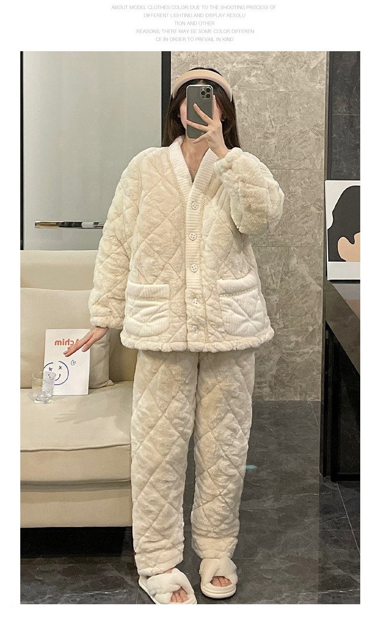 Коралловая бархатная стеганая зимняя пижама, фланелевый осенний цветной кардиган, комплект, домашняя одежда, женский стиль, увеличенная толщина, осенняя