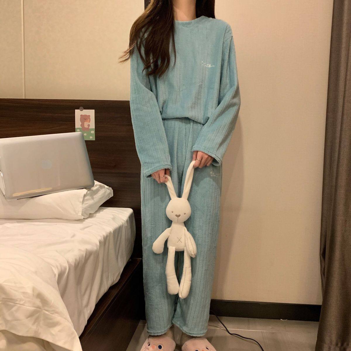Утепленная демисезонная пижама, удерживающий тепло зимний комплект, лонгслив, оверсайз