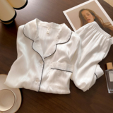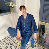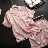 Мужская шелковая пижама, высококлассный летний лонгслив, шелковый комплект, для влюбленных, изысканный стиль, короткий рукав
