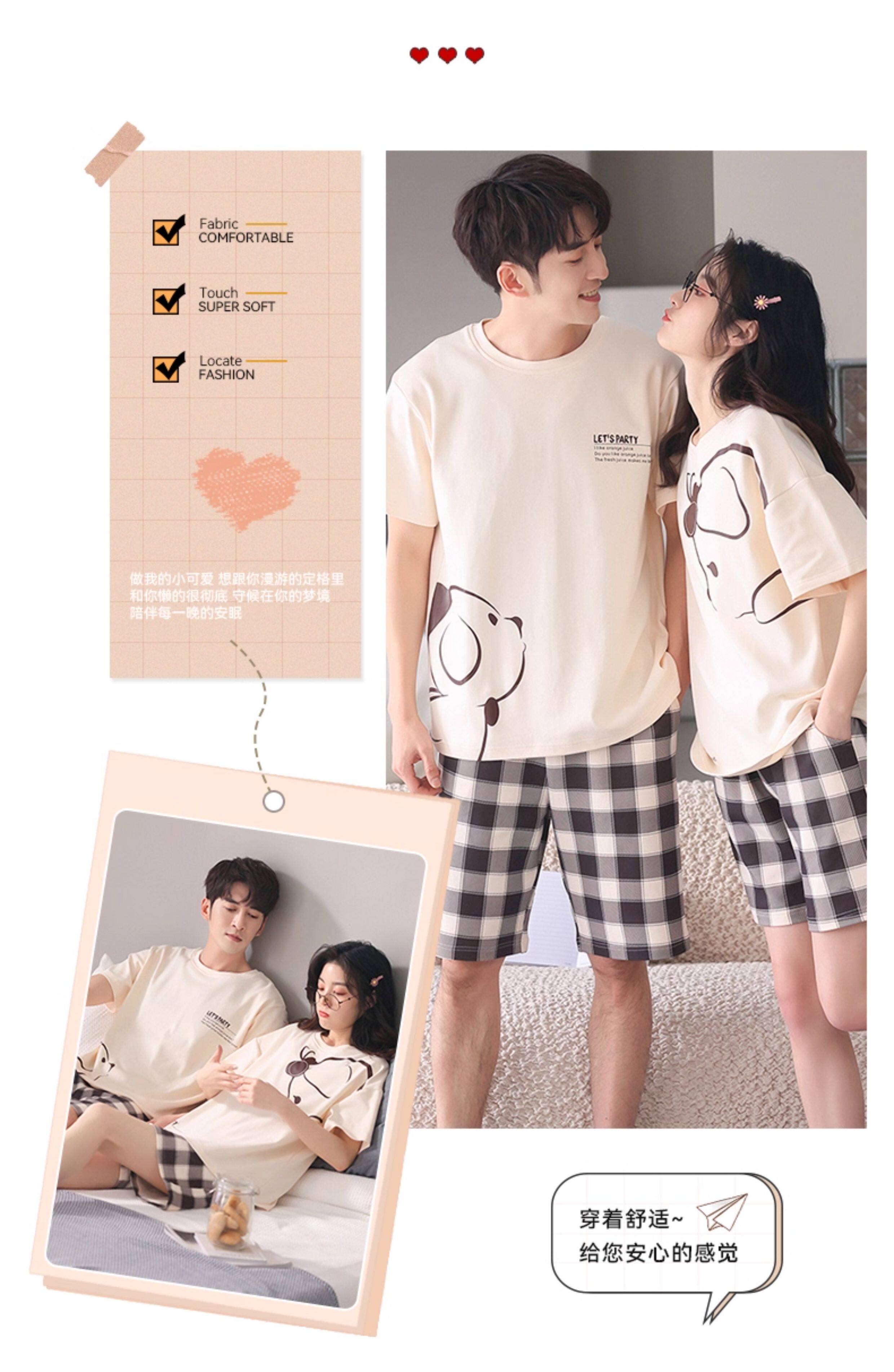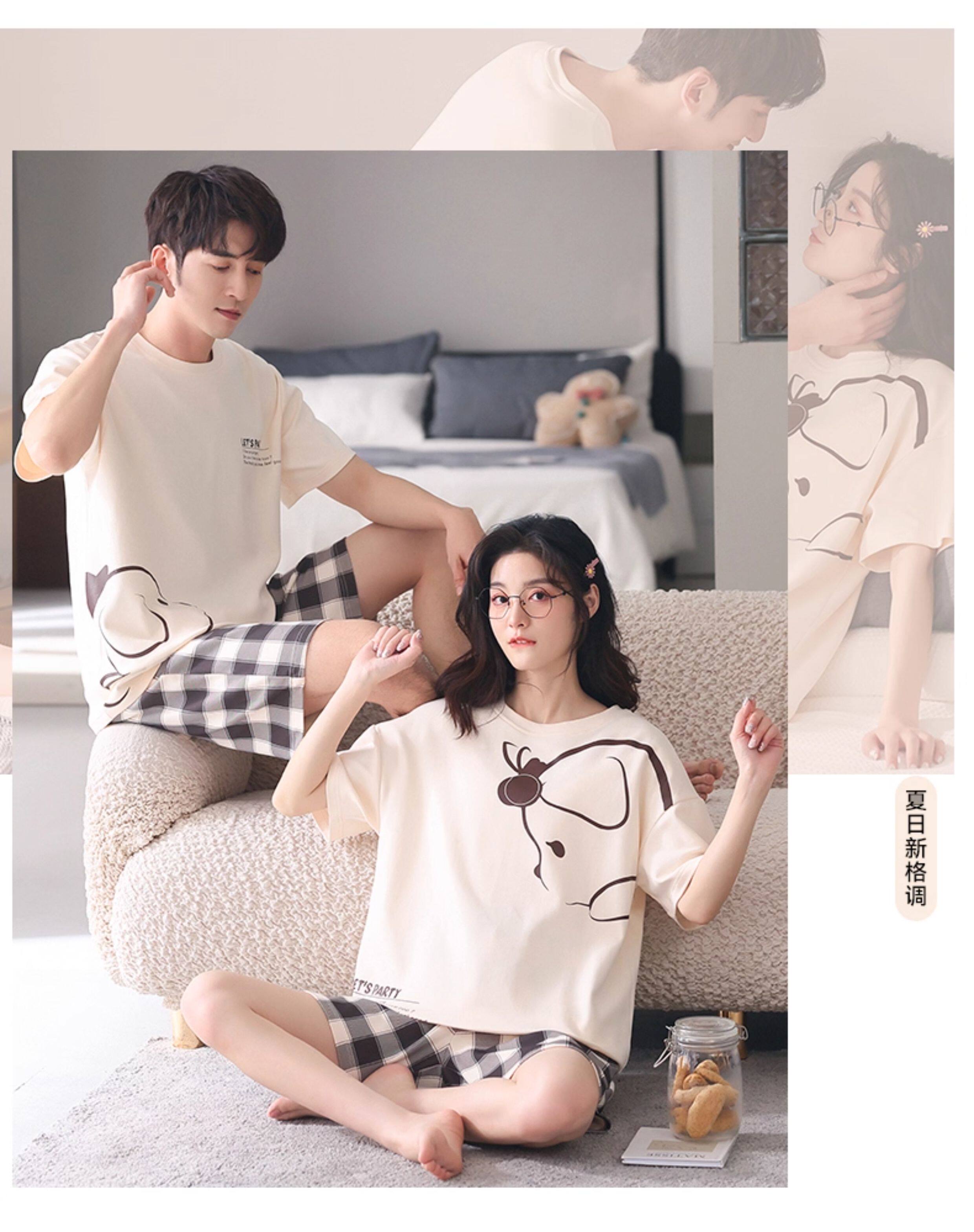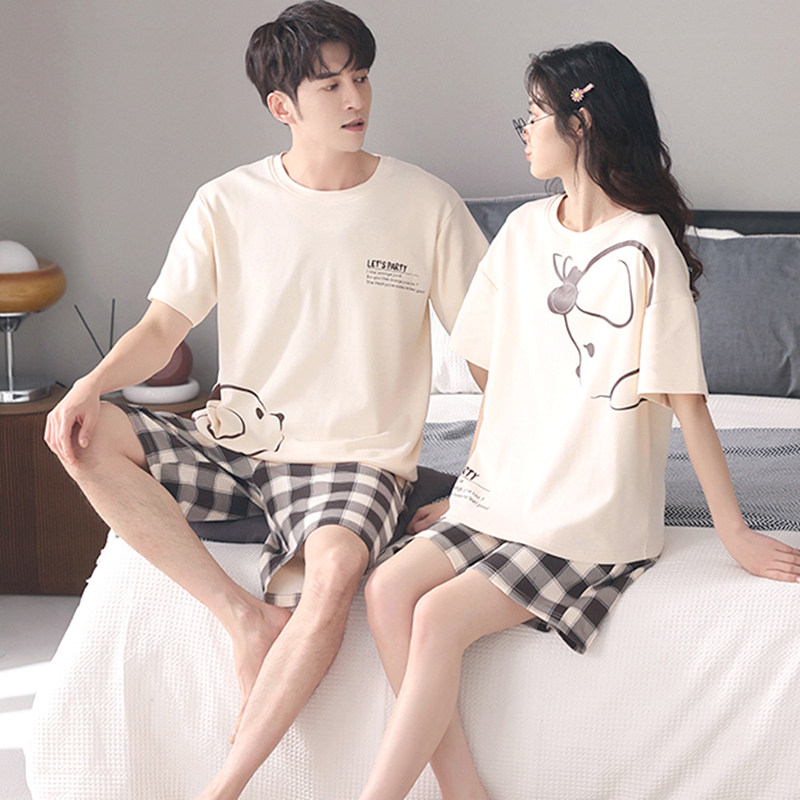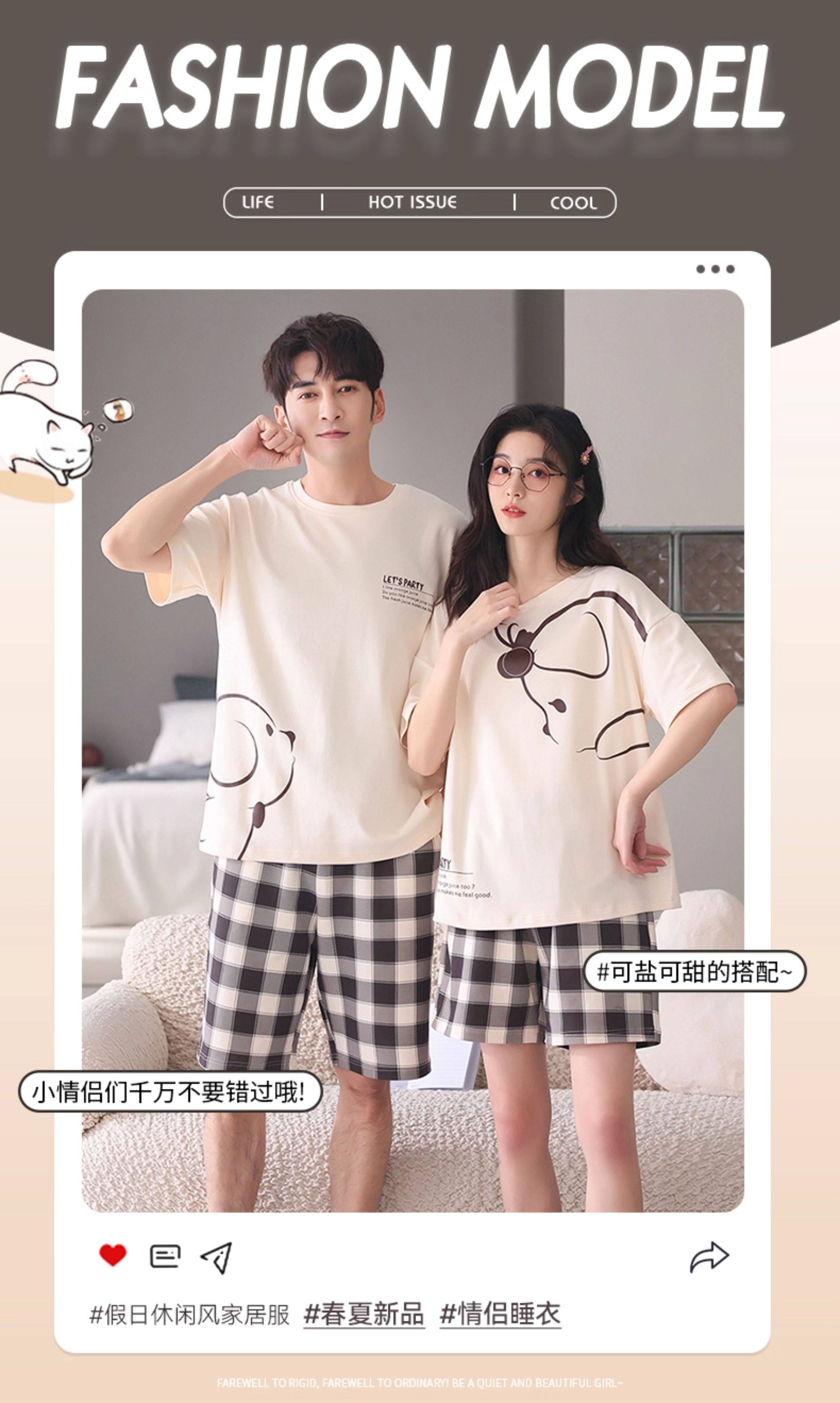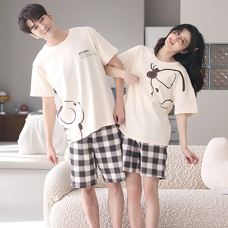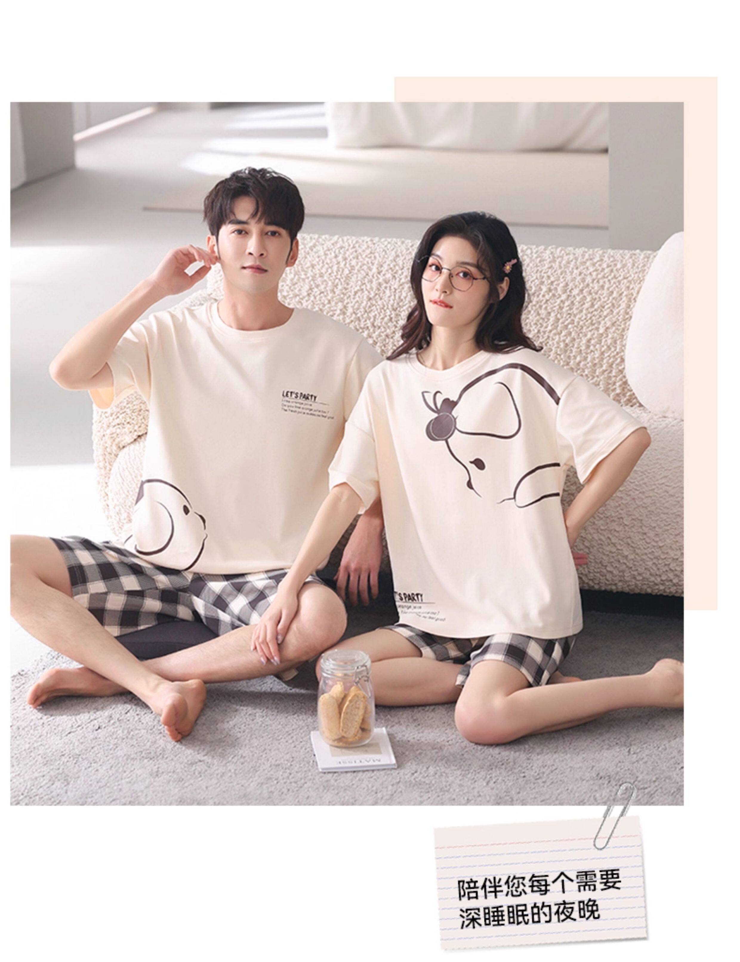 Хлопковая пижама, тонкий комплект, для влюбленных, простой крой, большой размер
