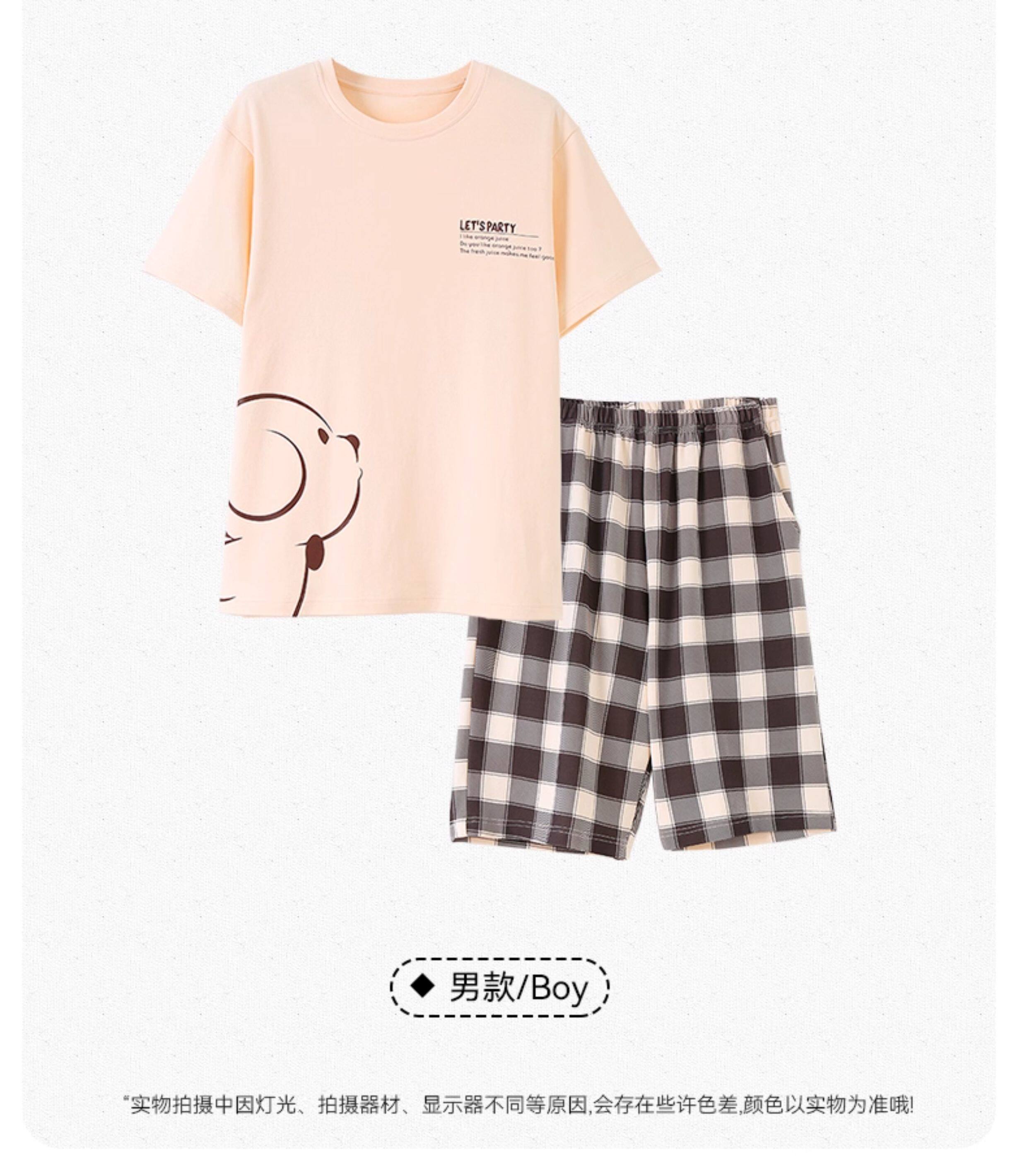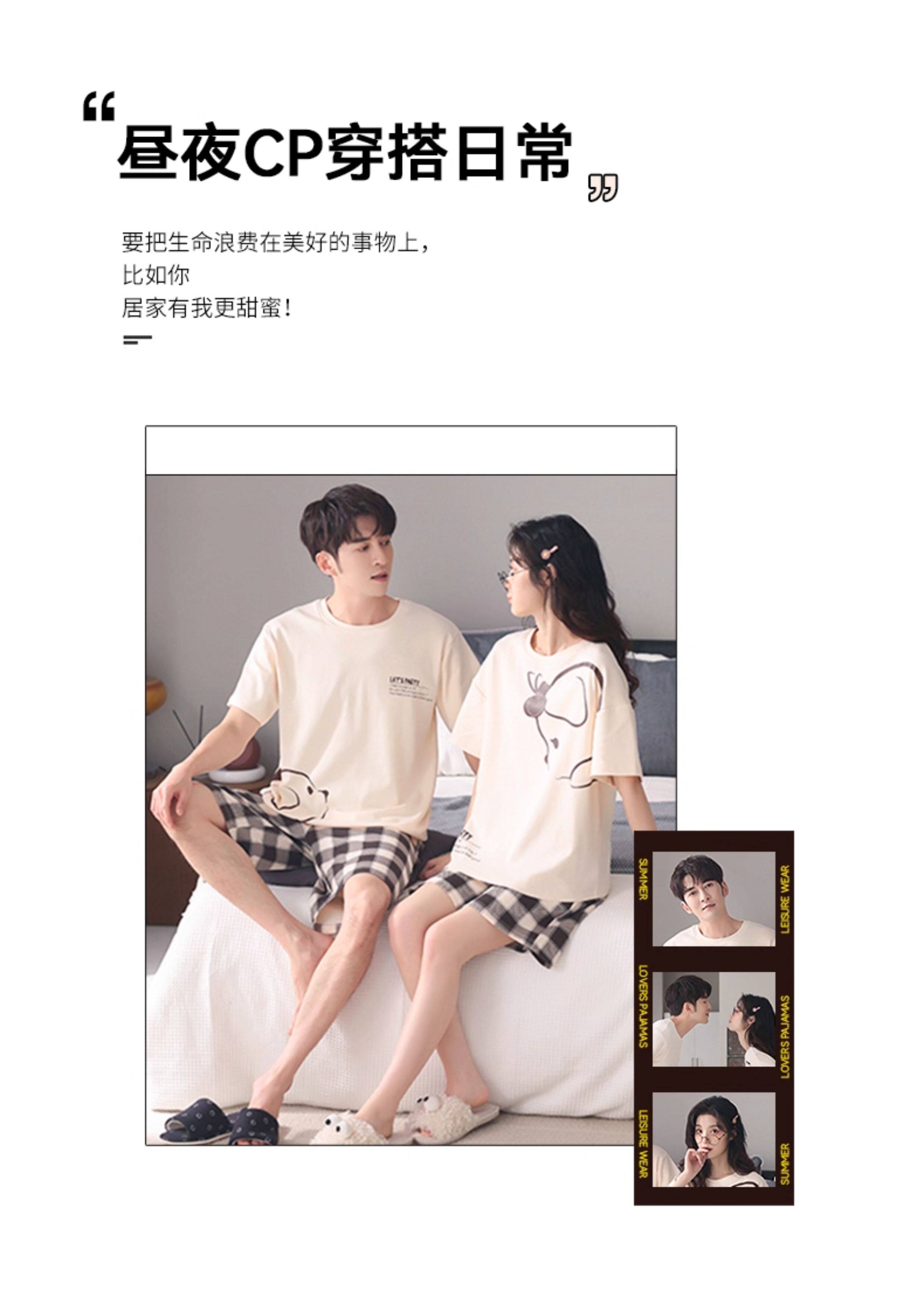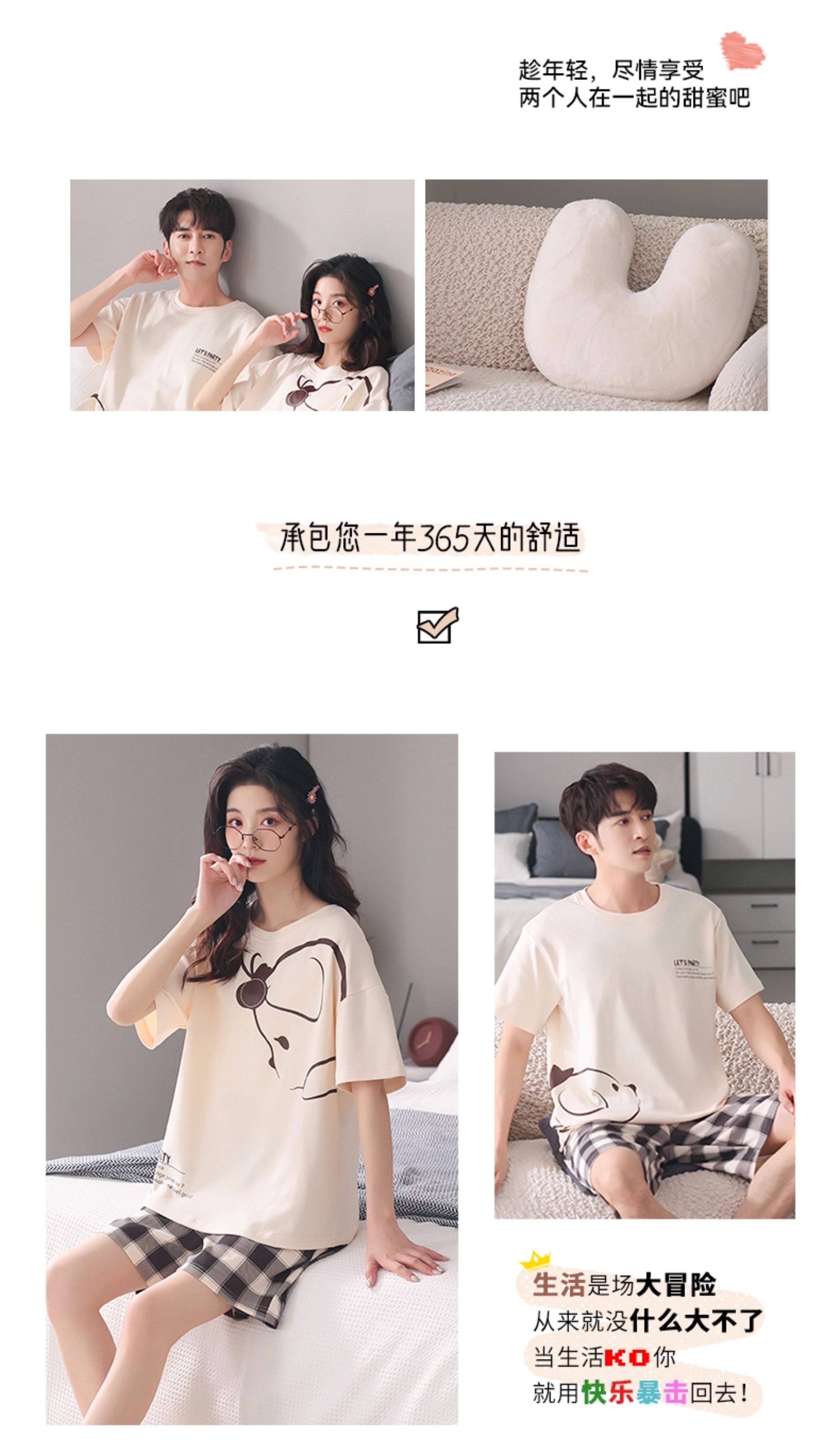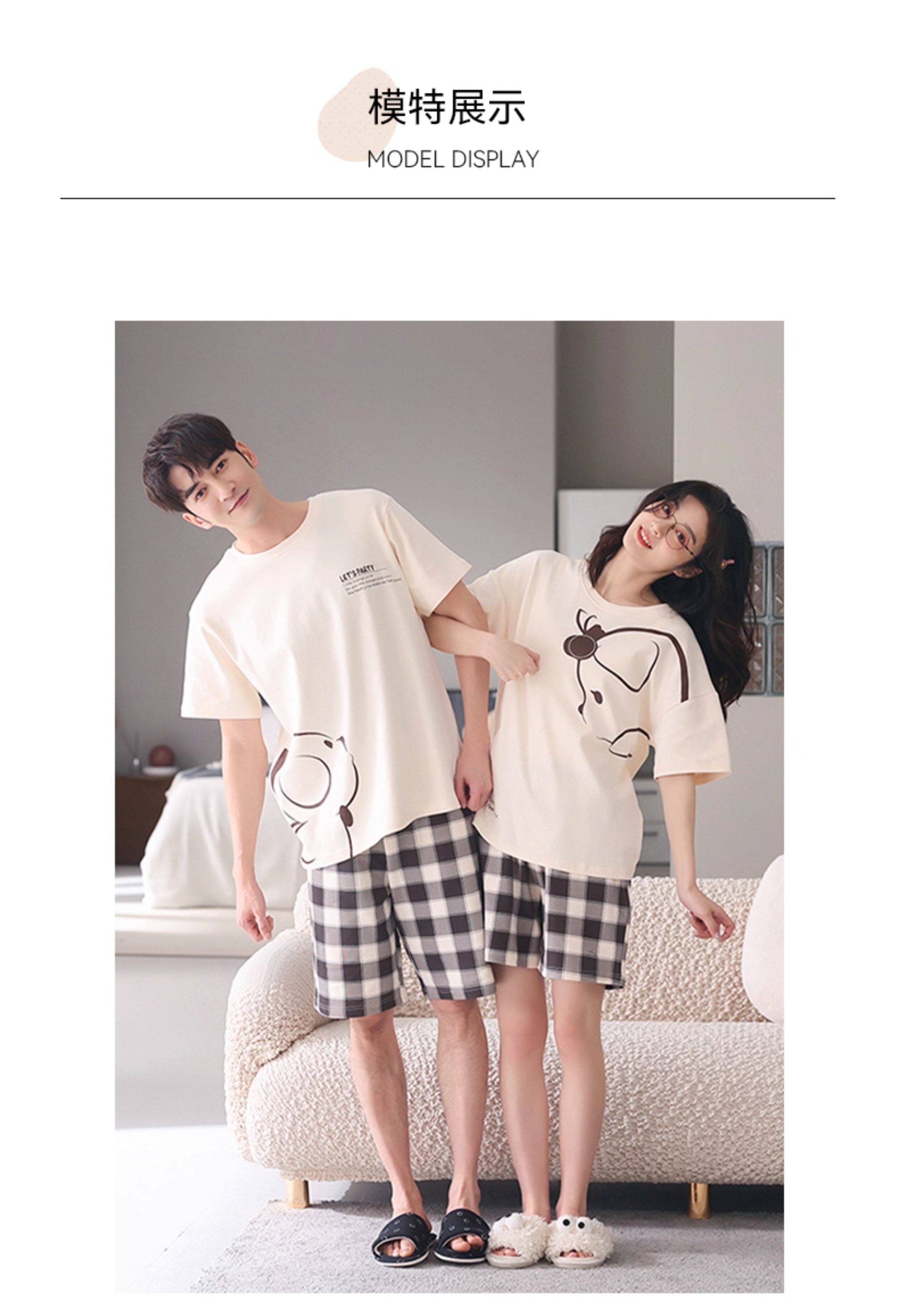 Хлопковая пижама, тонкий комплект, для влюбленных, простой крой, большой размер