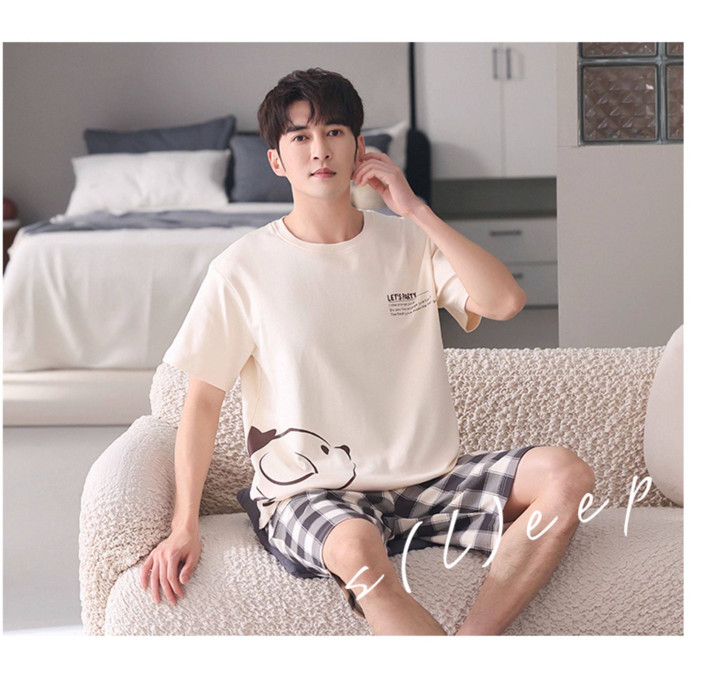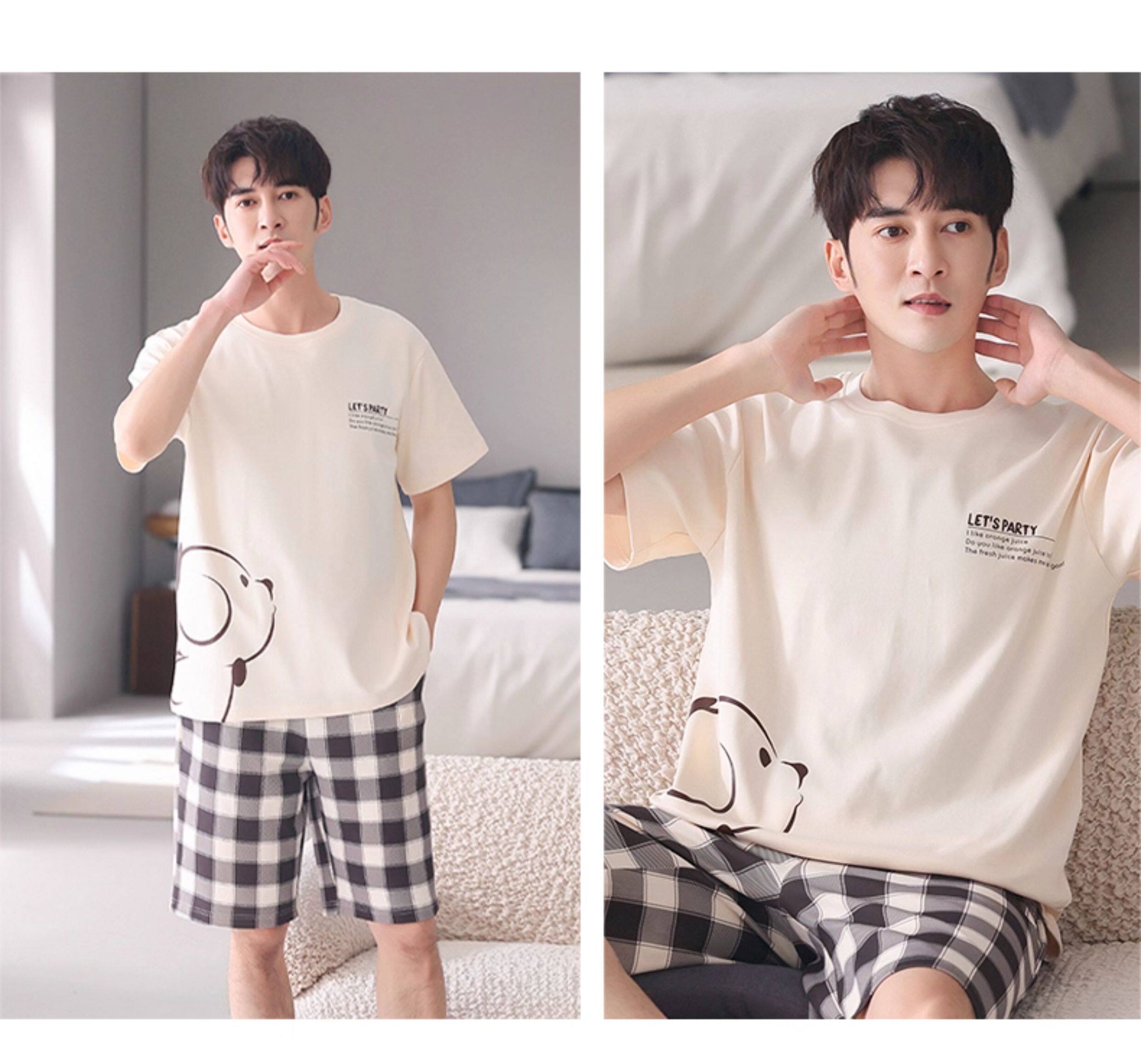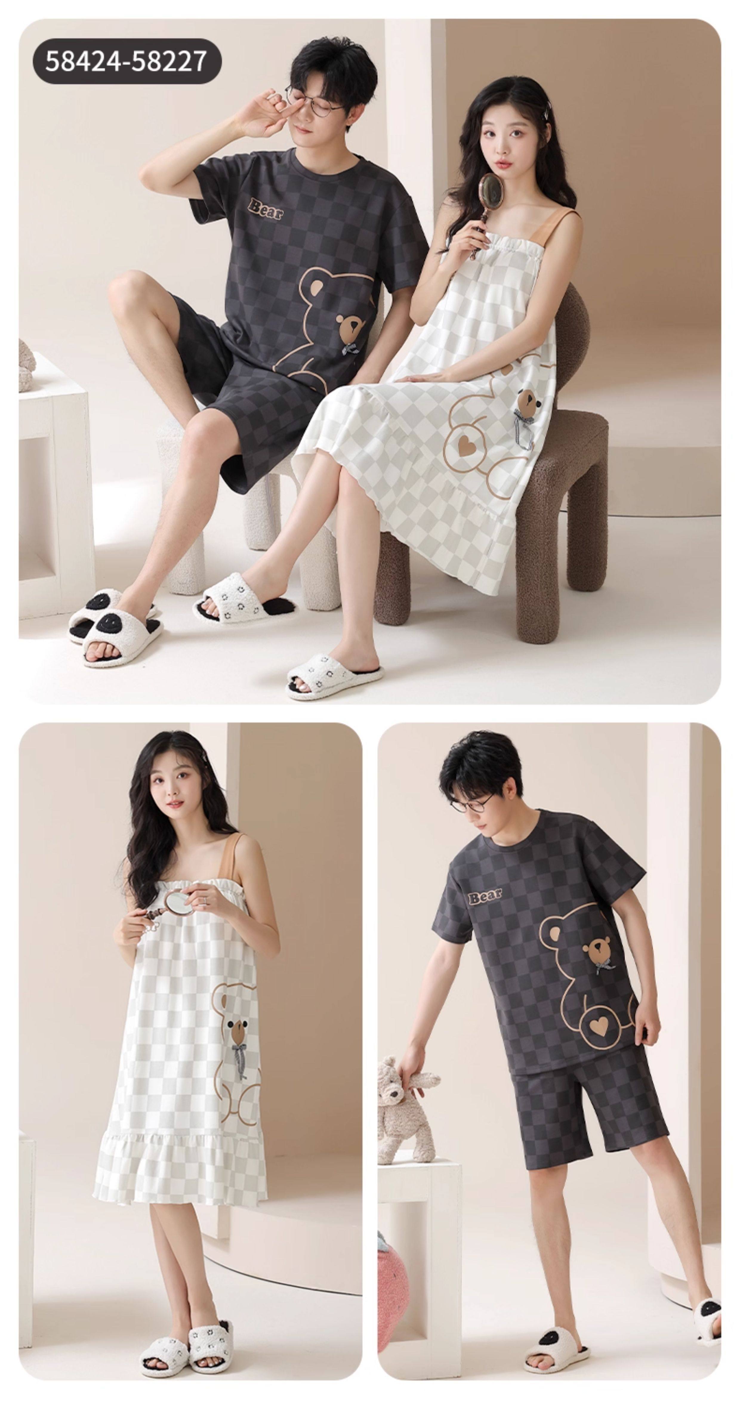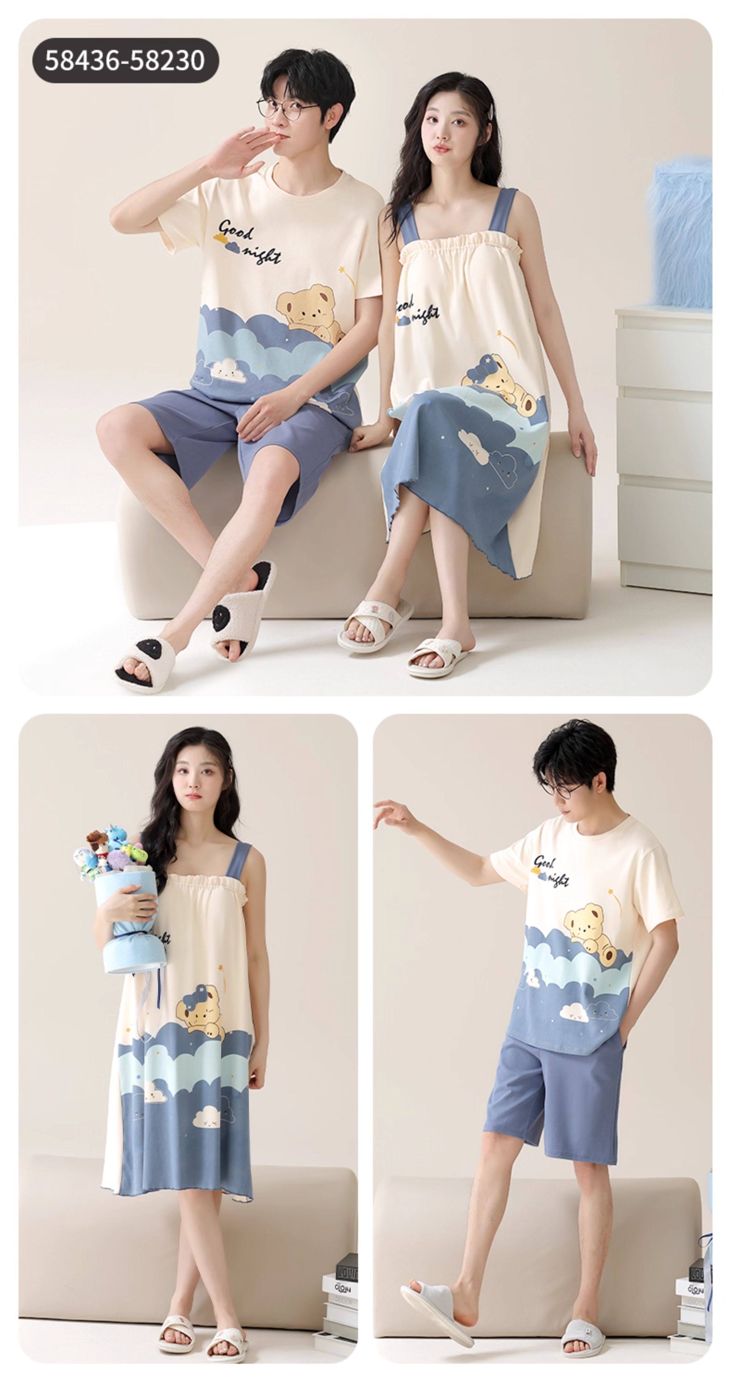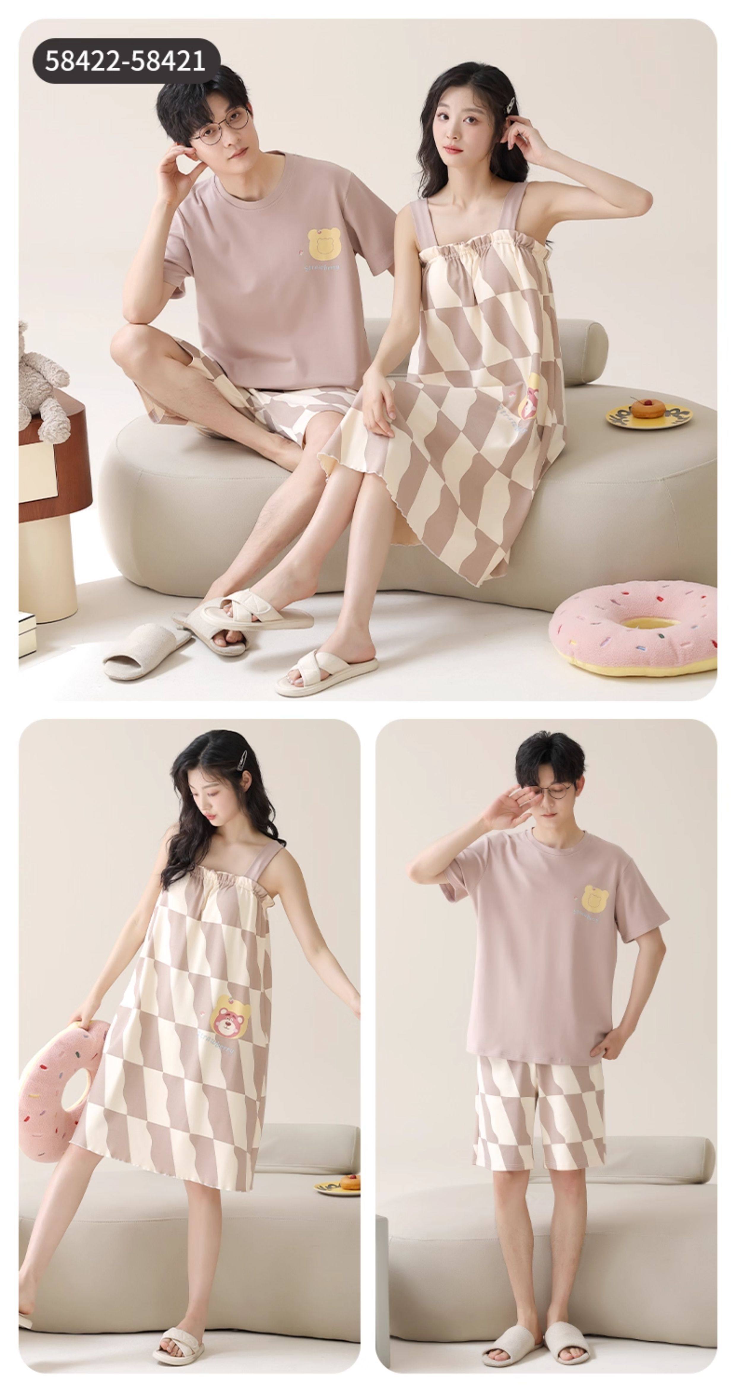 Хлопковая пижама, тонкий комплект, для влюбленных, простой крой, большой размер