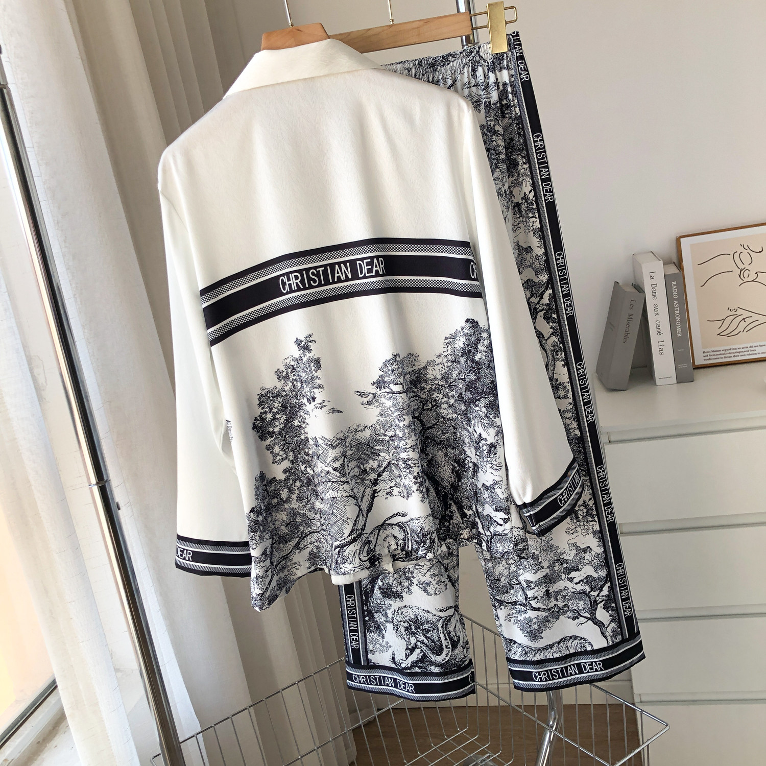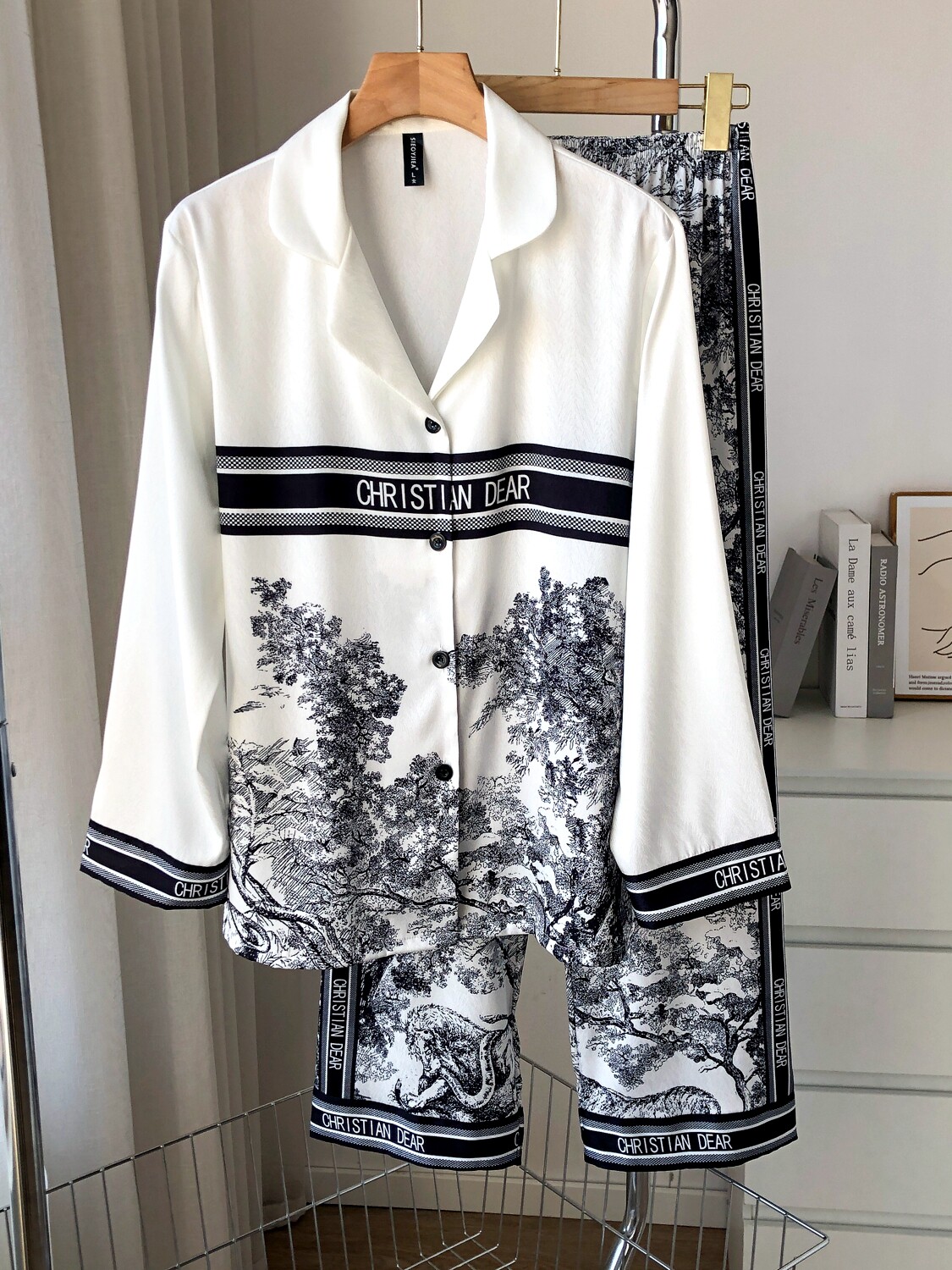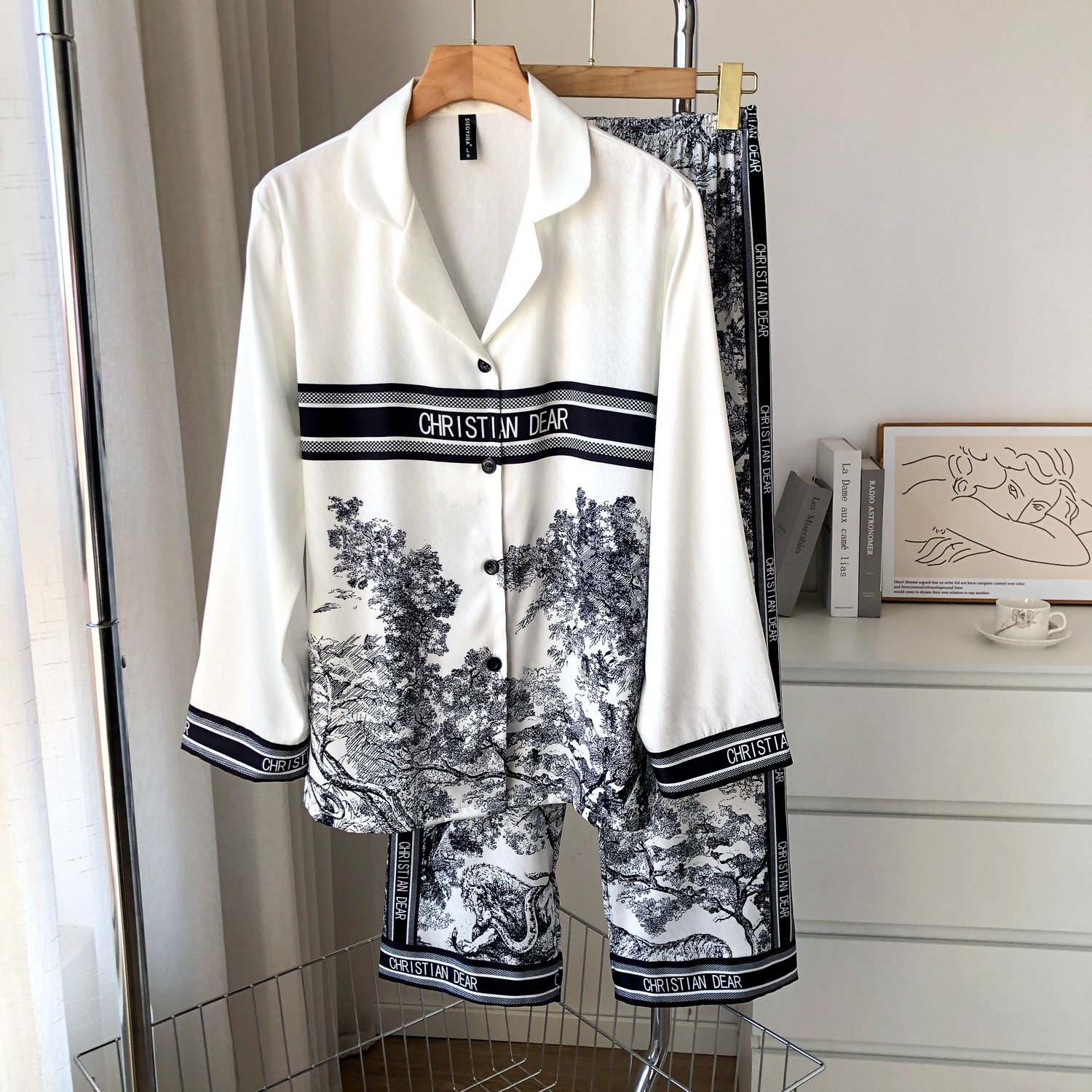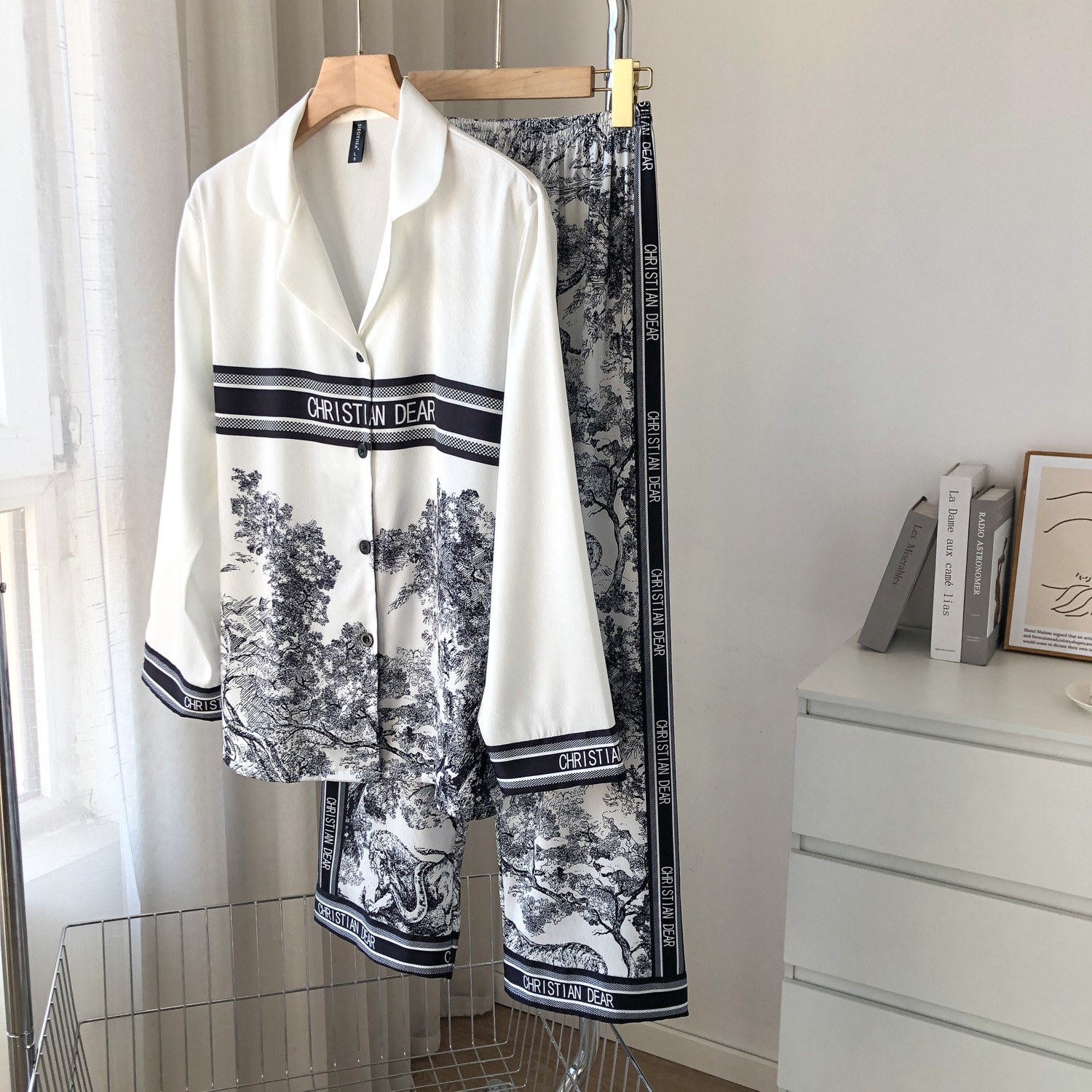 Летняя пижама для влюбленных, шелковое качественное звездное небо, лонгслив, штаны, комплект, популярно в интернете