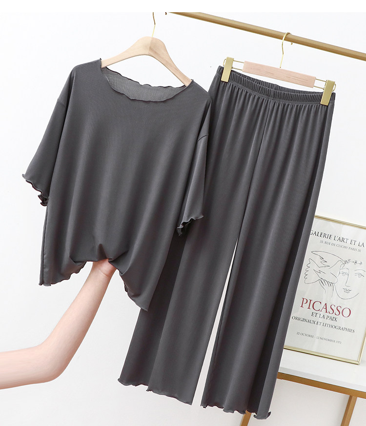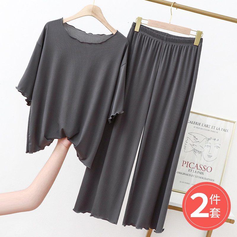 Летняя шелковая пижама, тонкая футболка, комплект, размер, свободный крой, короткий рукав