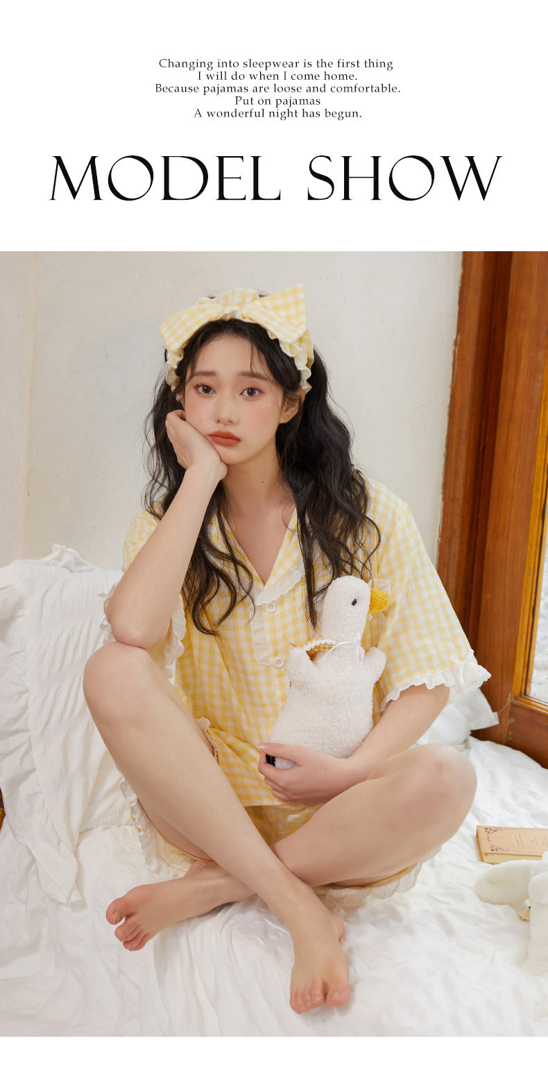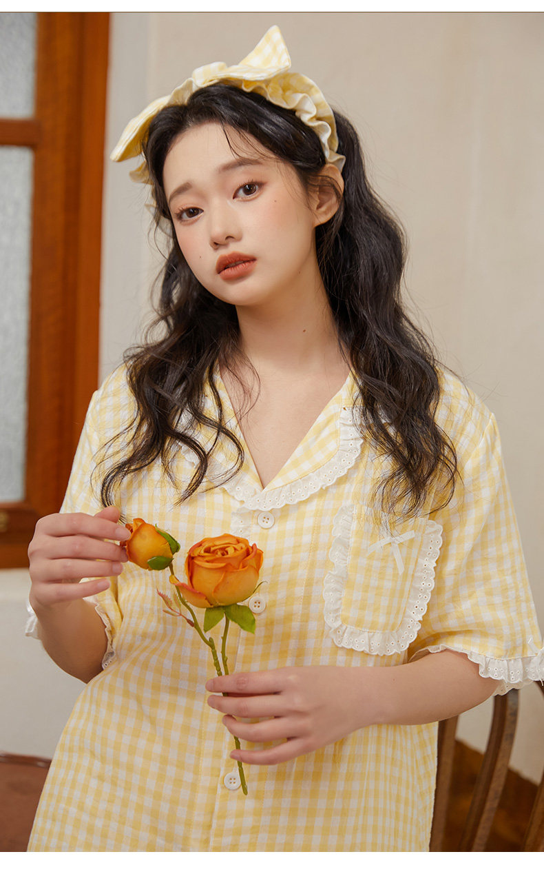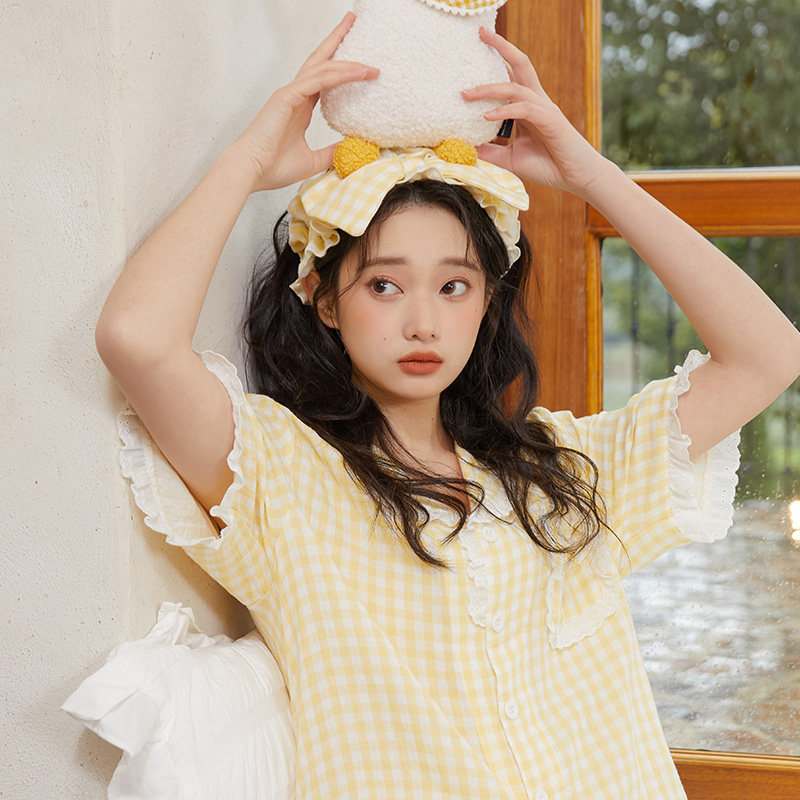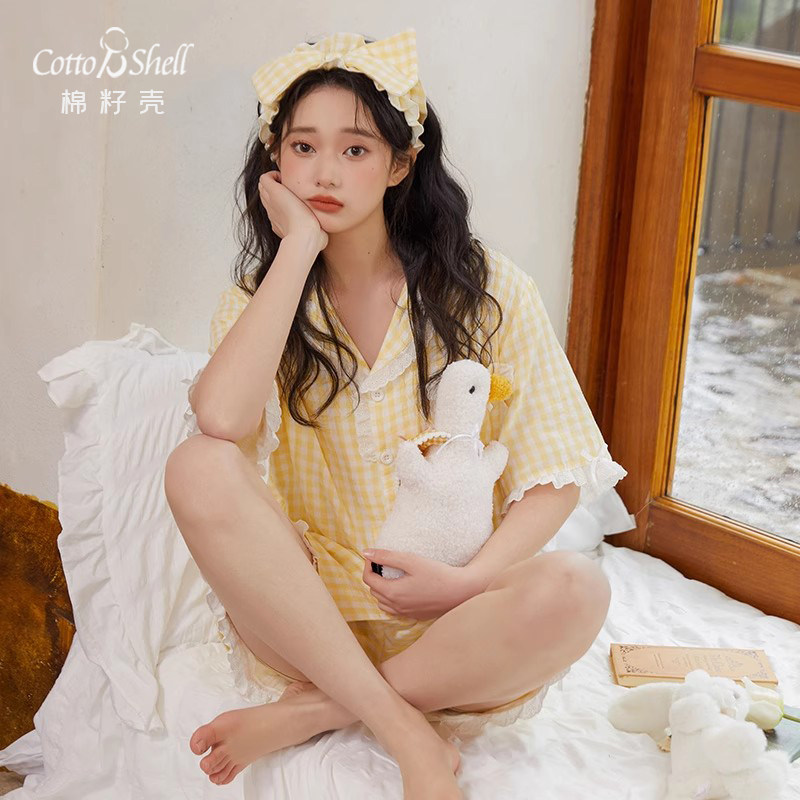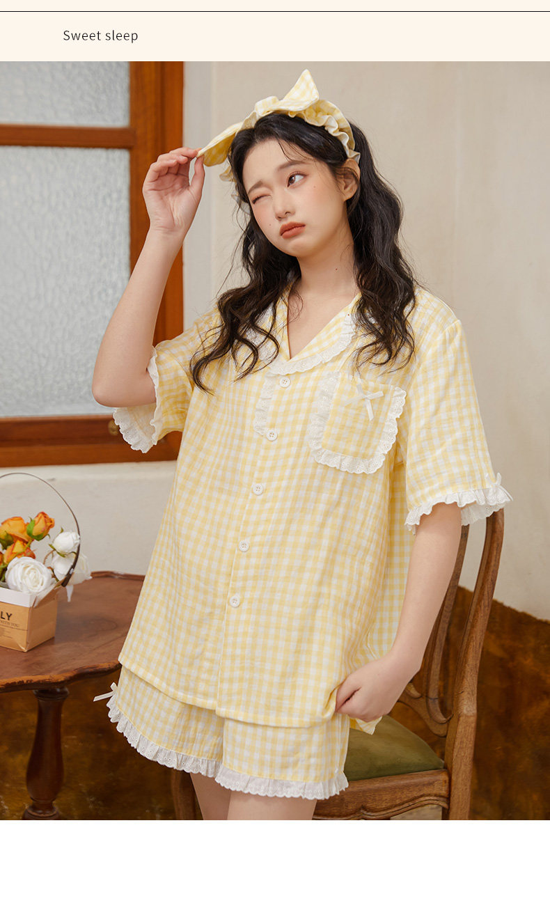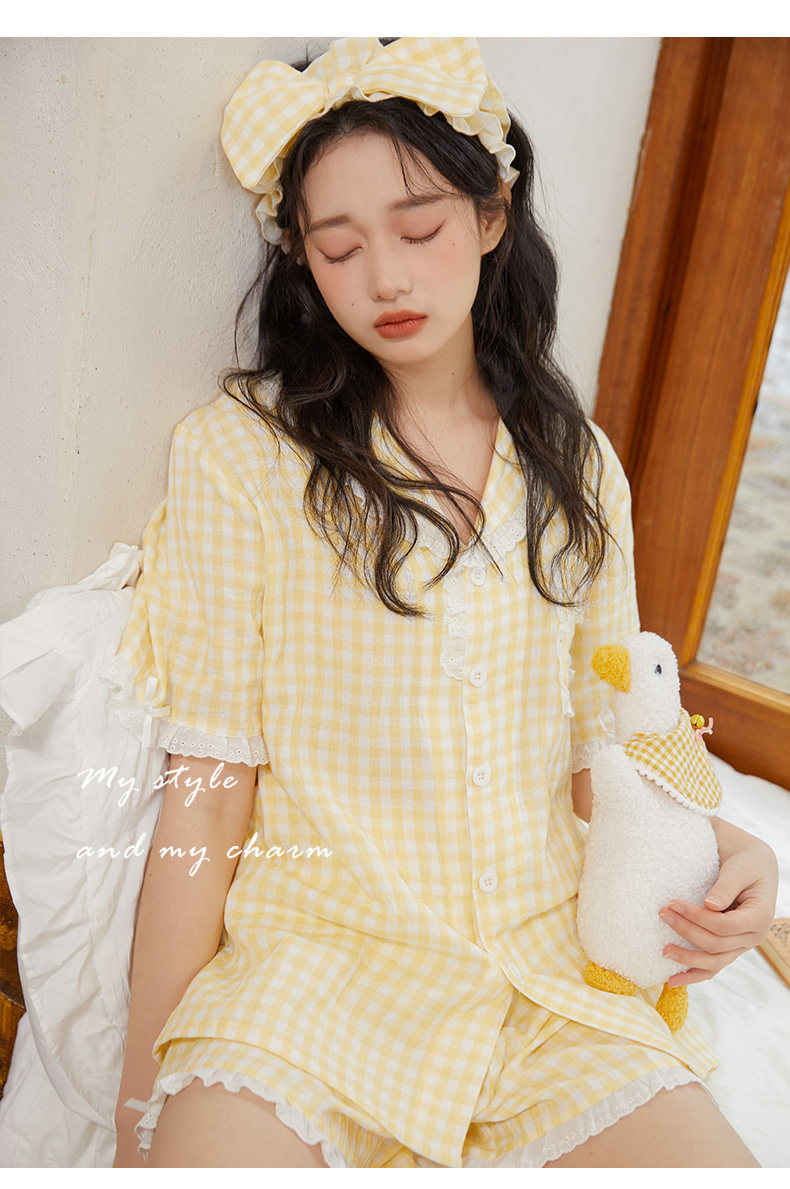 Хлопковая летняя пижама, хлопковый желтый комплект, короткий рукав