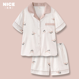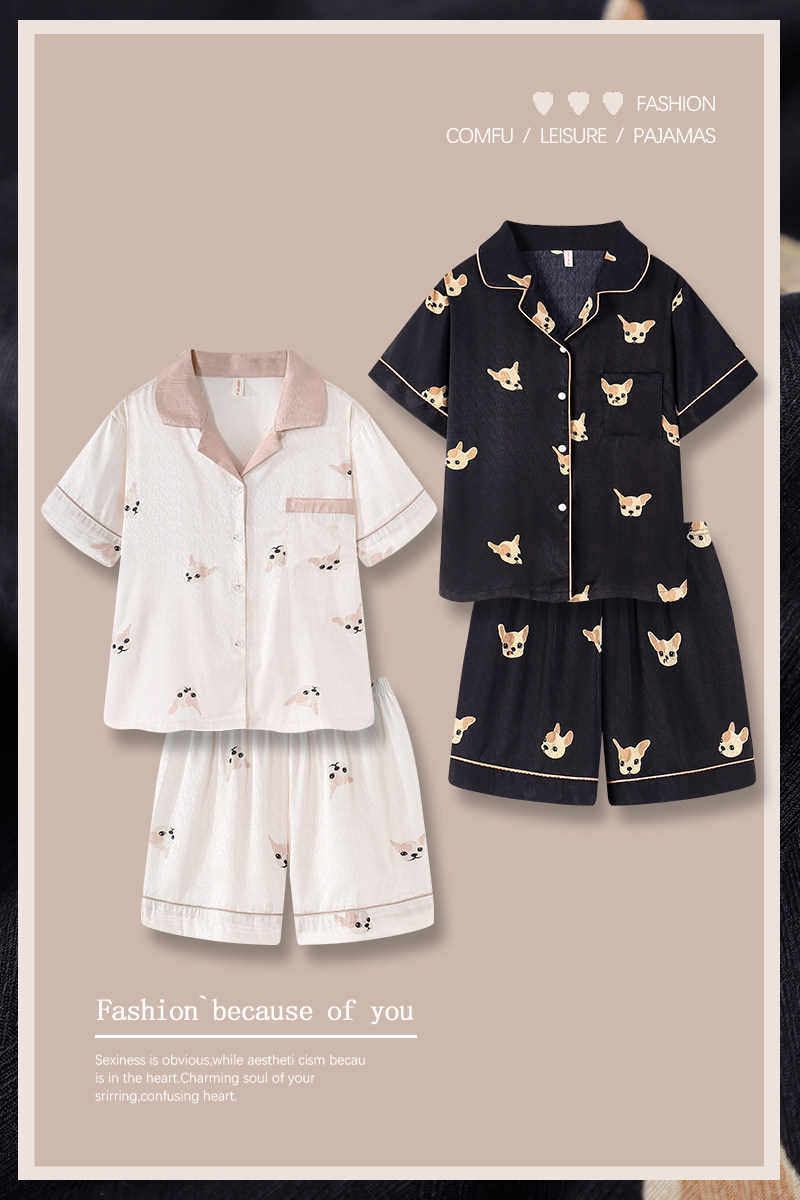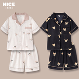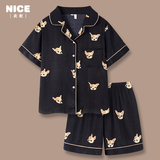 Шелковая летняя тонкая пижама для влюбленных подходит для мужчин и женщин, милый комплект, короткий рукав, популярно в интернете