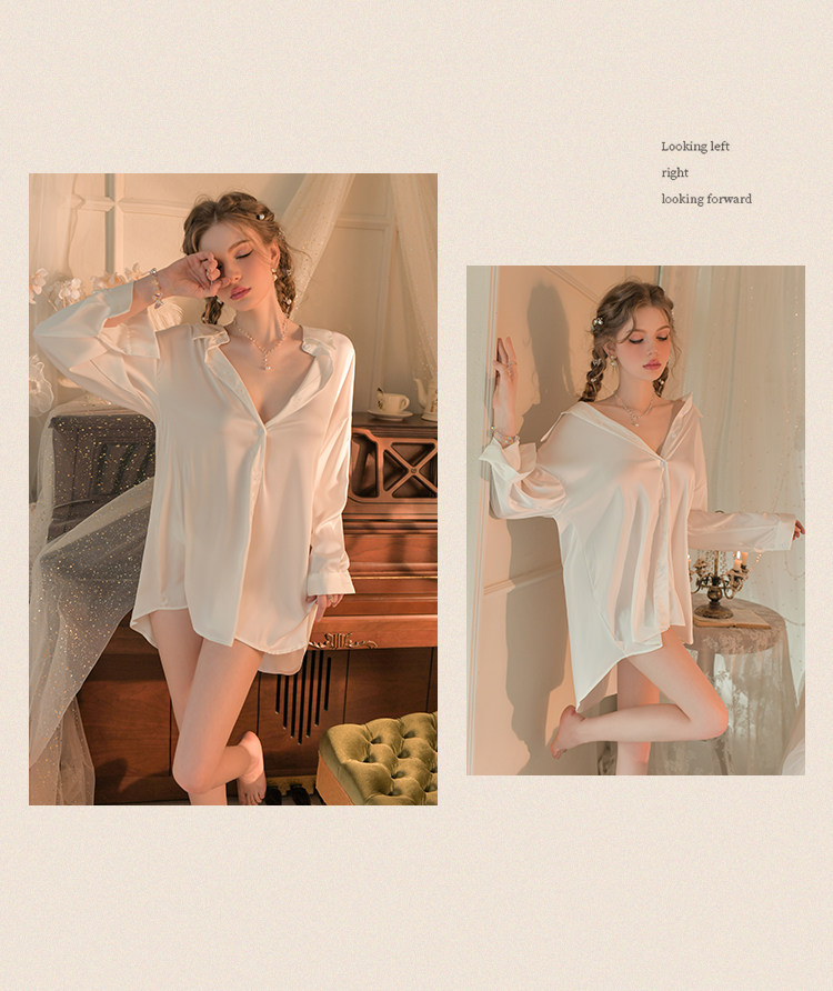 澄澈 Сексуальная осенняя пижама, шелковая белая летняя рубашка, комплект, «Холодное сердце»