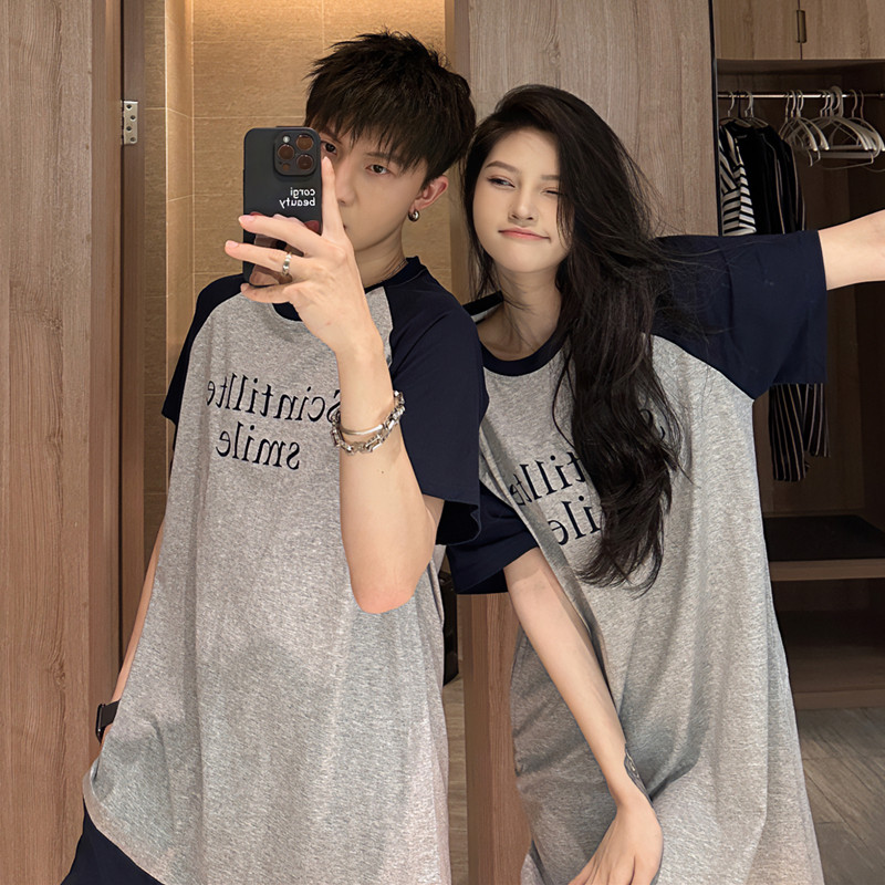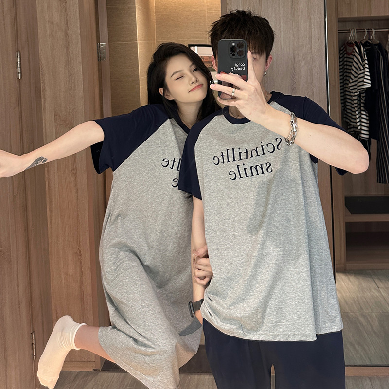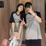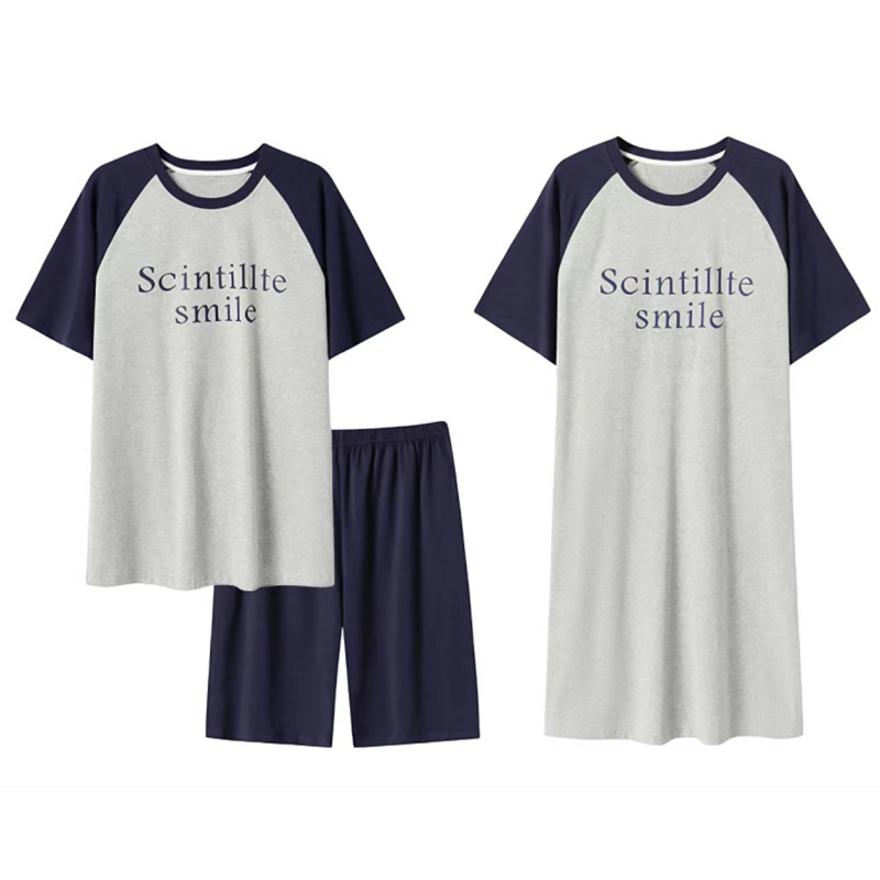 Пижама с буквами, хлопковая летняя мужская юбка, тонкий комплект, простой и элегантный дизайн, для влюбленных, в корейском стиле