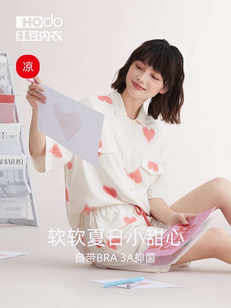 Хлопковая пижама, топ с чашечками, тонкие шорты, антибактериальный комплект, эффект подтяжки