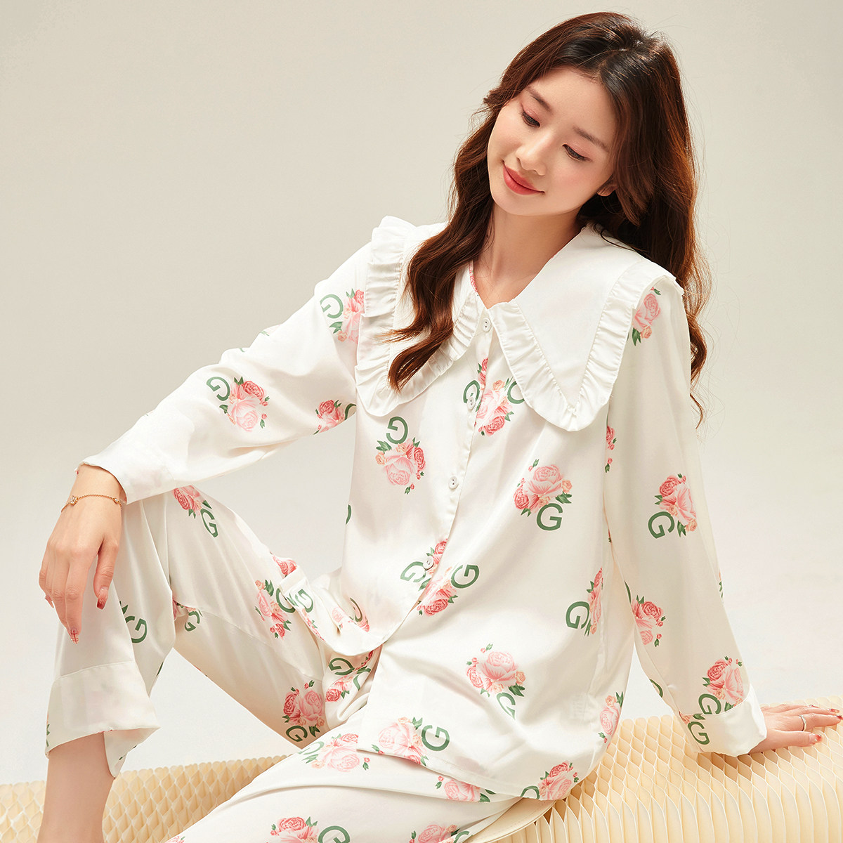 Шелковая пижама, лонгслив, летние штаны