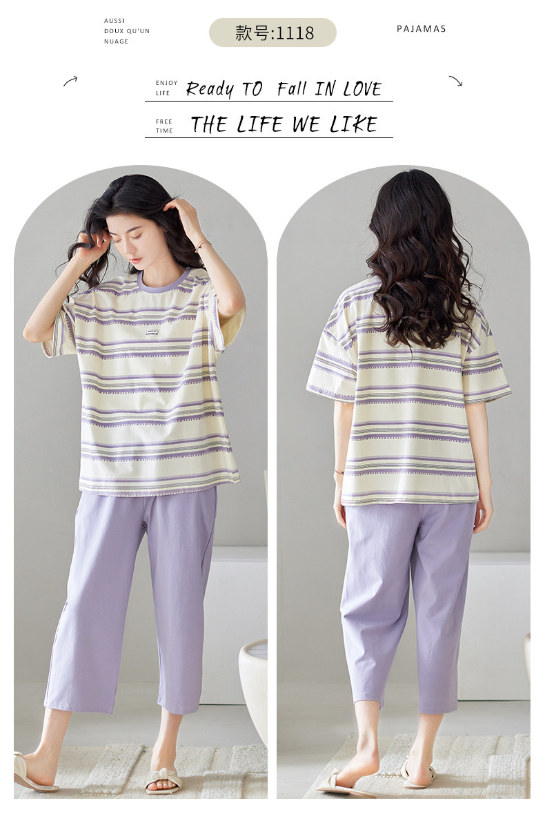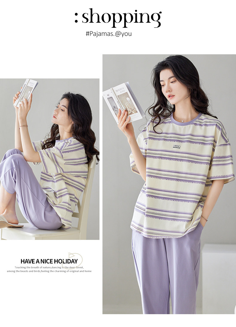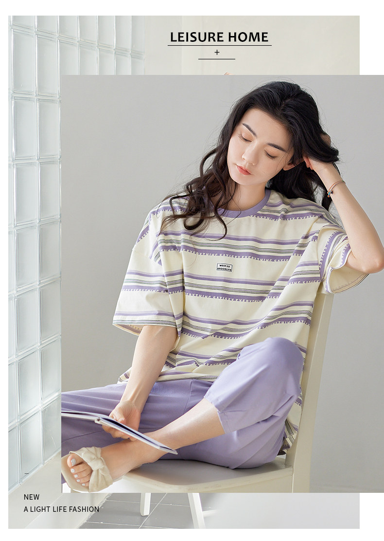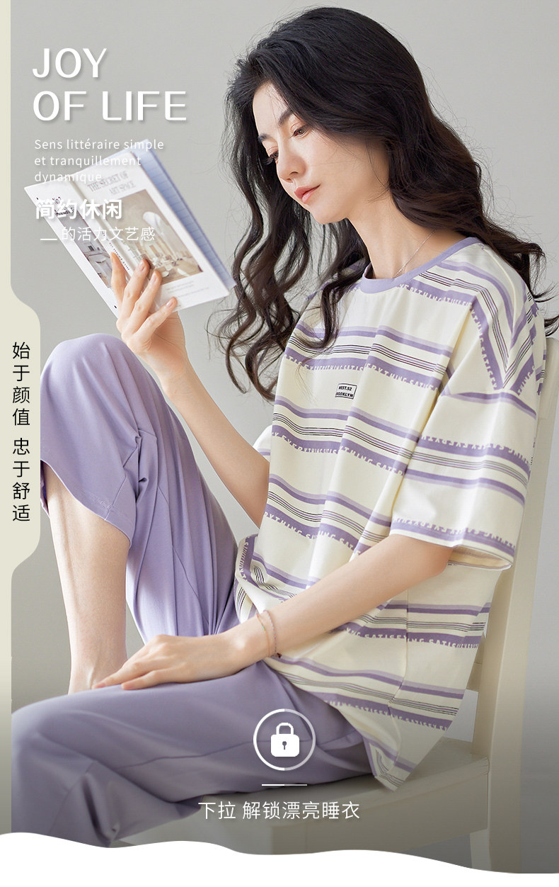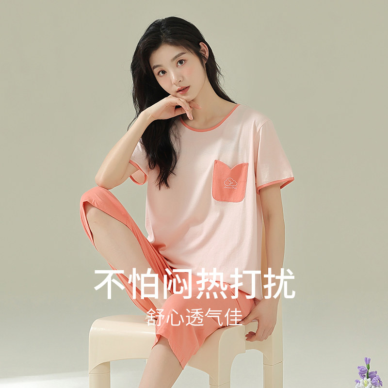 秋鹿 Хлопковые тонкие штаны с круглым воротником, летняя мультяшная комфортная пижама, свободный крой